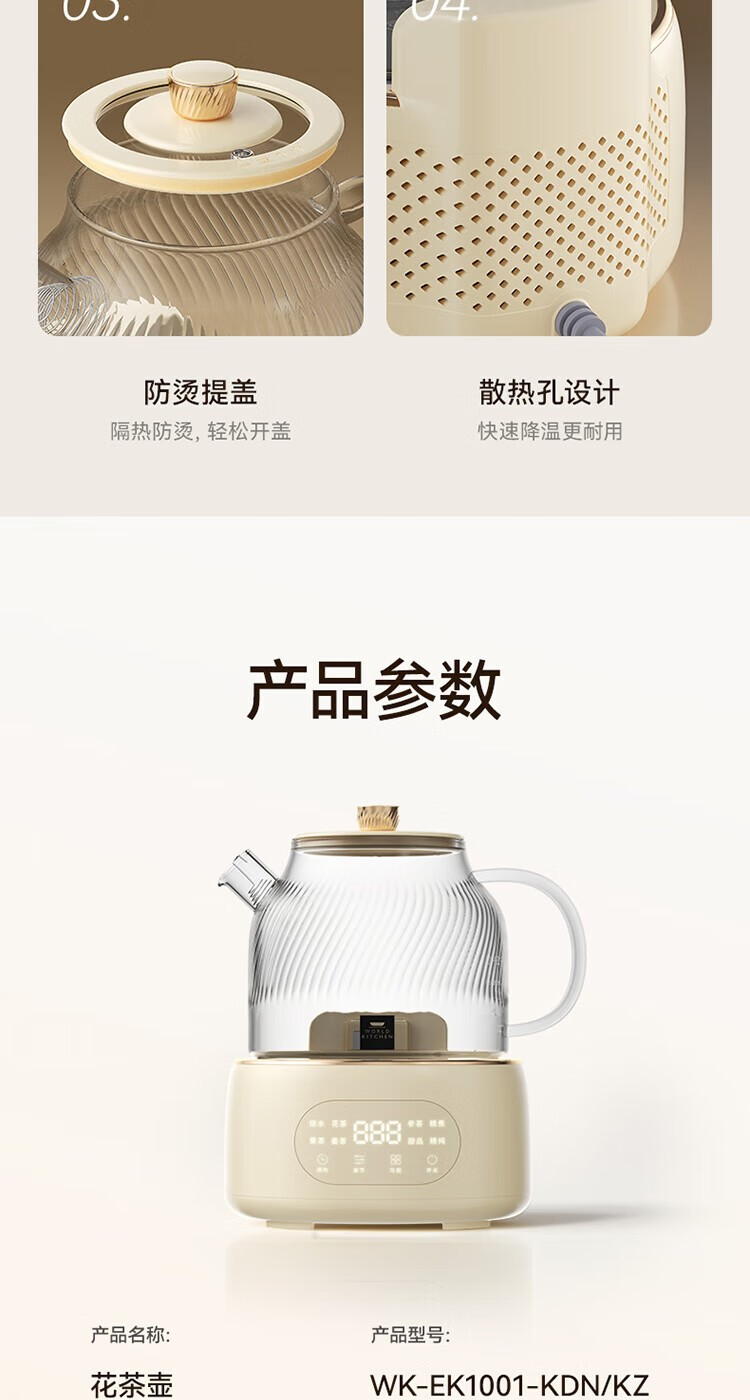 商品名称:CorelleBrands/康宁餐具1升基础款全玻璃花茶壶