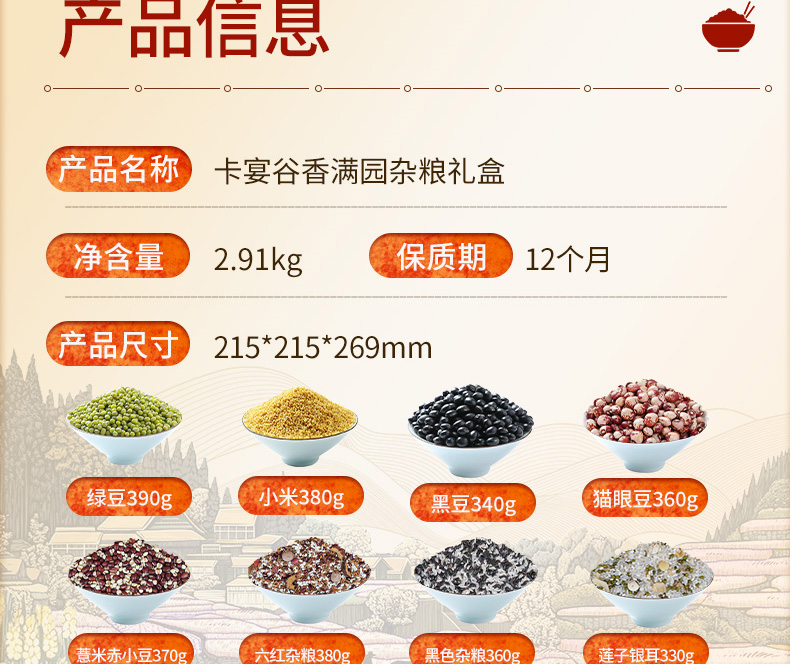 商品名称:卡宴谷香满园杂粮礼盒2910g