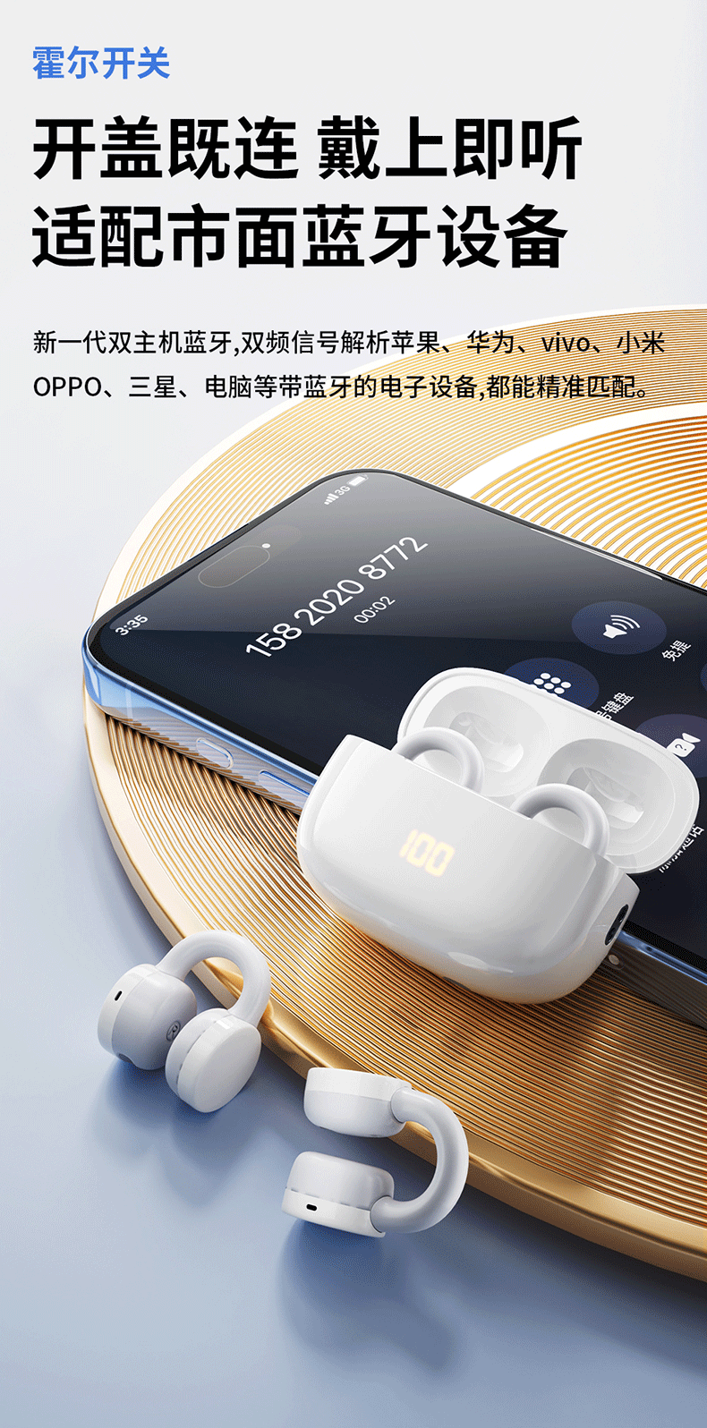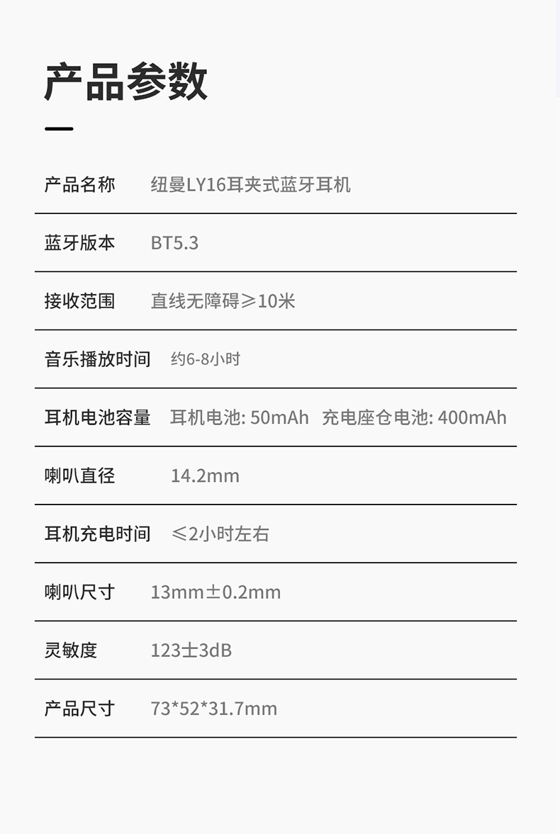 商品名称:Newmine/纽曼夹耳式无线蓝牙耳机-白色LY16
