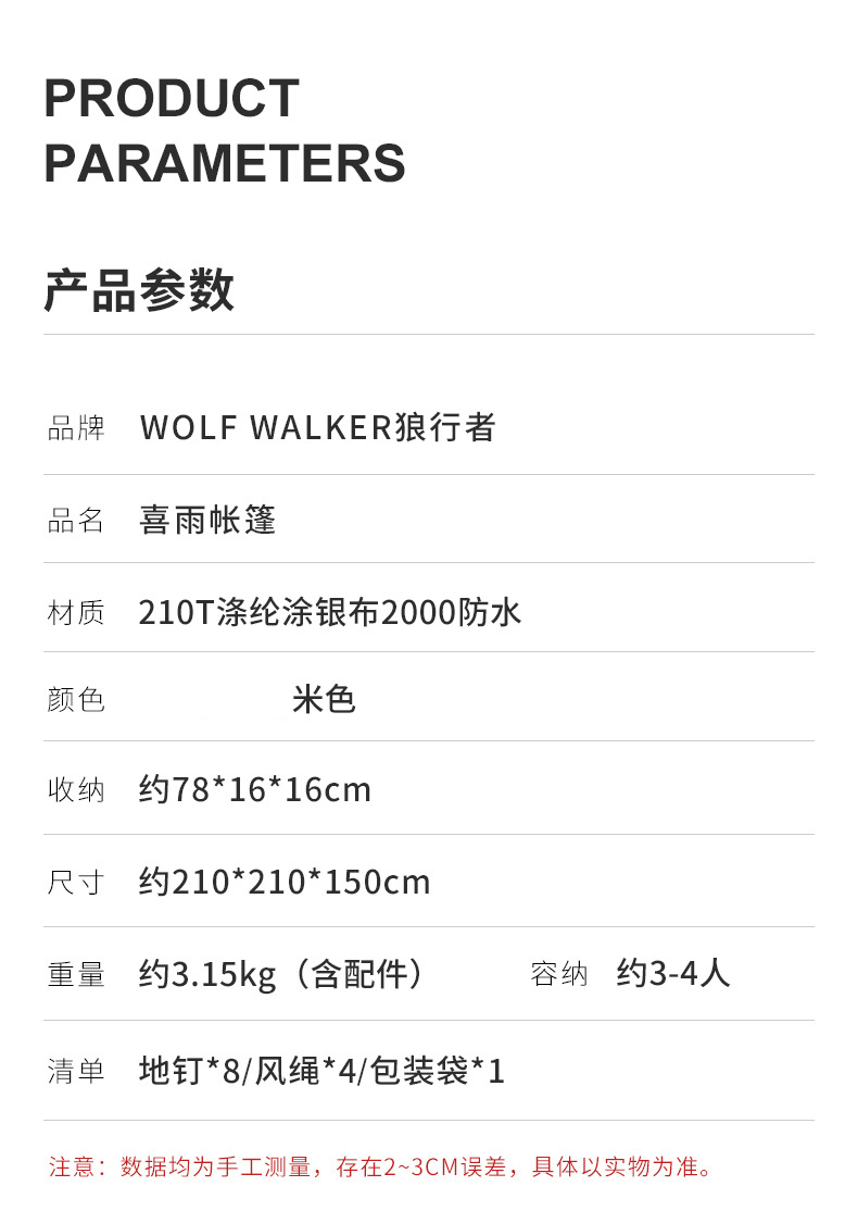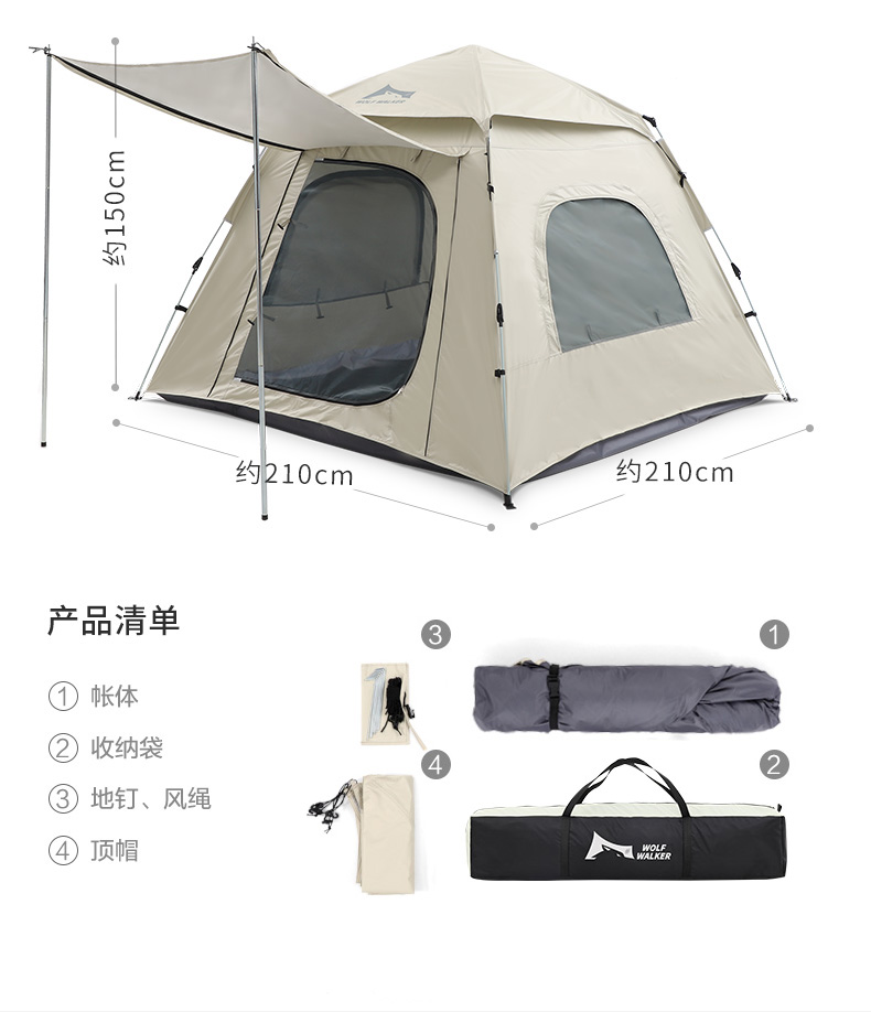 商品名称:WOLF WALKER/狼行者喜雨系列自动速开帐篷-米白色lxz-1139-1302