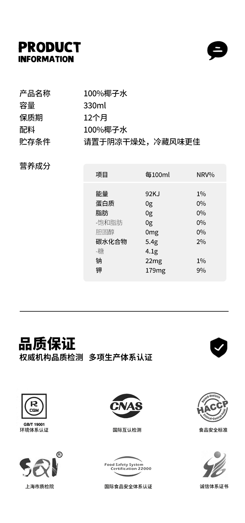 商品名称:椰子知道0糖鲜椰汁整箱330ml*6盒