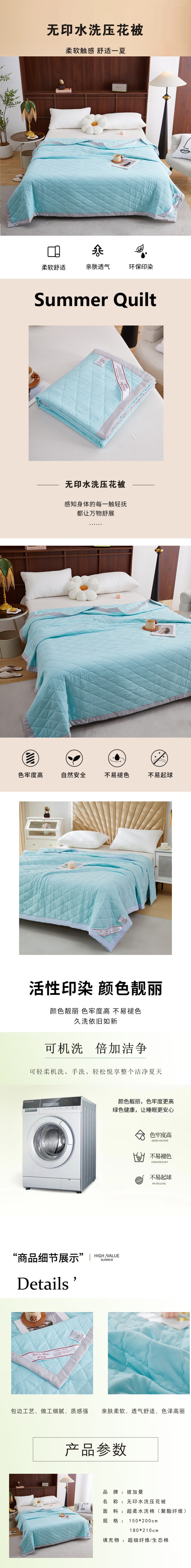 商品名称:BeGaMan/彼加曼无印水洗压花被-湖绿BGM-B2502