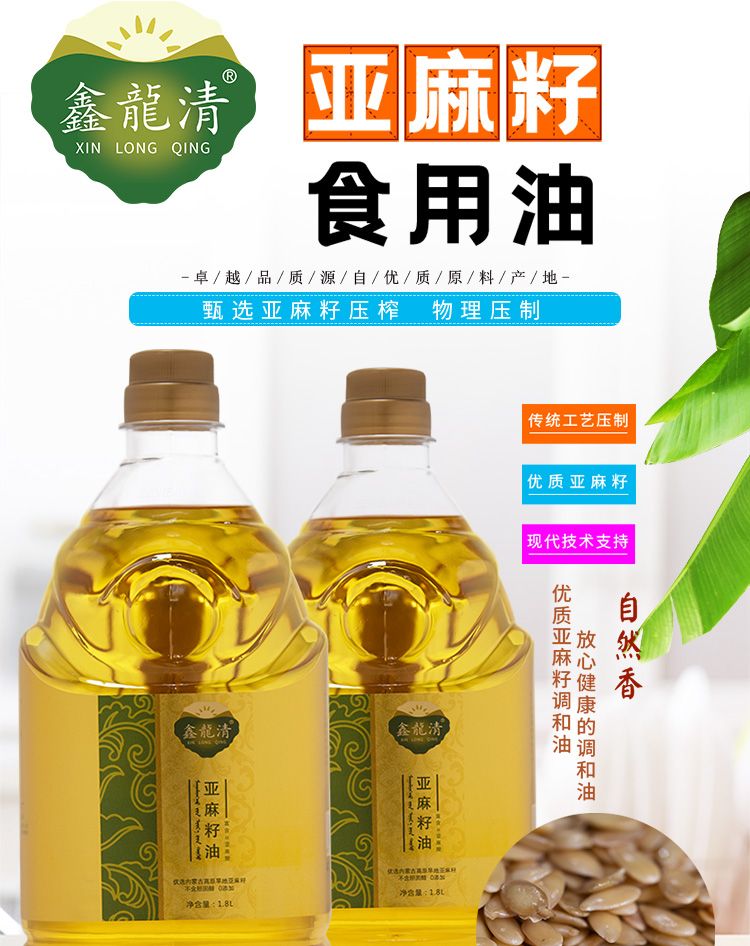 商品名称:鑫龍清一级亚麻籽油1.8L