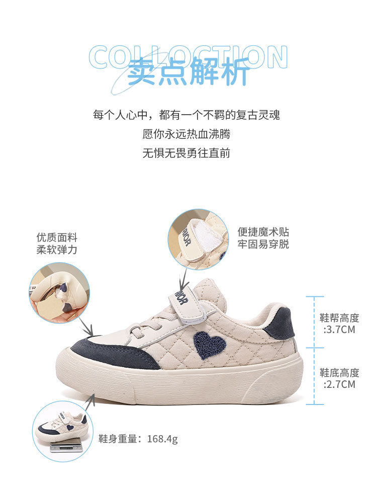 商品名称:【春季爆款】简约潮流儿童低帮小白鞋甜美时尚男女童运动休闲鞋 464771