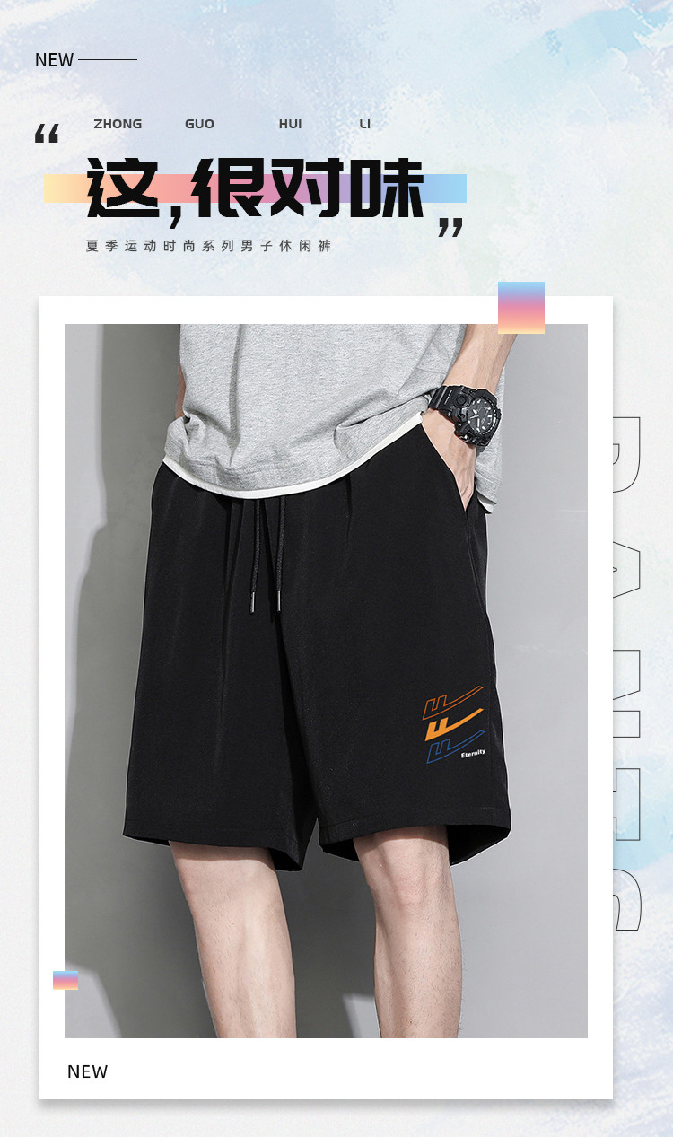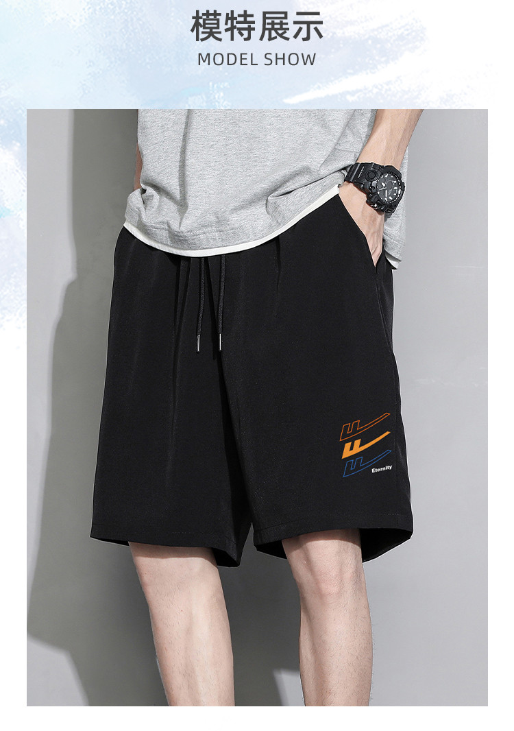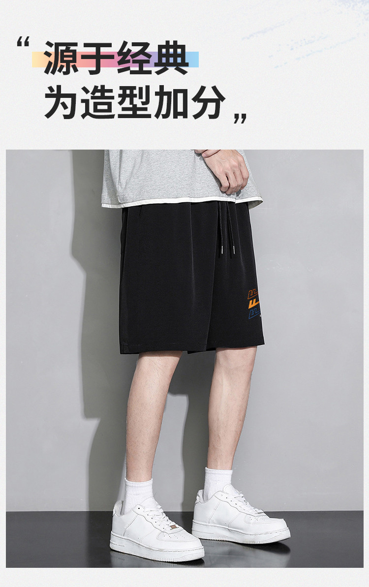 商品名称:冰丝短裤男士夏季薄款休闲中裤子潮流直筒宽松百搭沙滩运动五分裤 068755