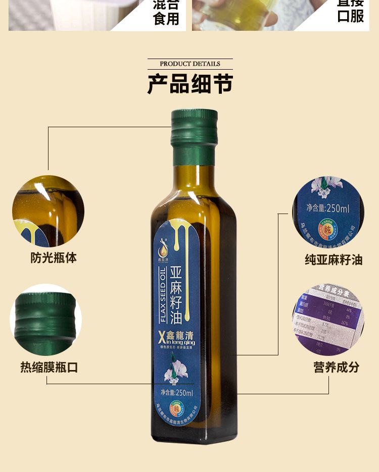 商品名称:鑫龍清冷榨亚麻籽油250ml*4礼盒