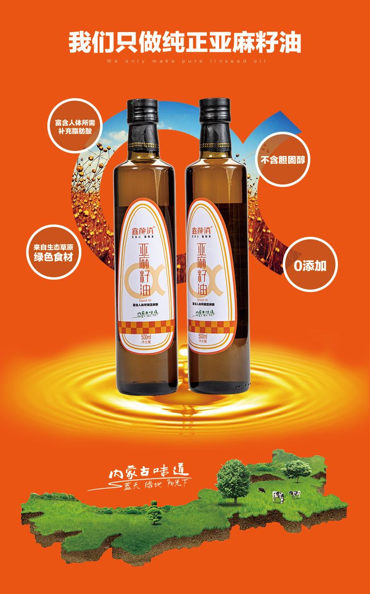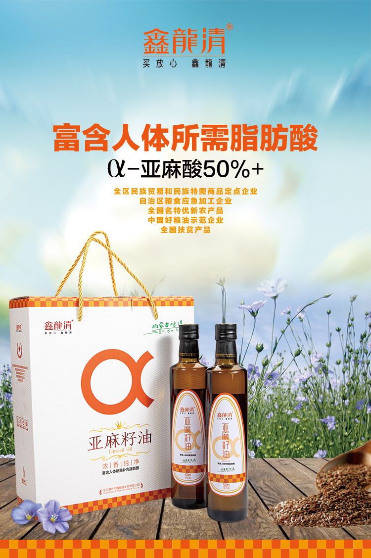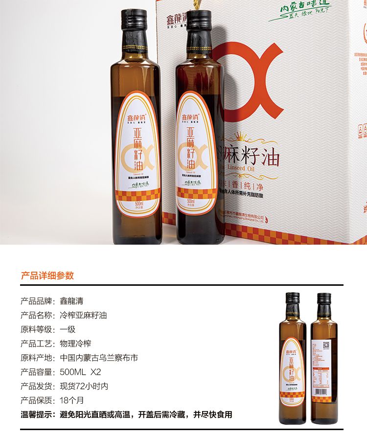 商品名称:鑫龍清冷榨亚麻籽油500ml*2礼盒