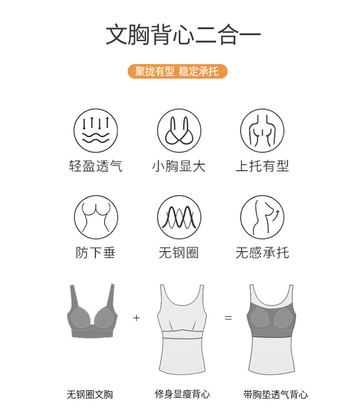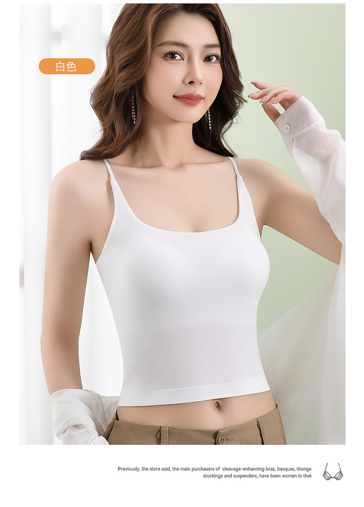 商品名称:【挺拔胸型】春夏亲肤莫代尔双层无痕固定杯吊带背心文胸打底内衣 433310