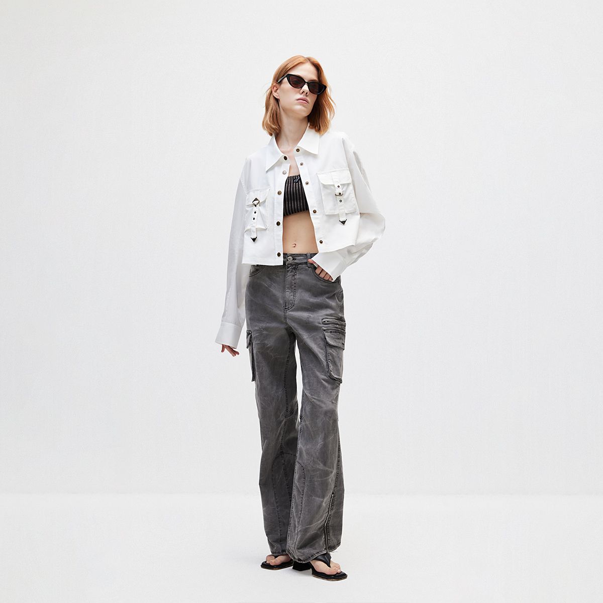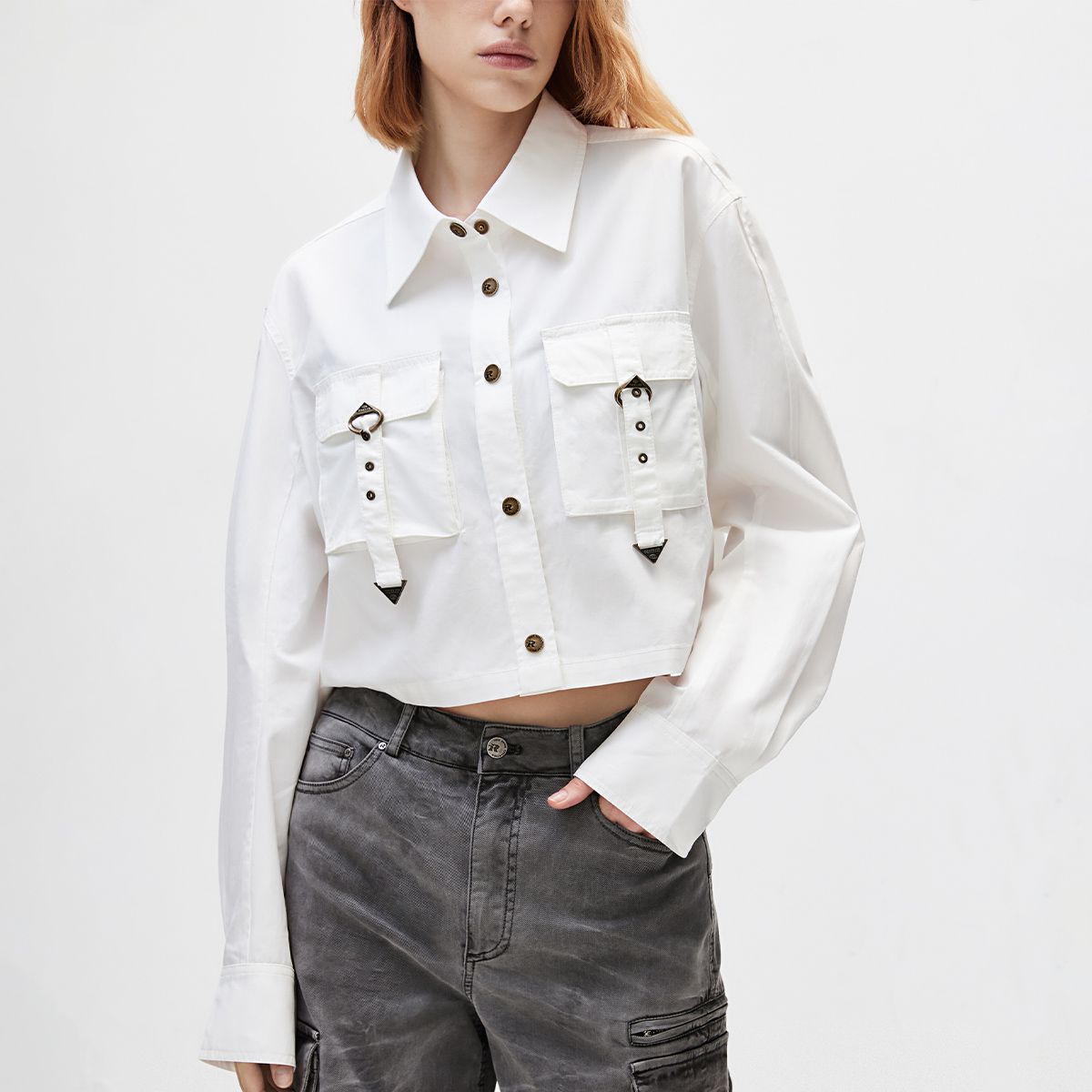 商品名称:【短款格子衫】夏季口袋翻领长袖短款衬衫女 228698