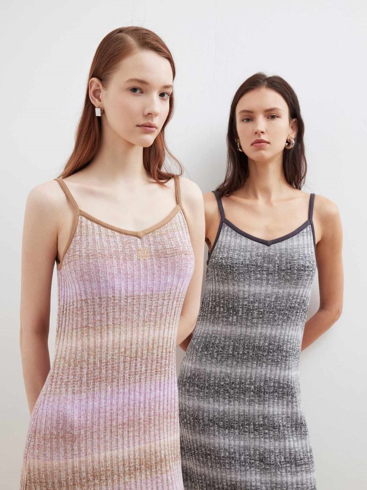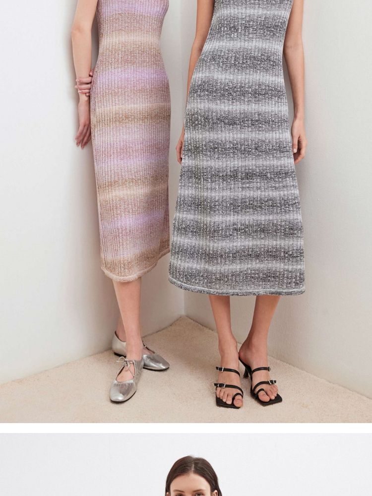 商品名称:【显瘦坑条纹】2025春季优雅性感渐变条纹吊带针织裙连衣裙女 627738