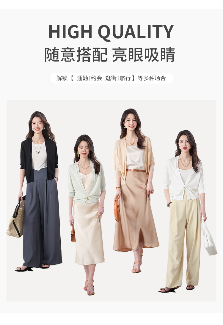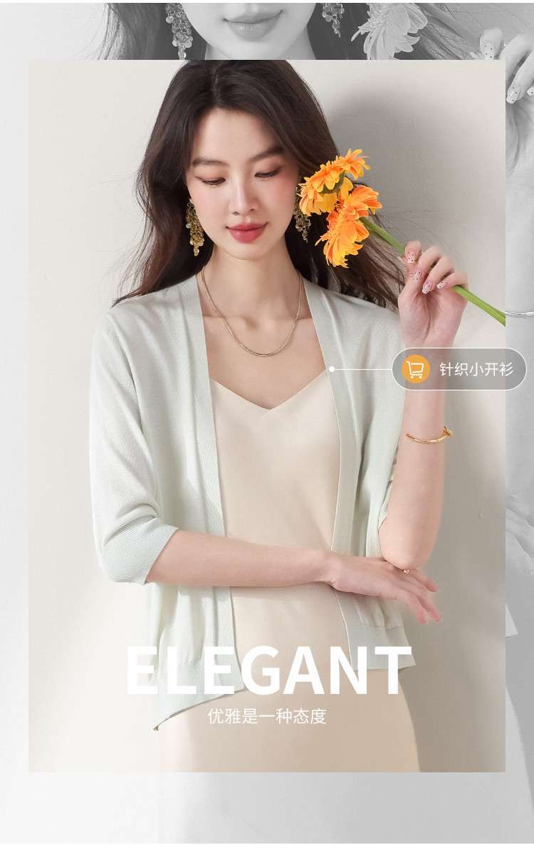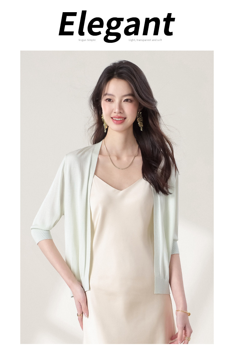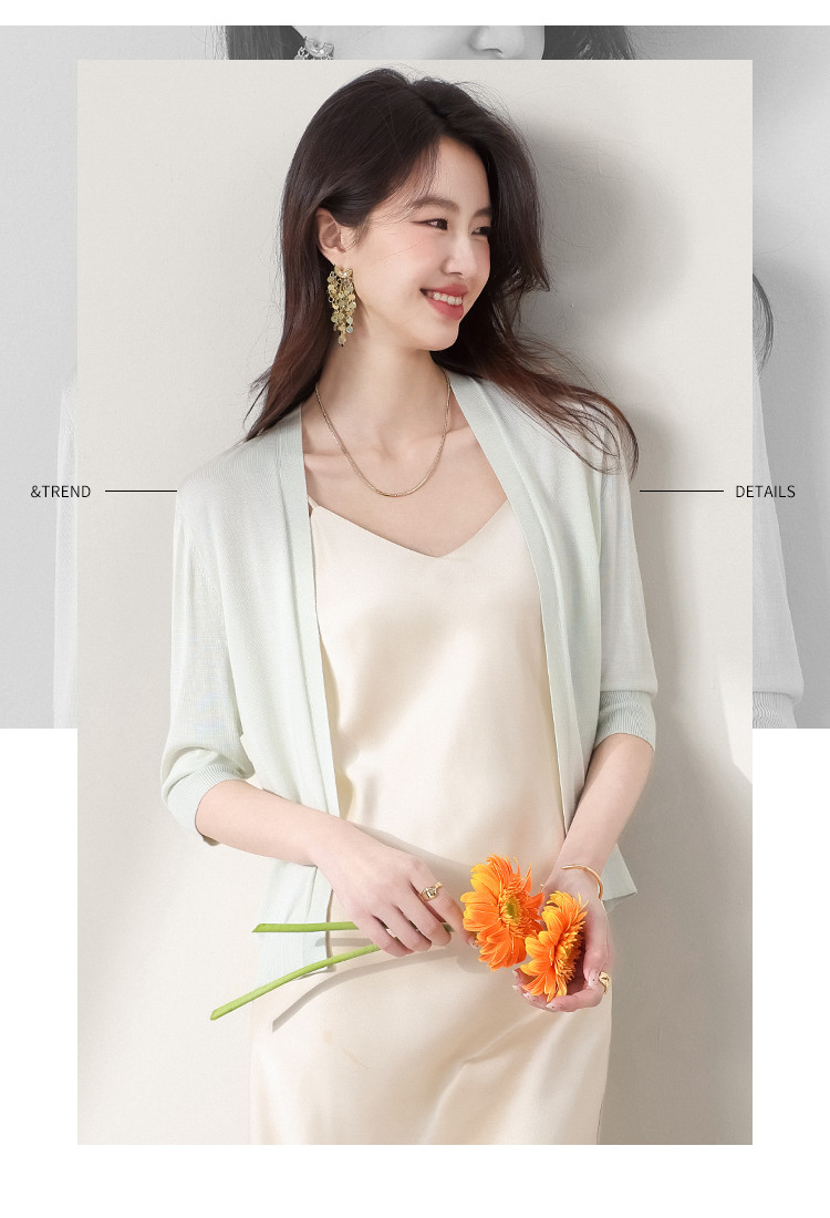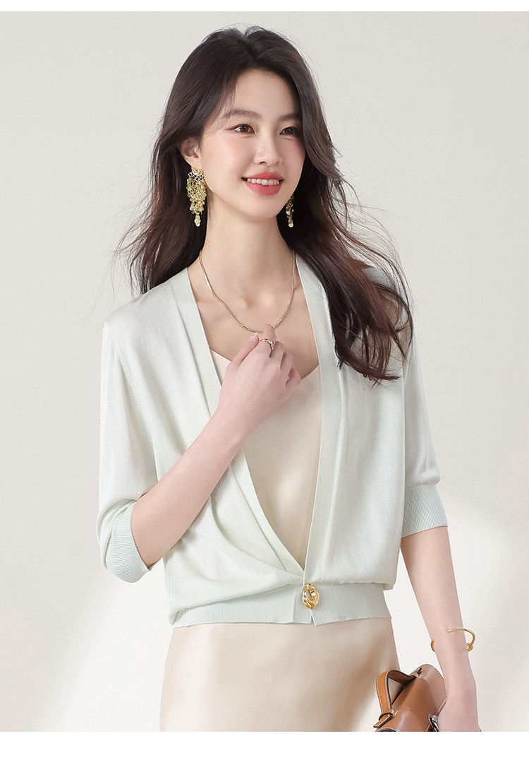 商品名称:v领纯色含桑蚕丝针织开衫休闲简约针织小外套空调衫春夏薄款上衣 456595
