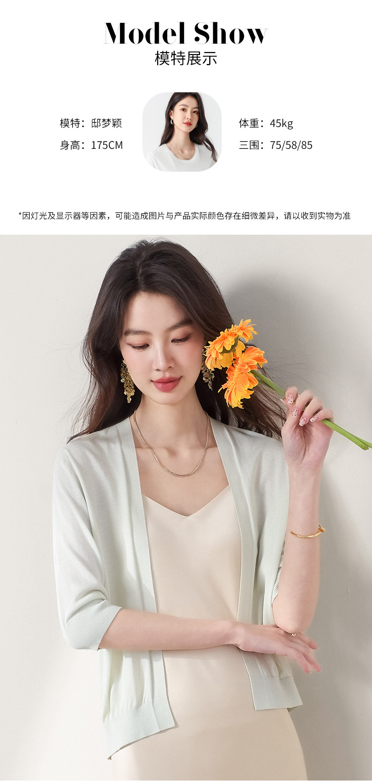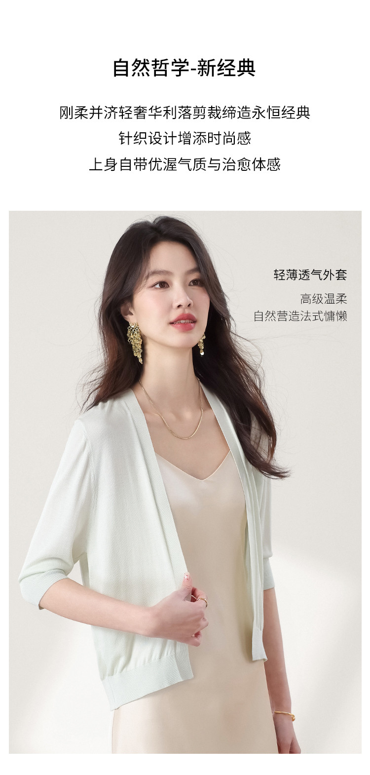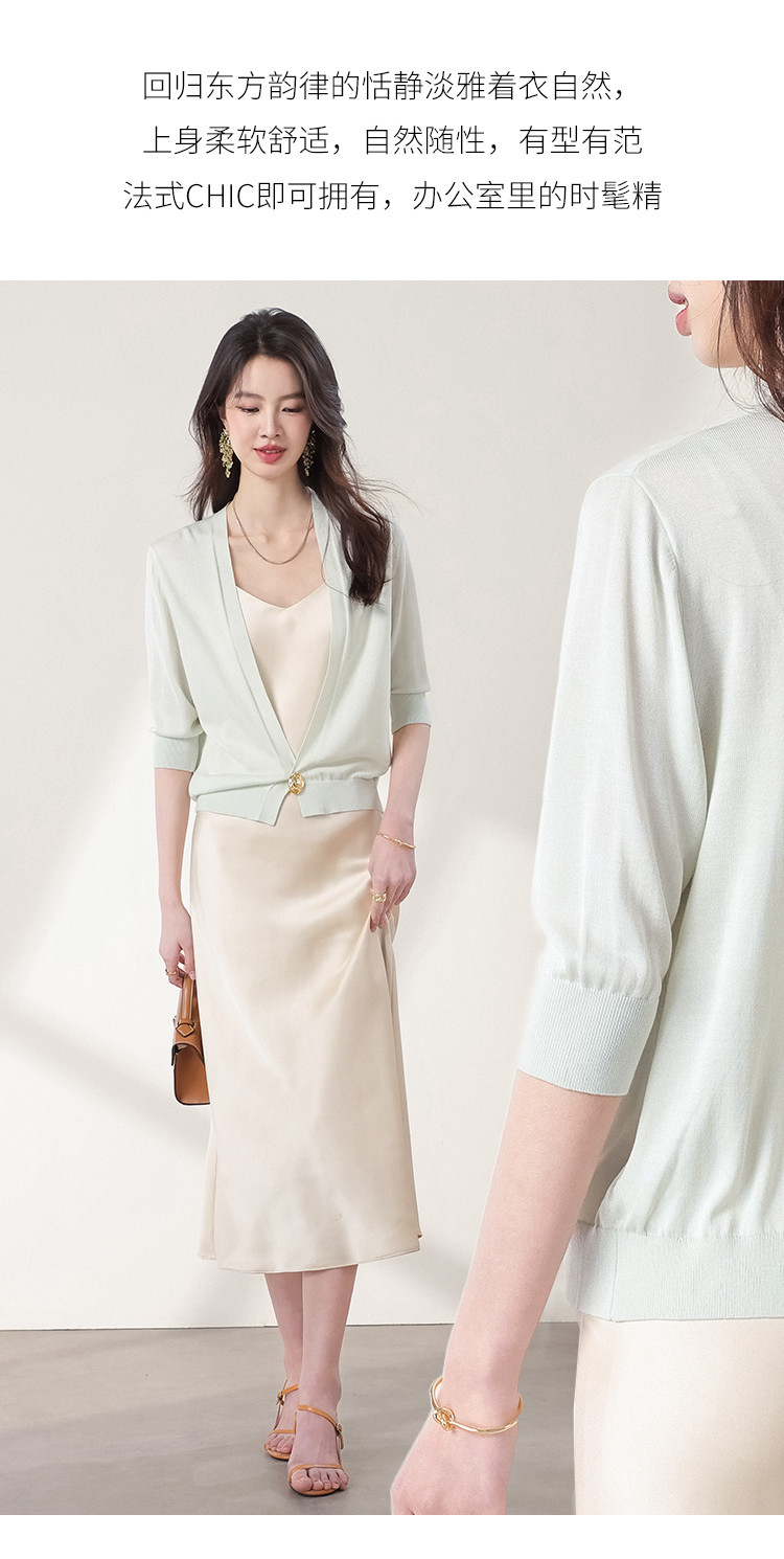 v领纯色含桑蚕丝针织开衫休闲简约针织小外套空调衫春夏薄款上衣 456595