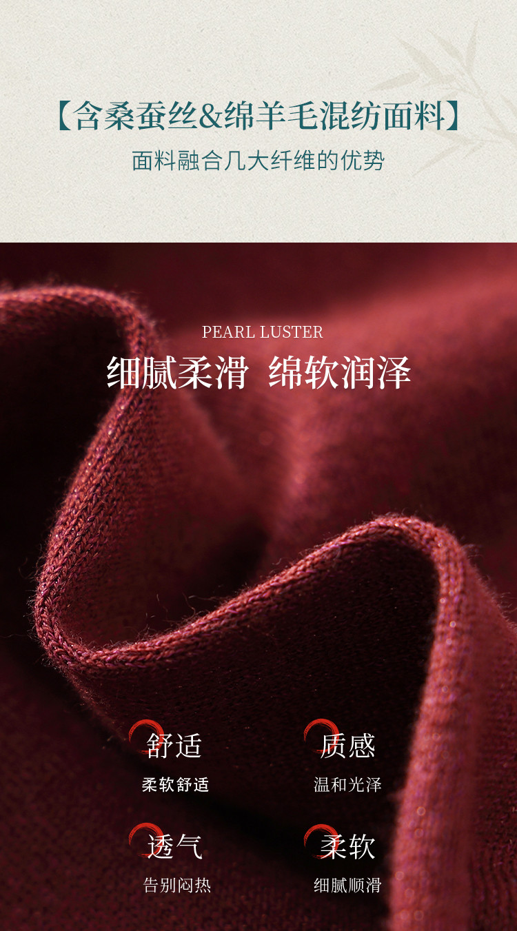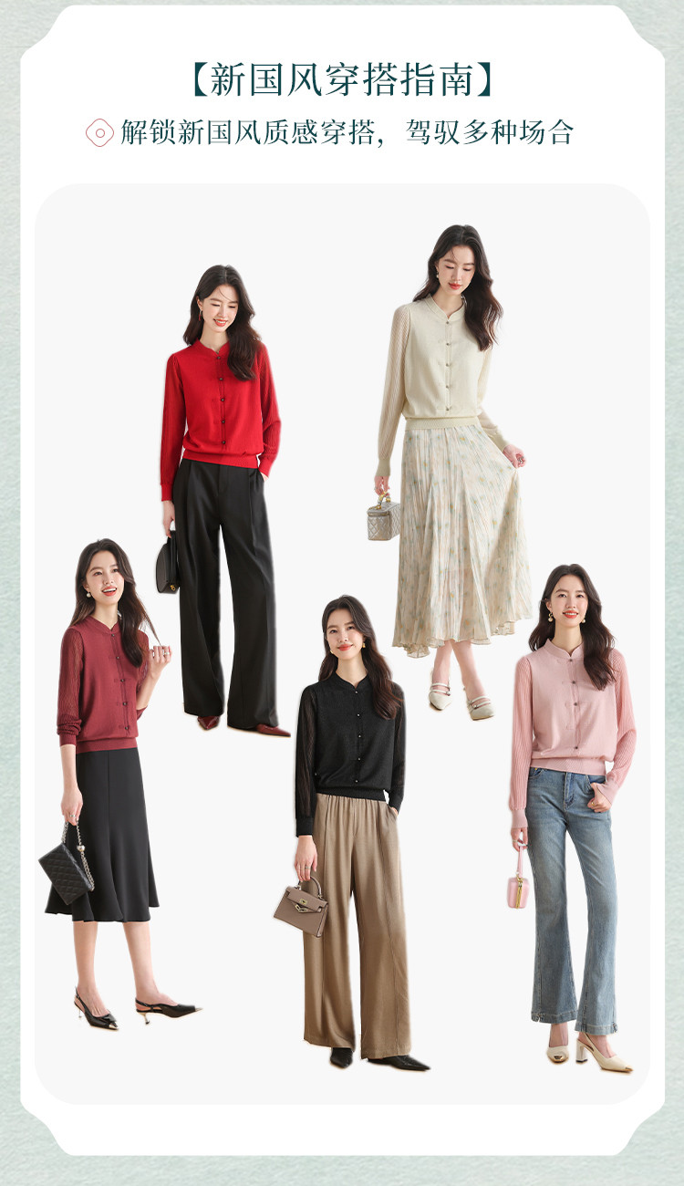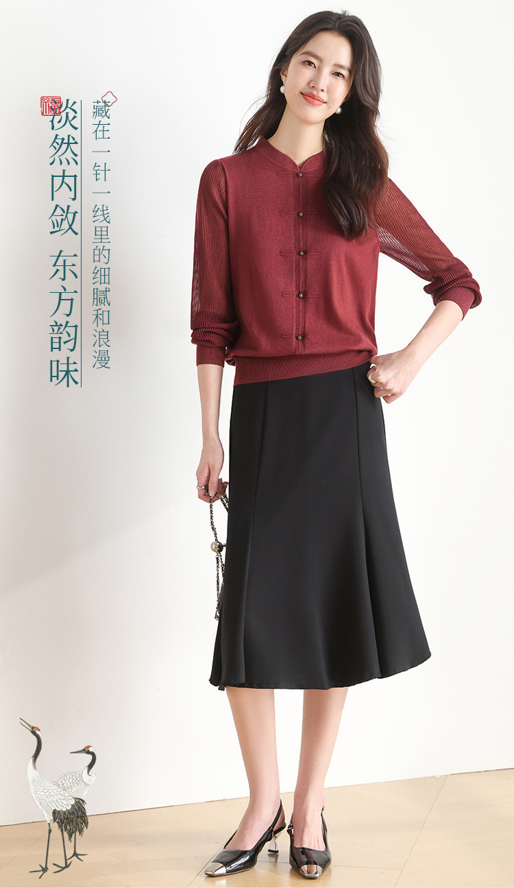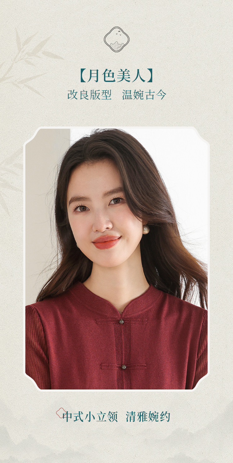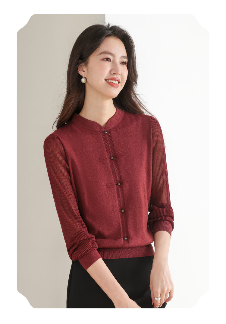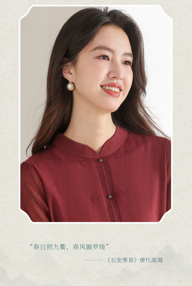【新中式】春旗袍领针织套衫纯色含桑蚕丝打底衫线衫国风针织衫女 675795