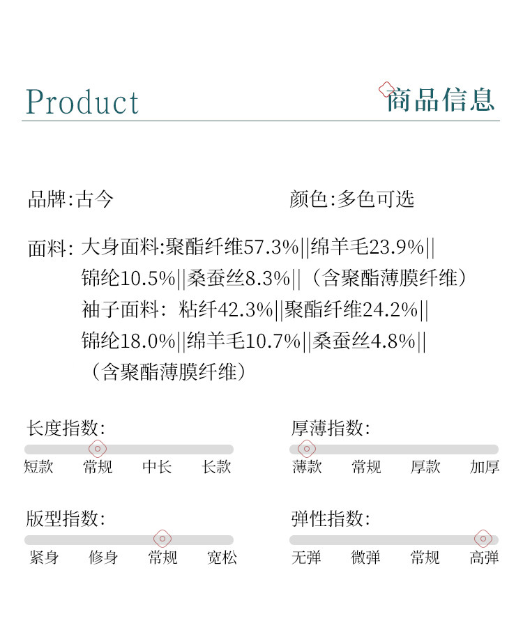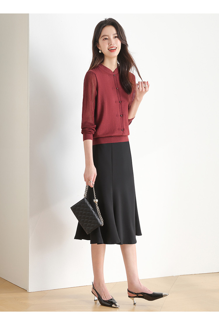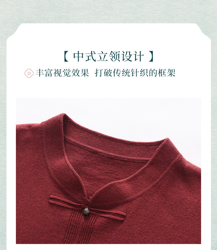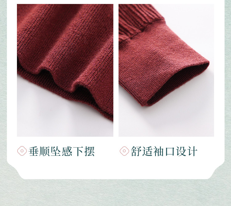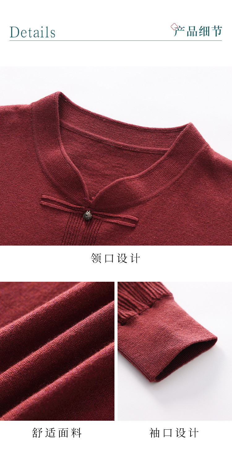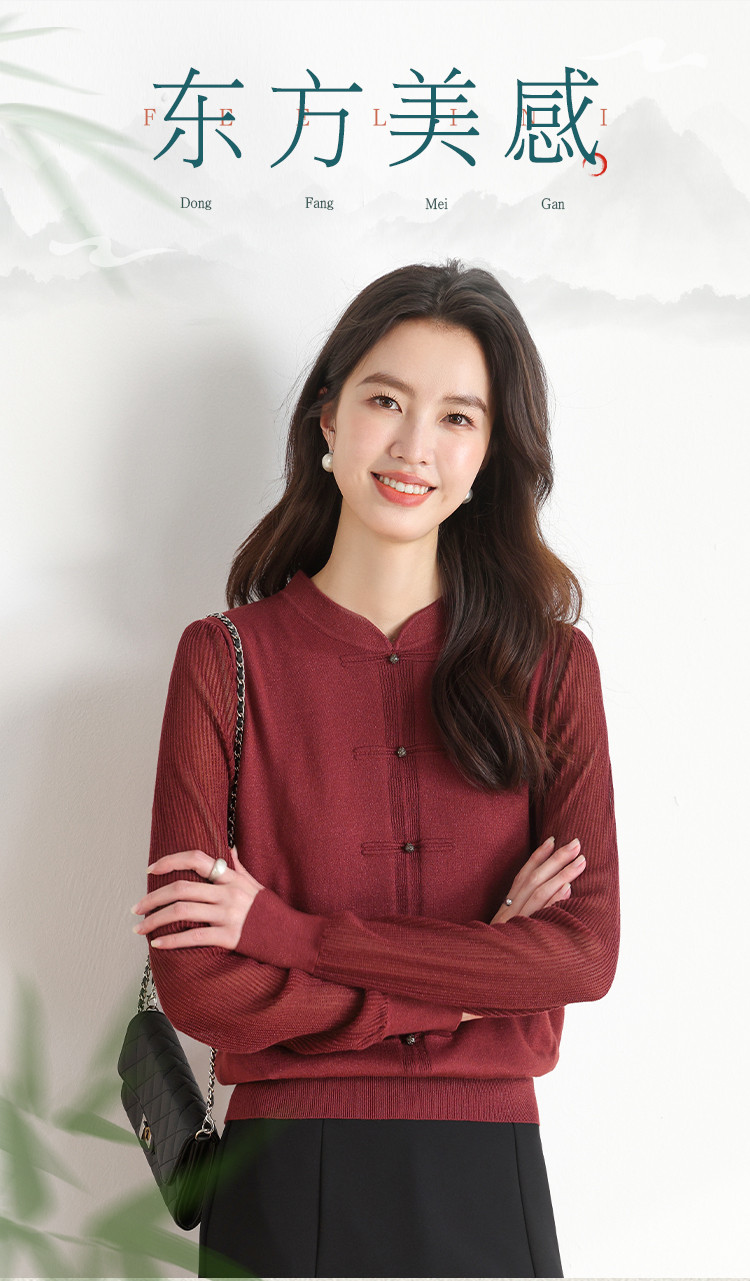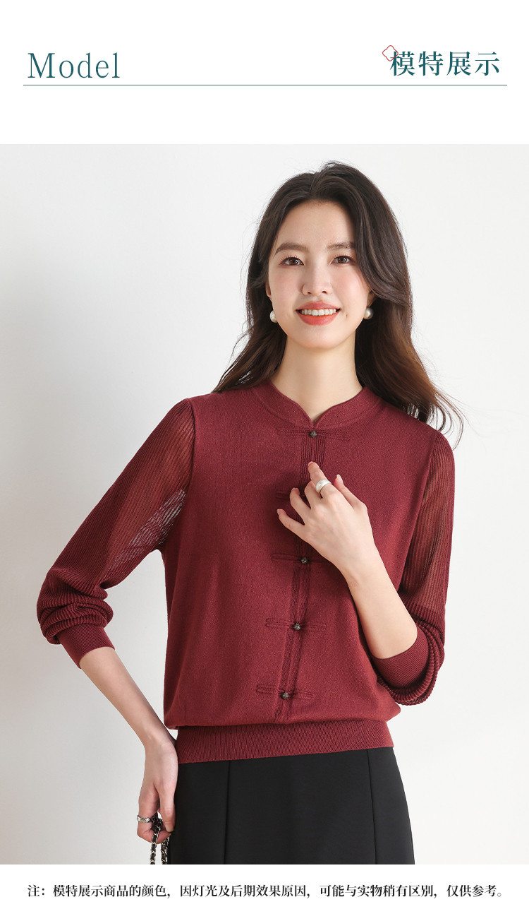 商品名称:【新中式】春旗袍领针织套衫纯色含桑蚕丝打底衫线衫国风针织衫女 675795