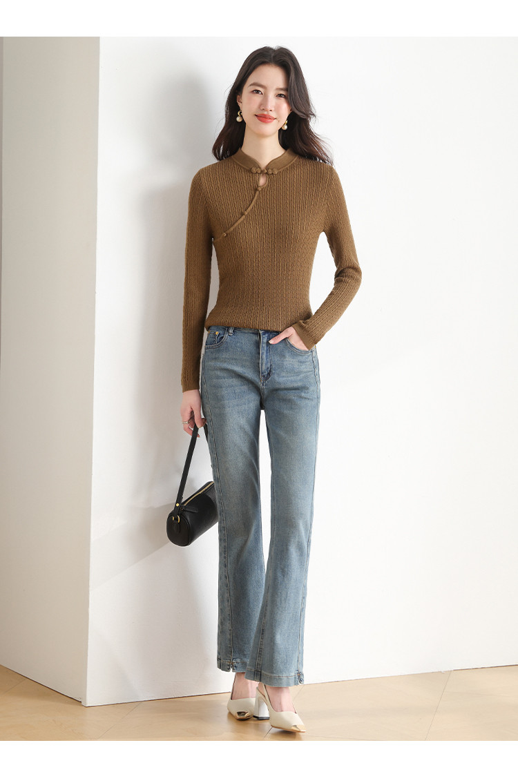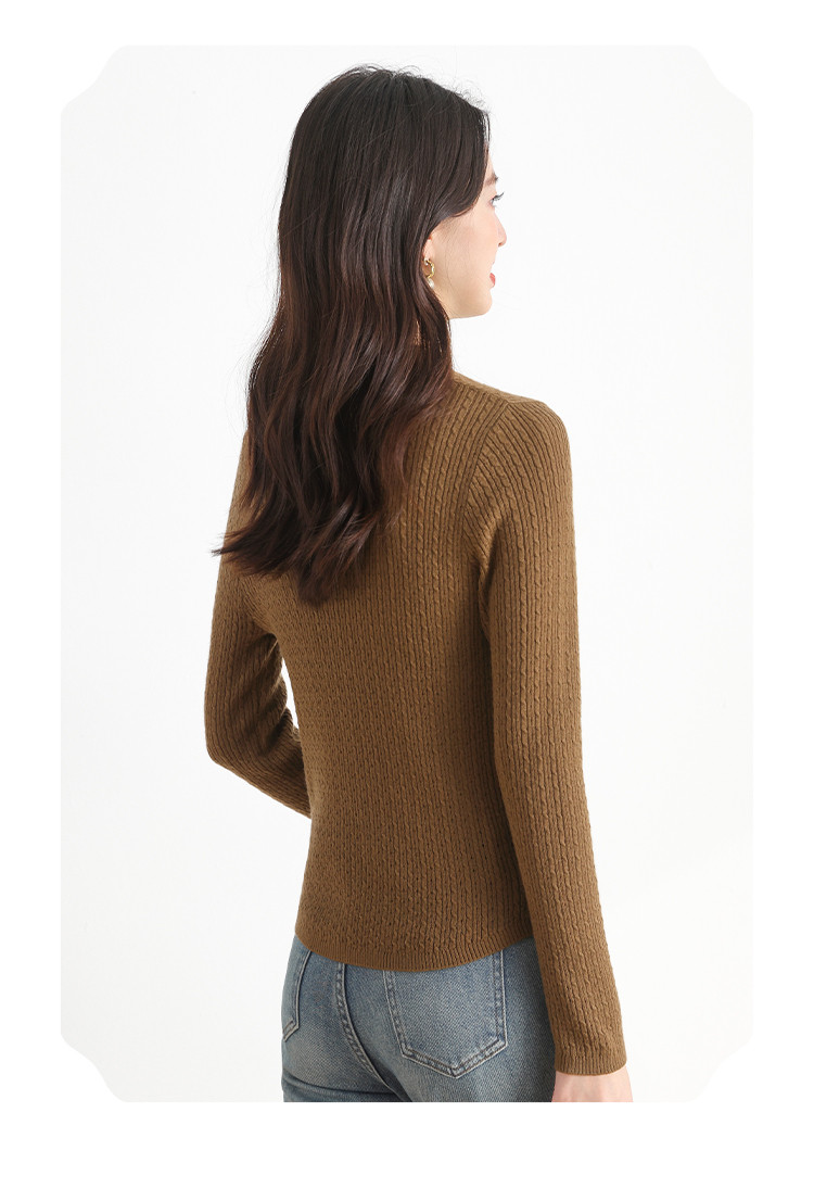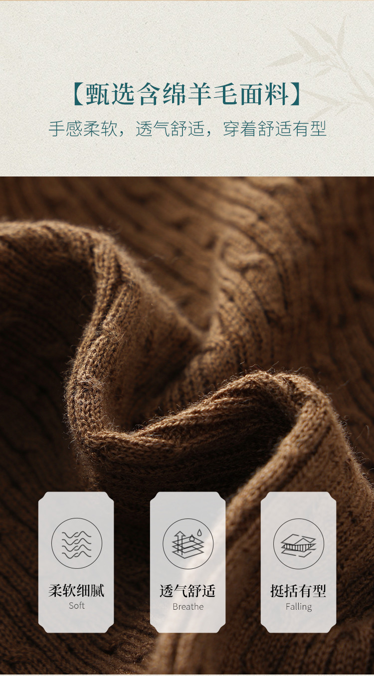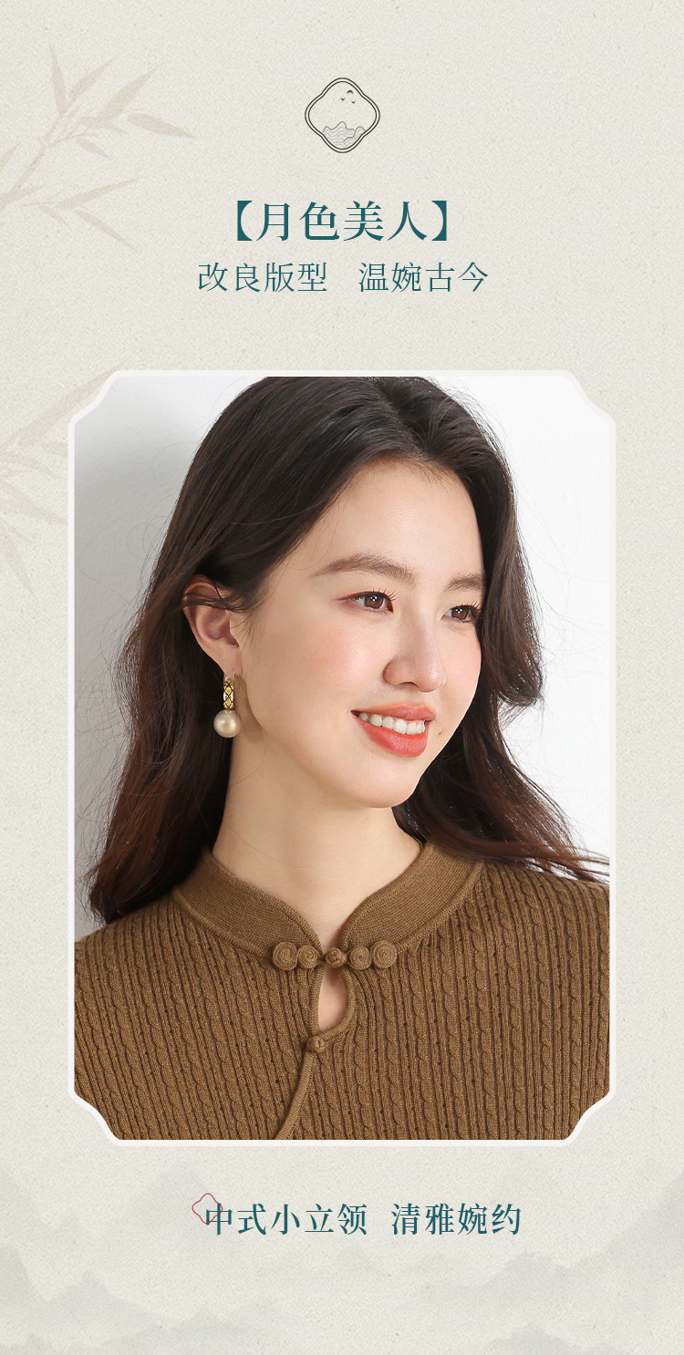 商品名称:【新中式】旗袍领盘扣针织衫女套头纯色绞花时尚羊毛打底衫线衫春 362003