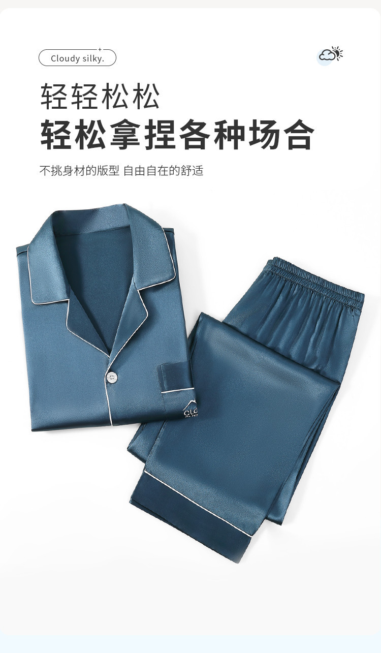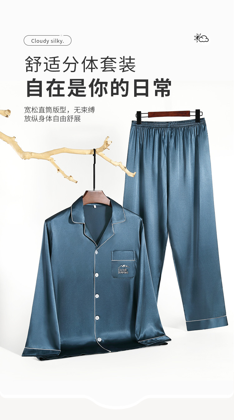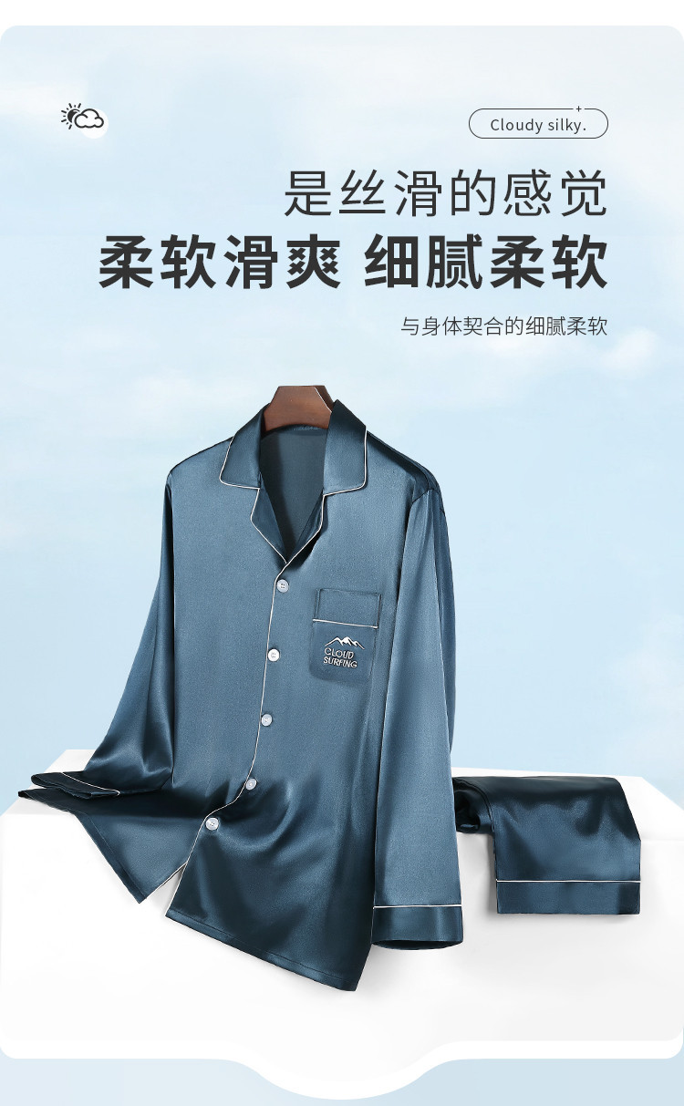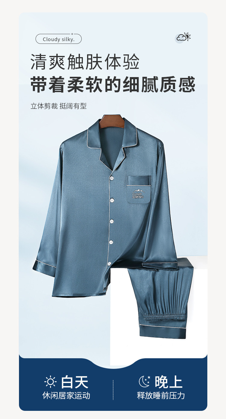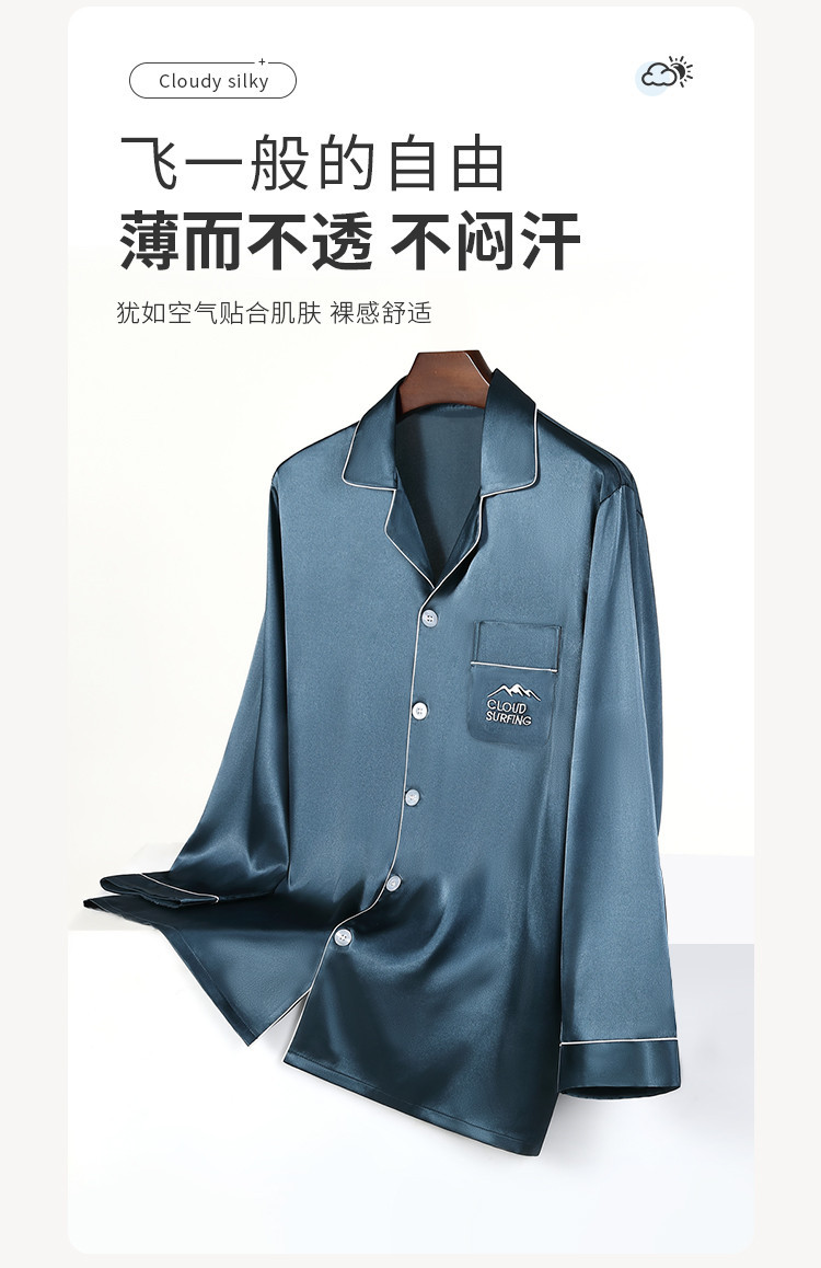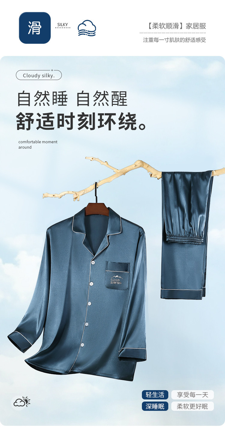 商品名称:【丝滑亲肤】男士春夏高级感冰丝睡衣长袖套装家居服薄男式居家服 645835