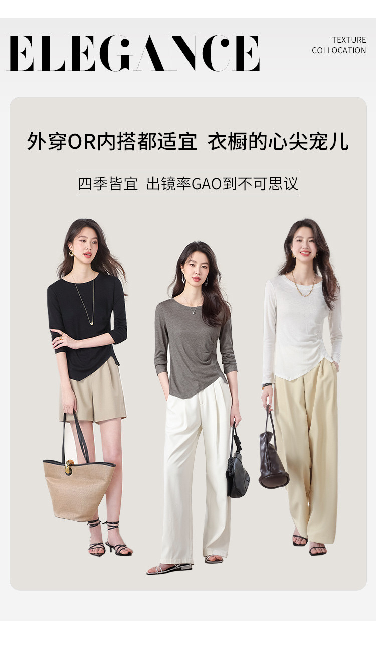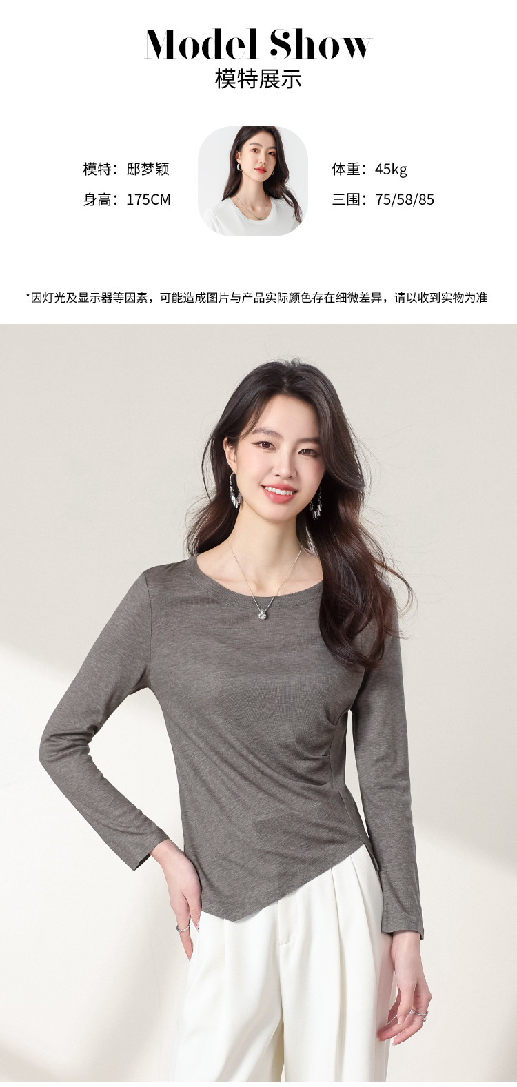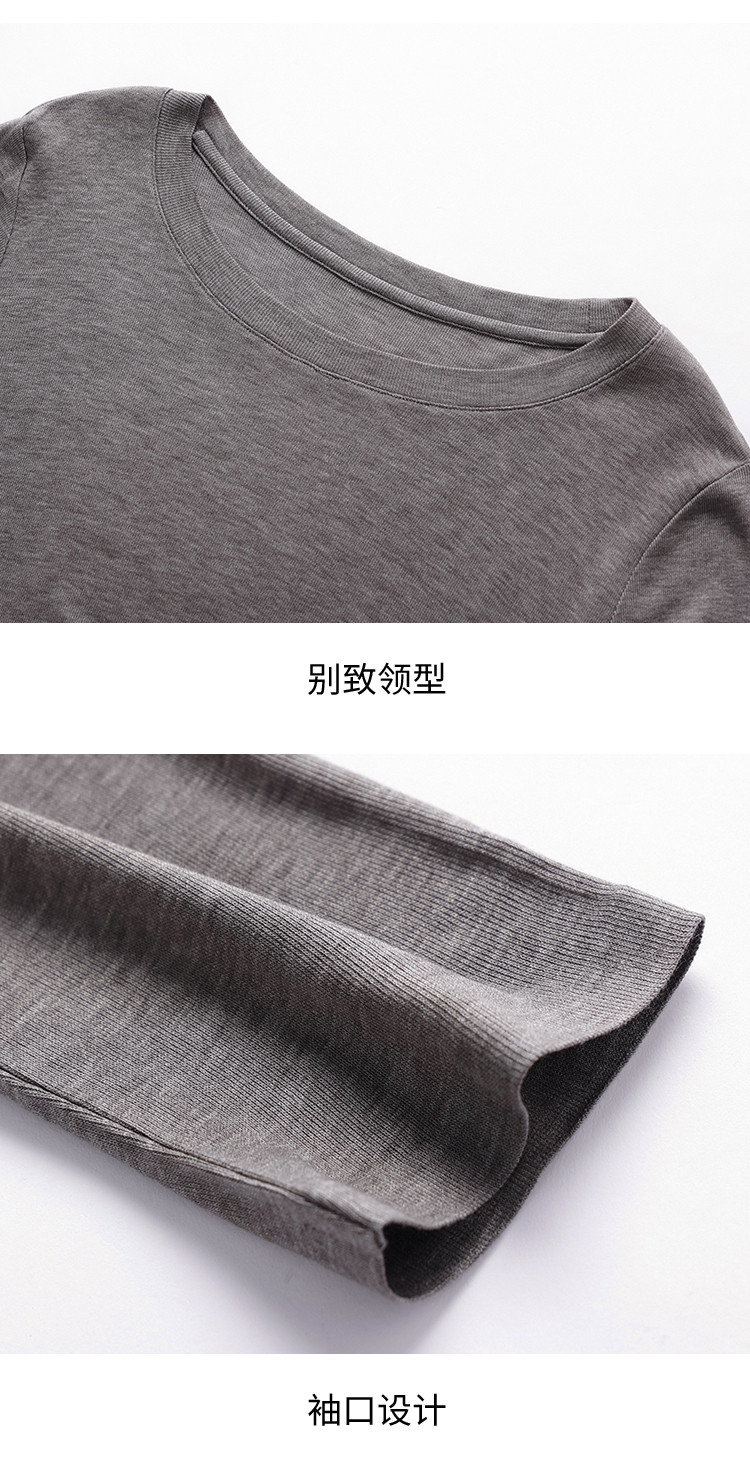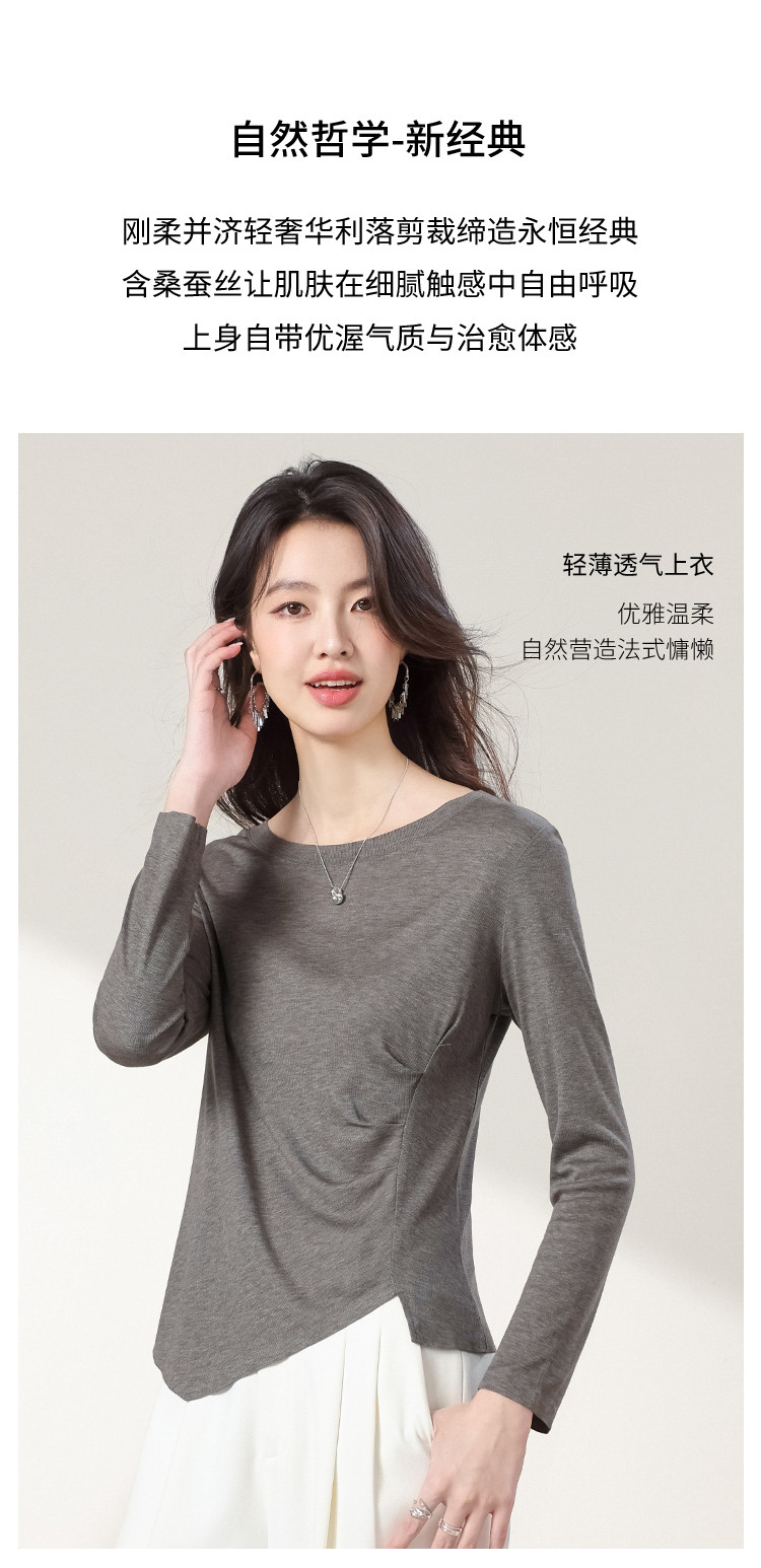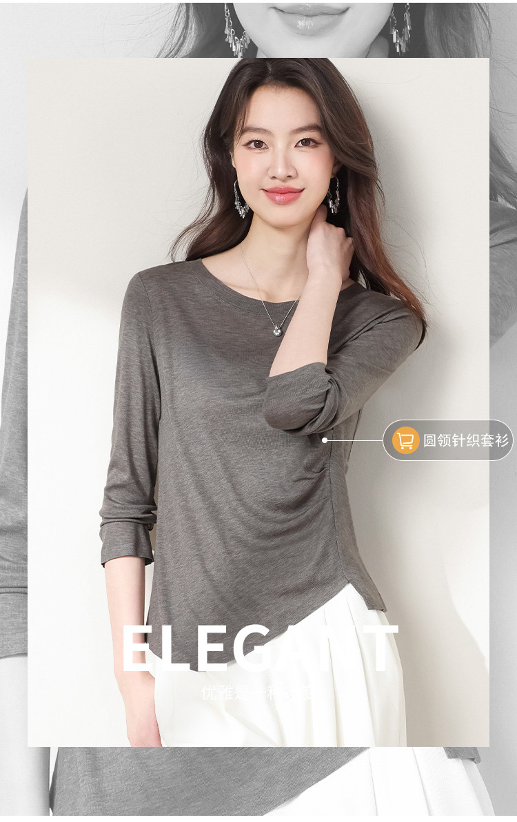 商品名称:【含桑蚕丝】圆领纯色休闲针织打底衫长袖百搭针织套衫薄女式T恤 833427