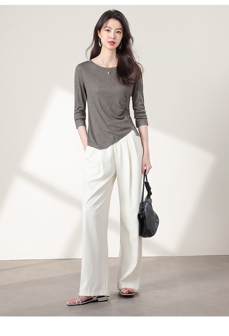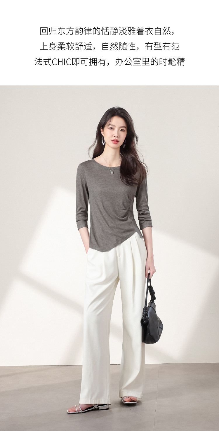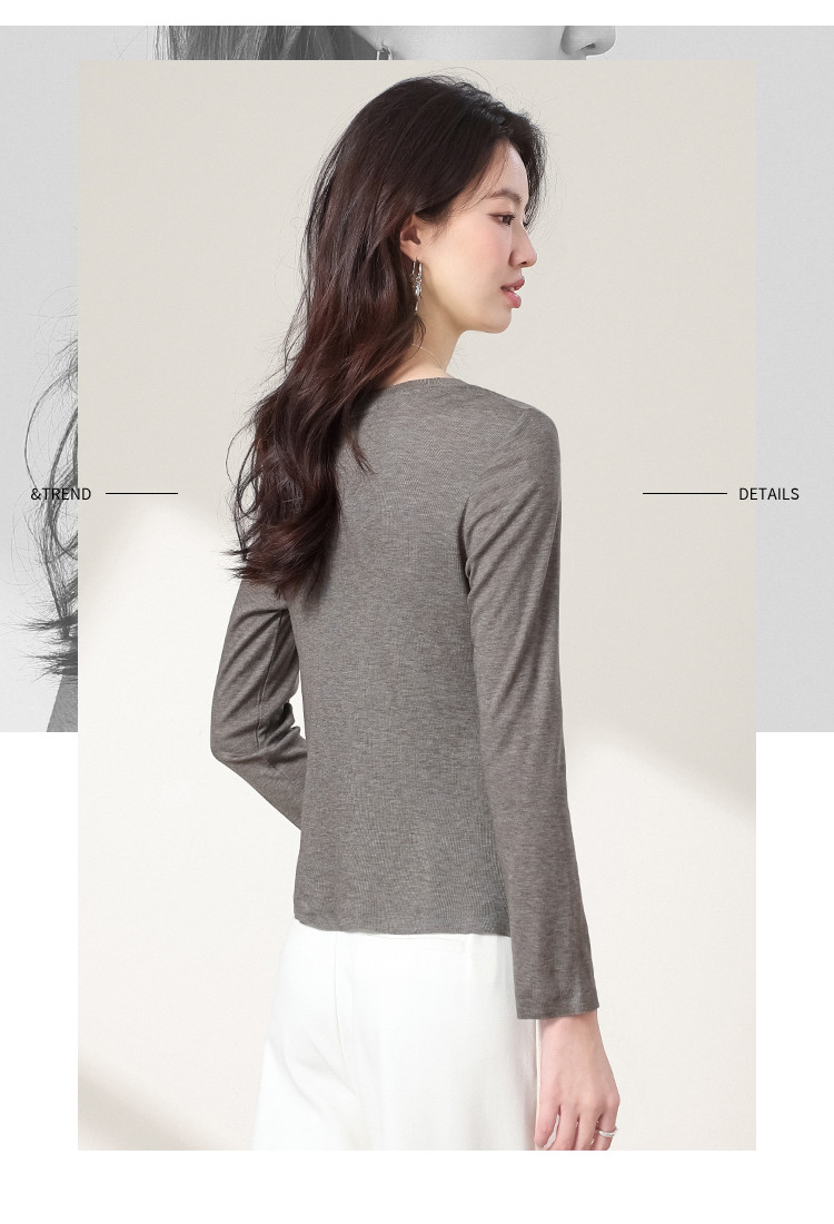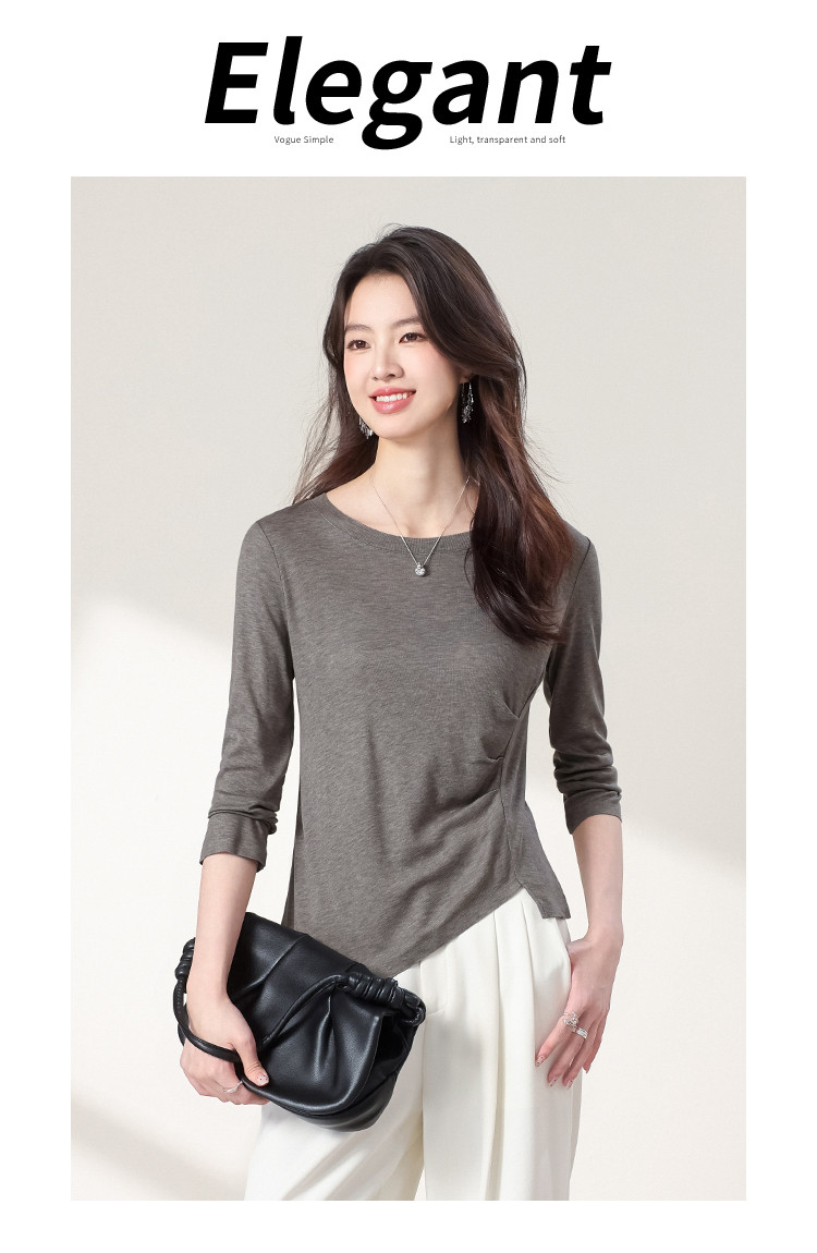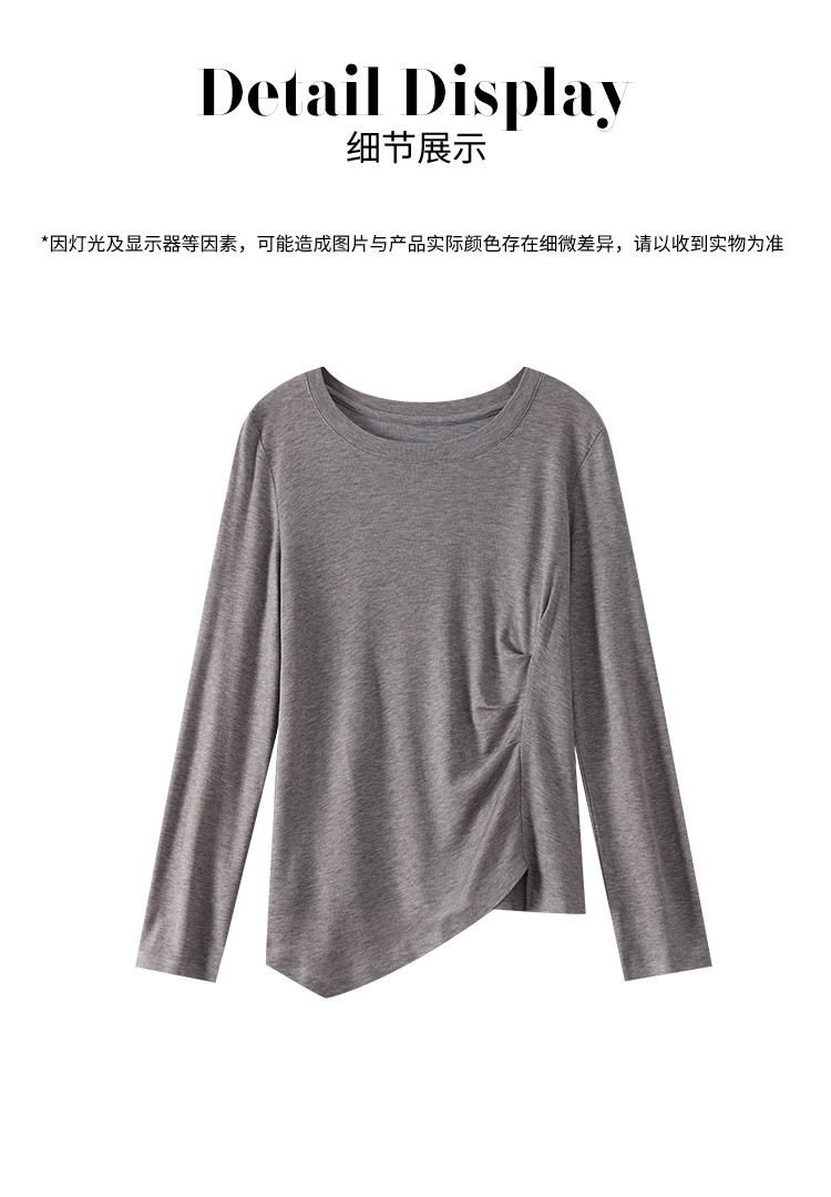 商品名称:【含桑蚕丝】圆领纯色休闲针织打底衫长袖百搭针织套衫薄女式T恤 833427