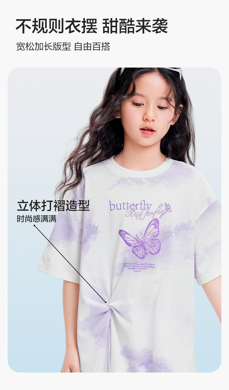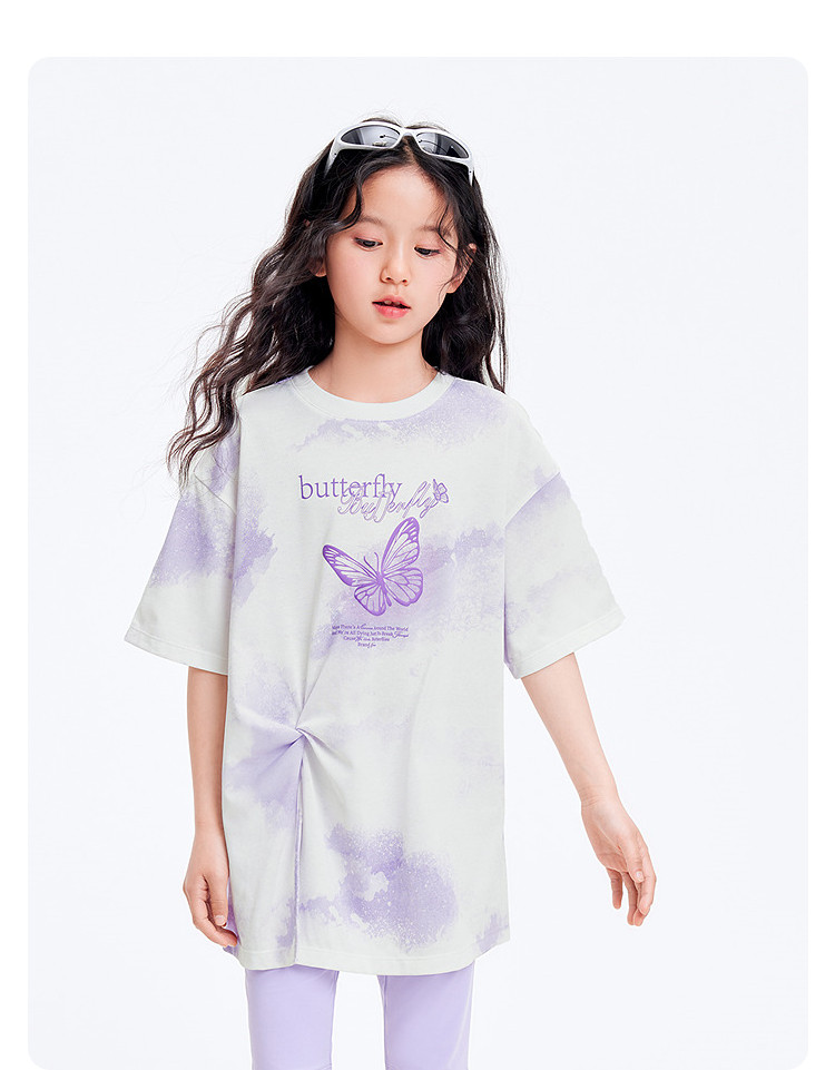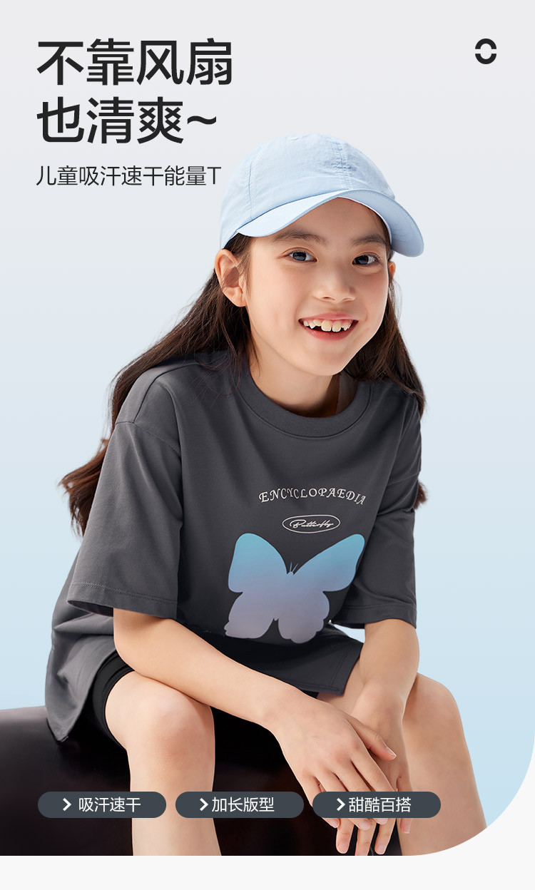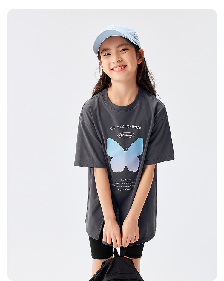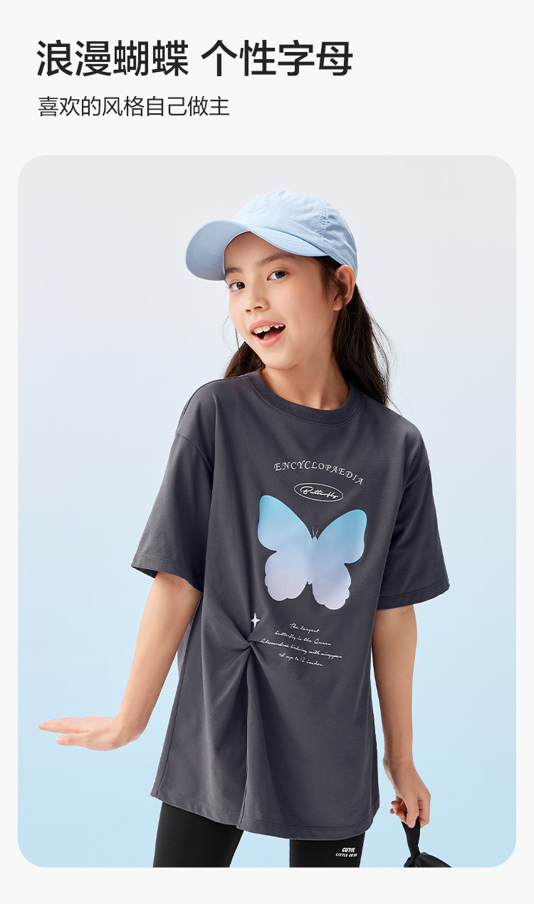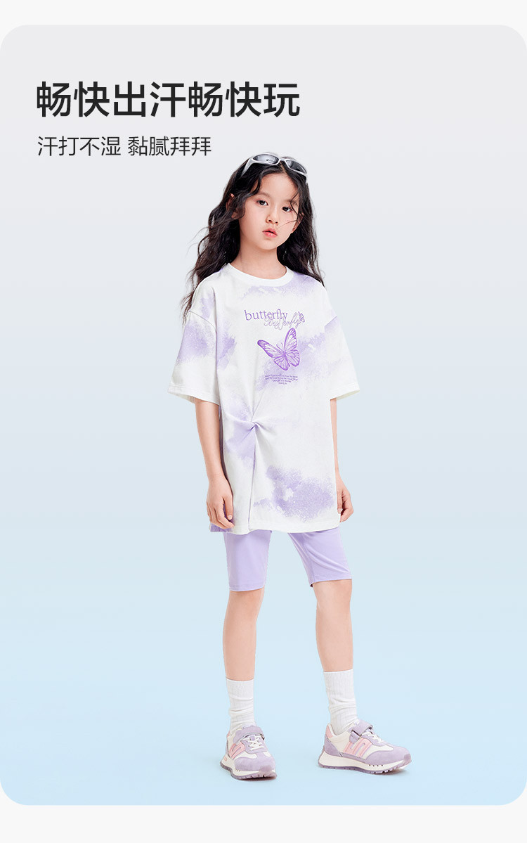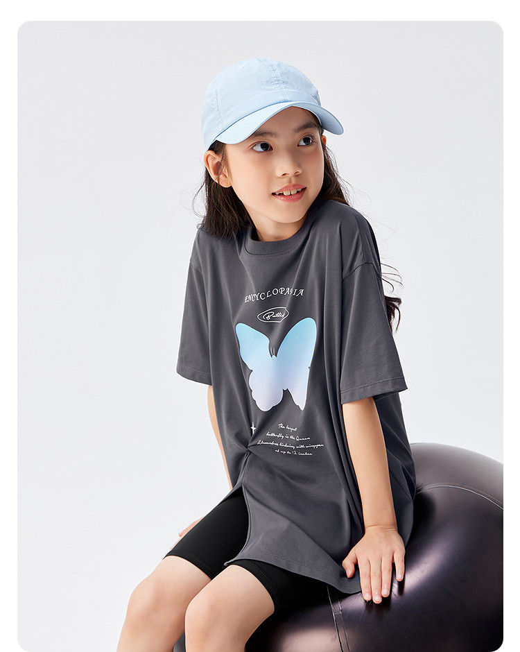商品名称:吸湿速干儿童短袖T恤女童夏装2025新款童装大童甜美印花上衣 255045