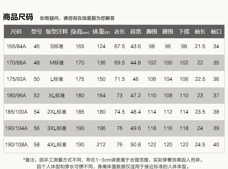 | 尺码 | 衣长(cm) | 肩宽(cm) | 腰围(cm) | 袖长(cm) | 胸围(cm) | 下摆围(cm) | 号型 |