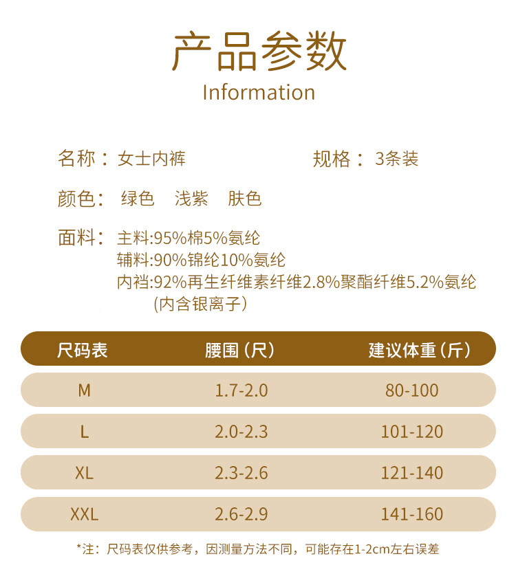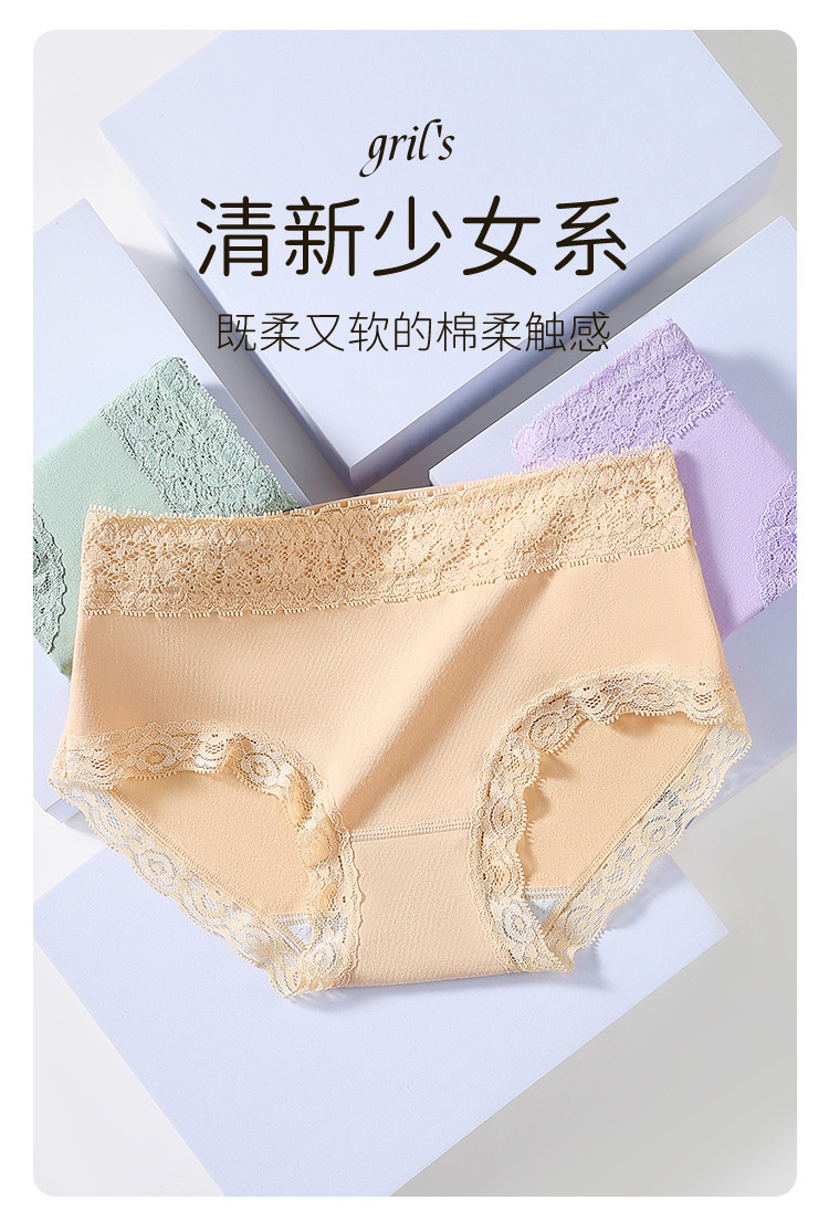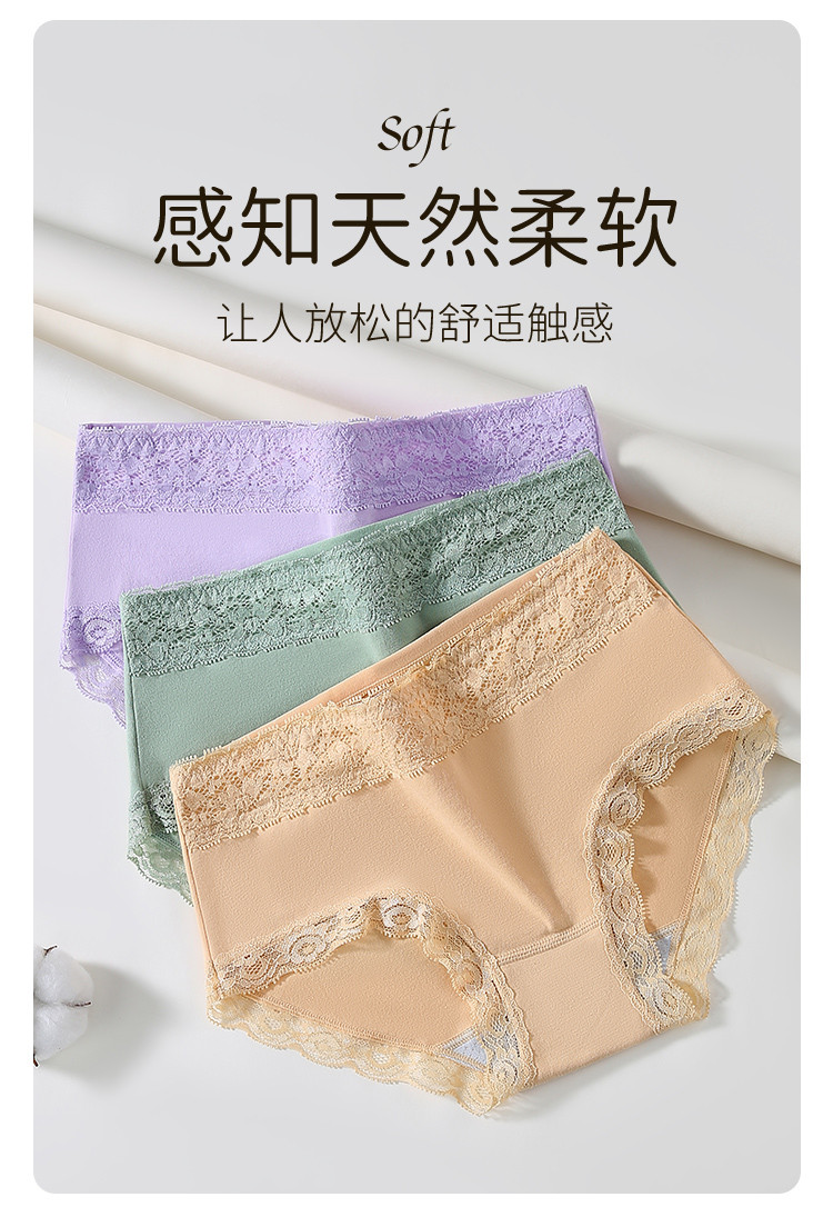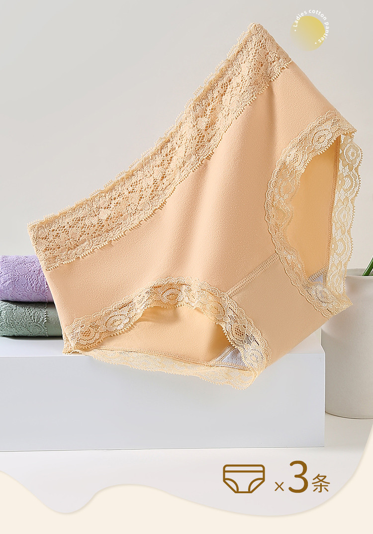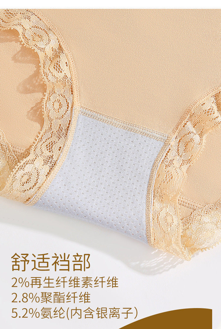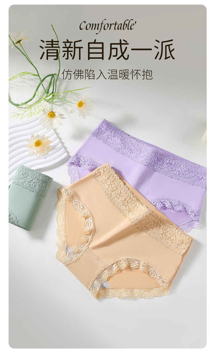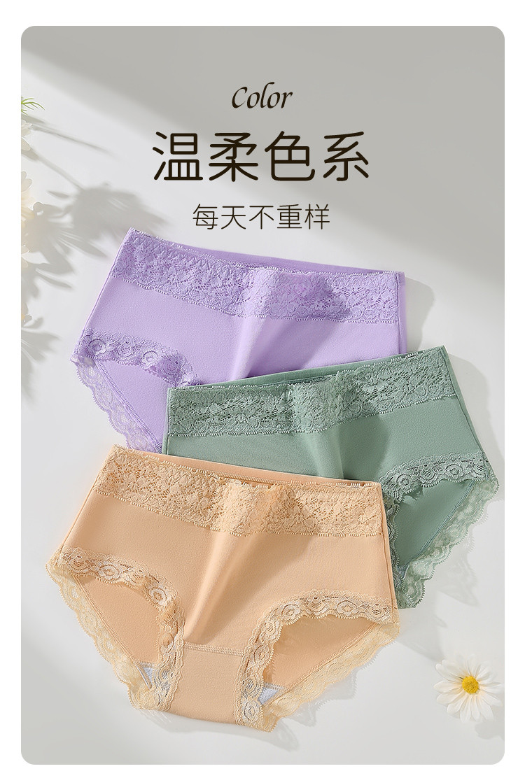 商品名称:3条装【轻奢性感蕾丝】中高腰收腹弹力舒适透气绵柔亲肤女士内裤 189963