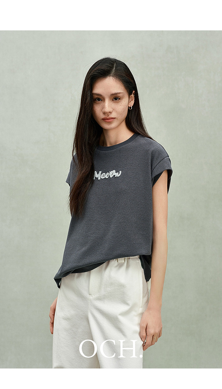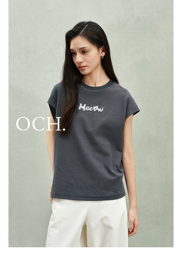 限定系列OCH.春装 珠片绣花宽松休闲上衣坎肩无袖t恤女 141455