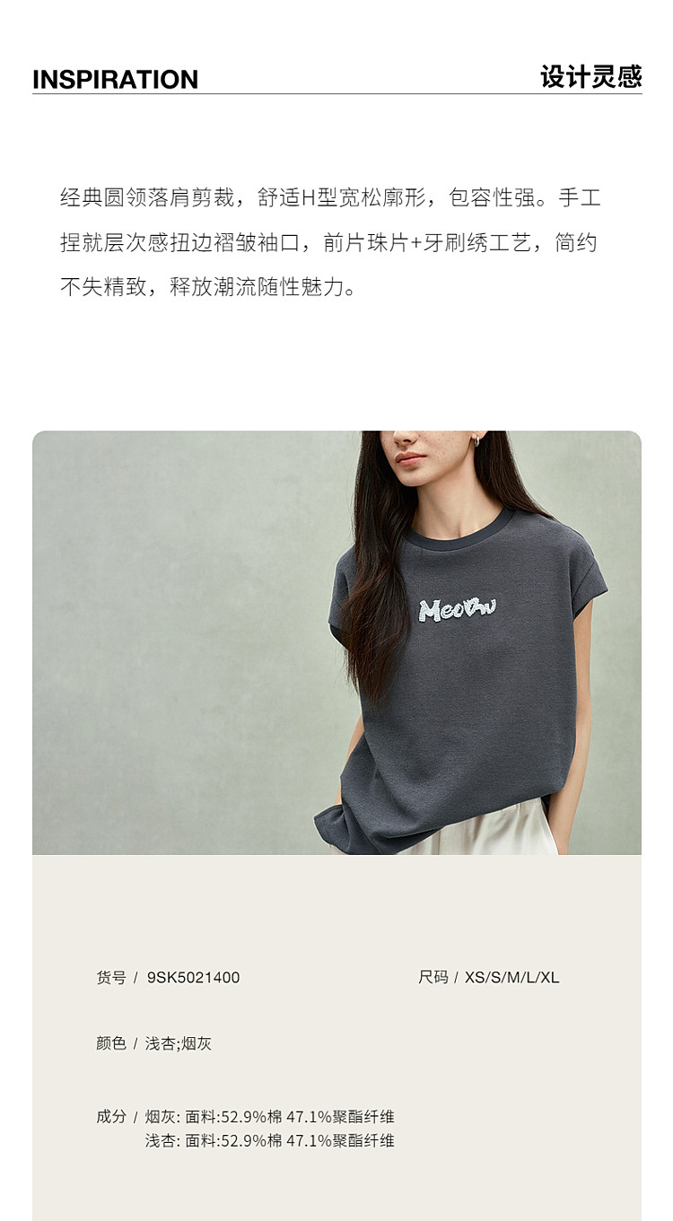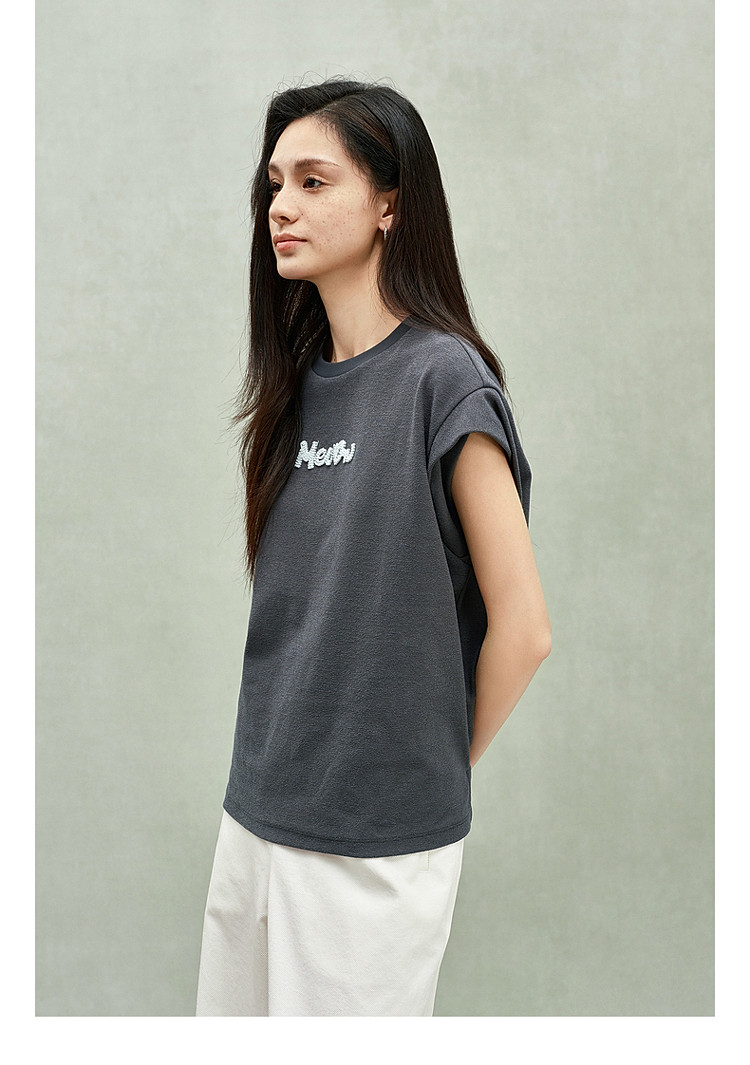 商品名称:限定系列OCH.春装 珠片绣花宽松休闲上衣坎肩无袖t恤女 141455