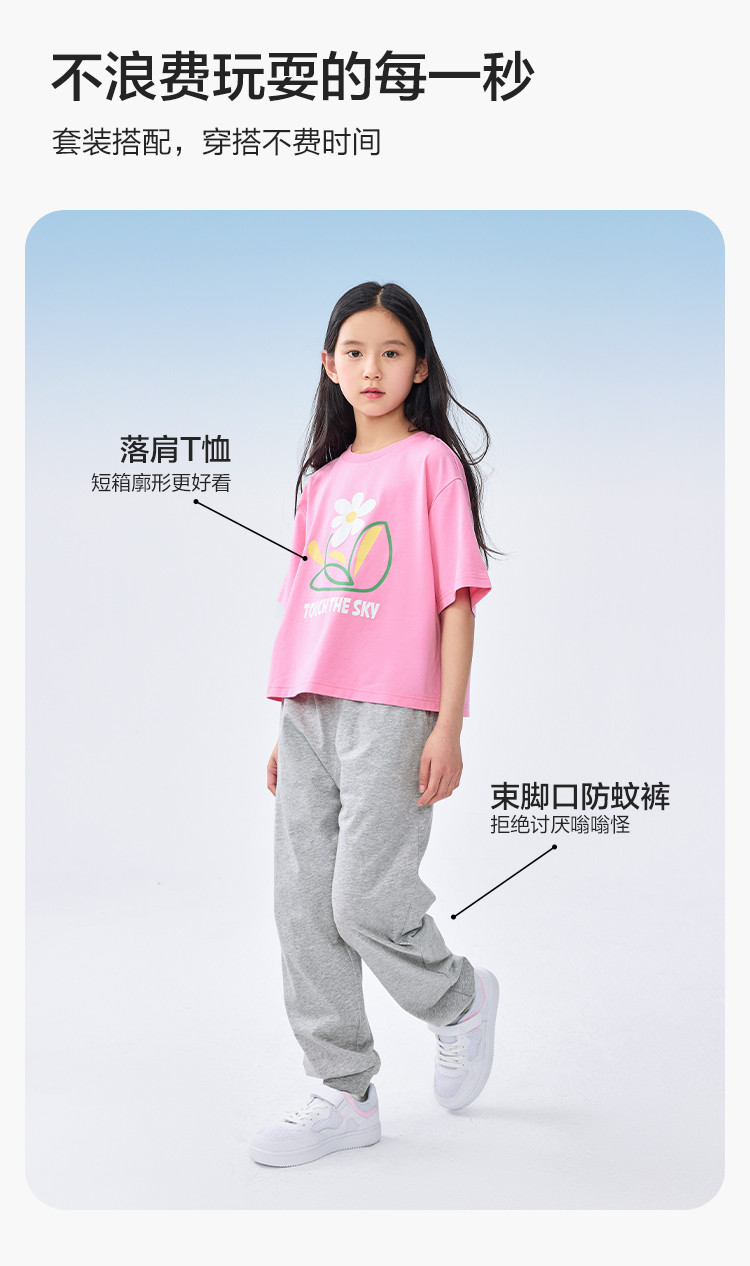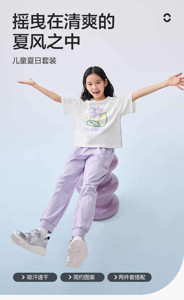 商品名称:吸湿速干女童夏季套装中大童两件套印花上衣针织防蚊裤运动时尚潮 176517