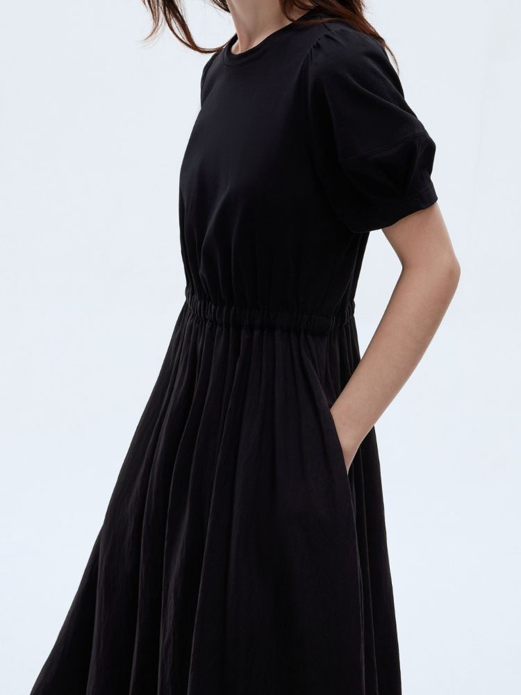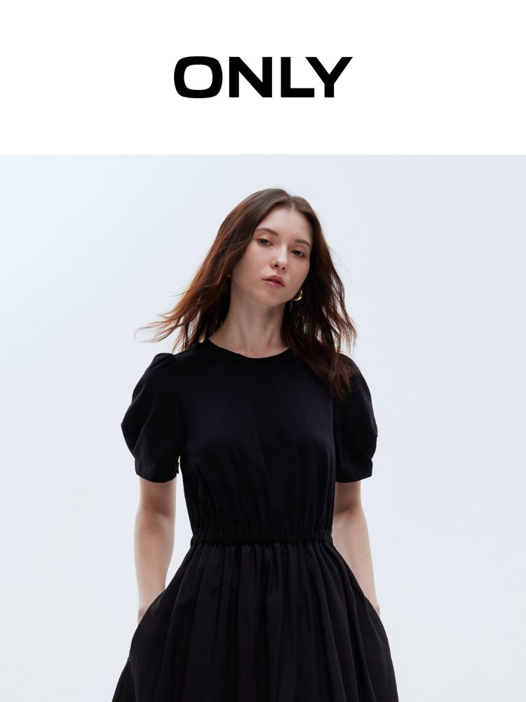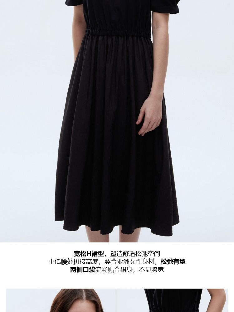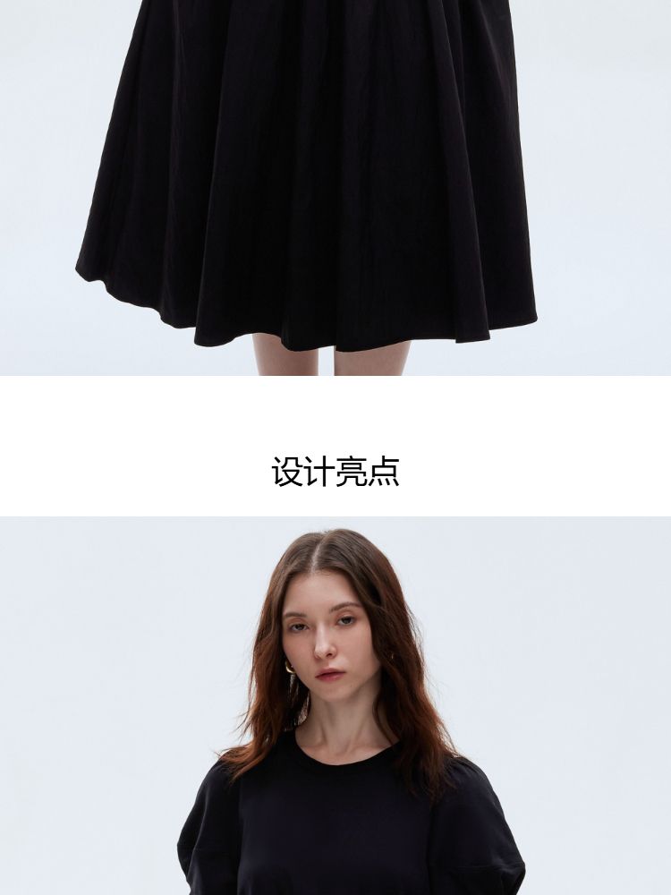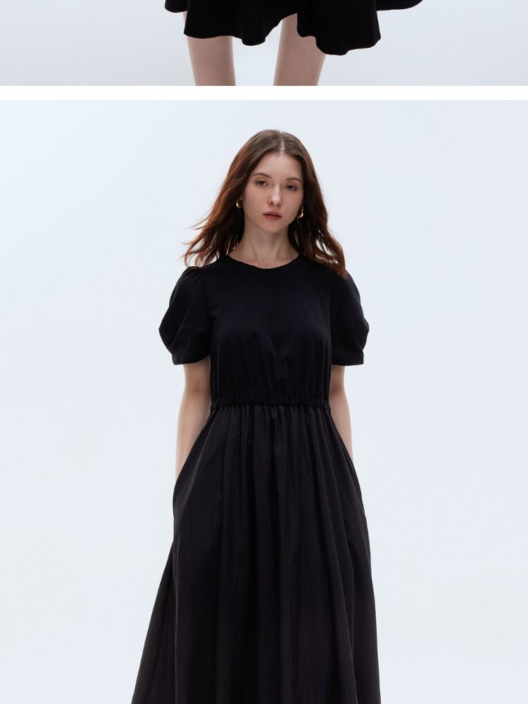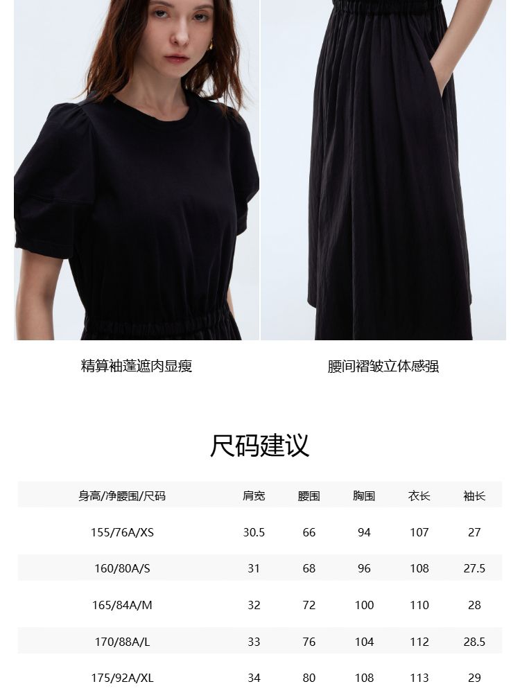 商品名称:【小黑裙】2025春季优雅短袖泡泡袖中长裙连衣裙女 967770