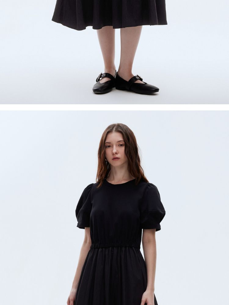 【小黑裙】2025春季优雅短袖泡泡袖中长裙连衣裙女 967770
