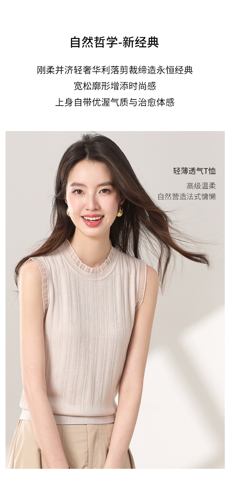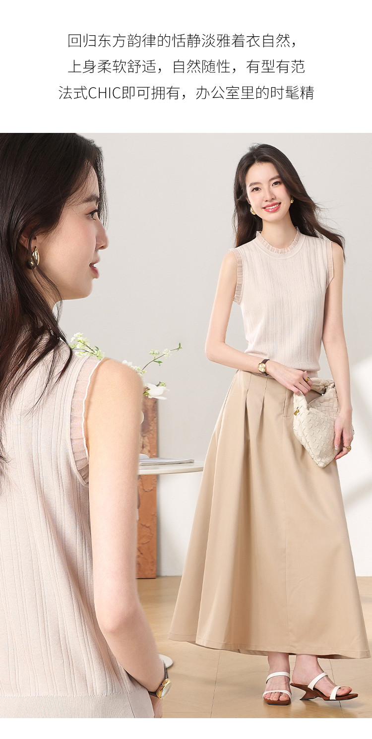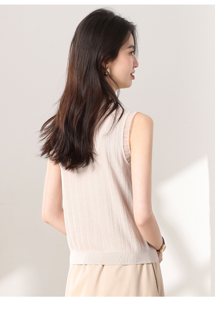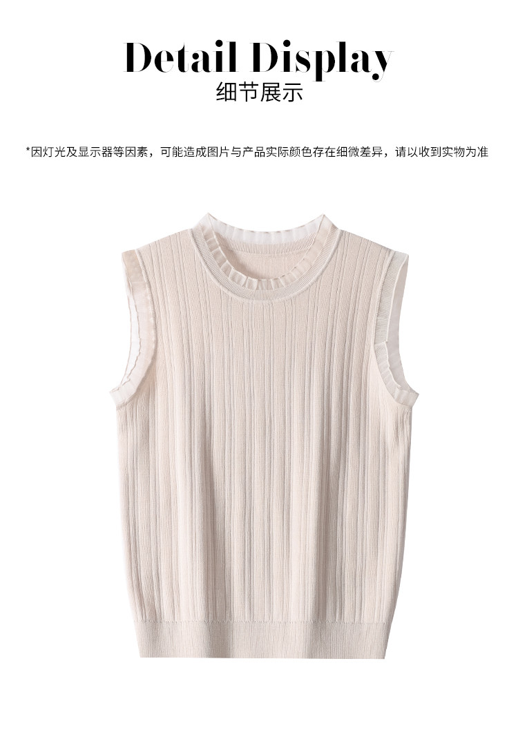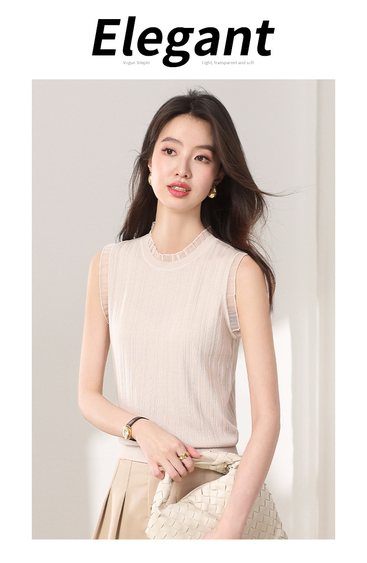 商品名称:【含桑蚕丝】蕾丝边抽条简约无袖T恤春夏显瘦针织衫女背心马甲 656915