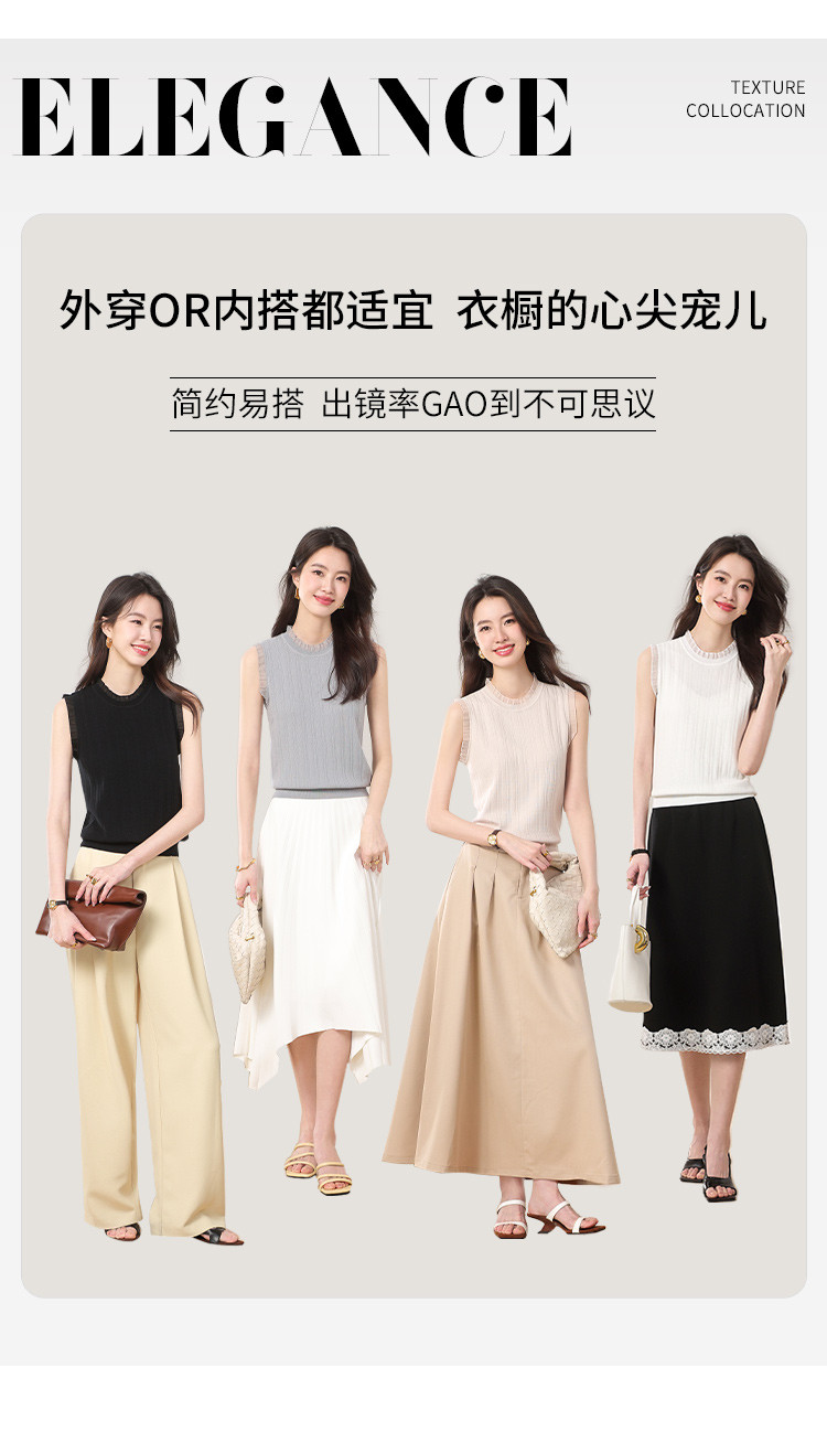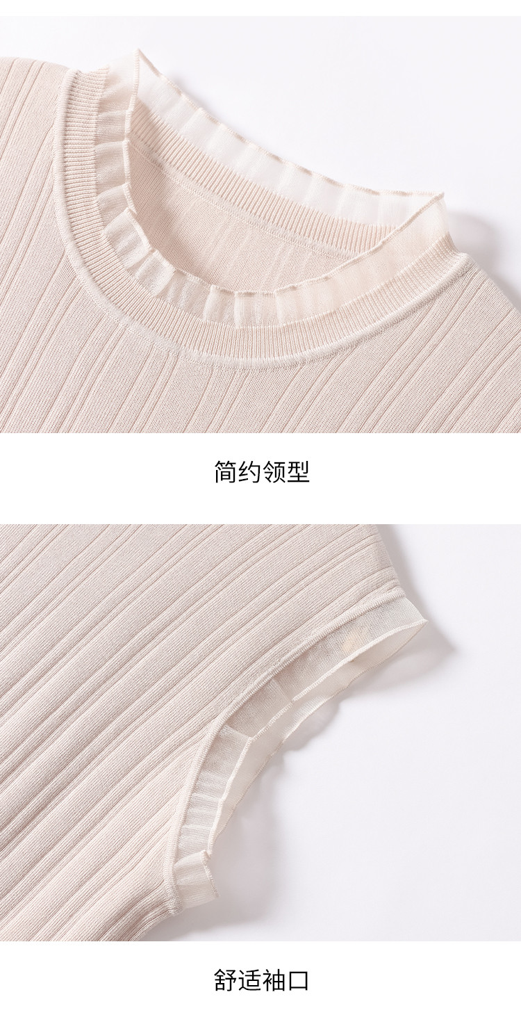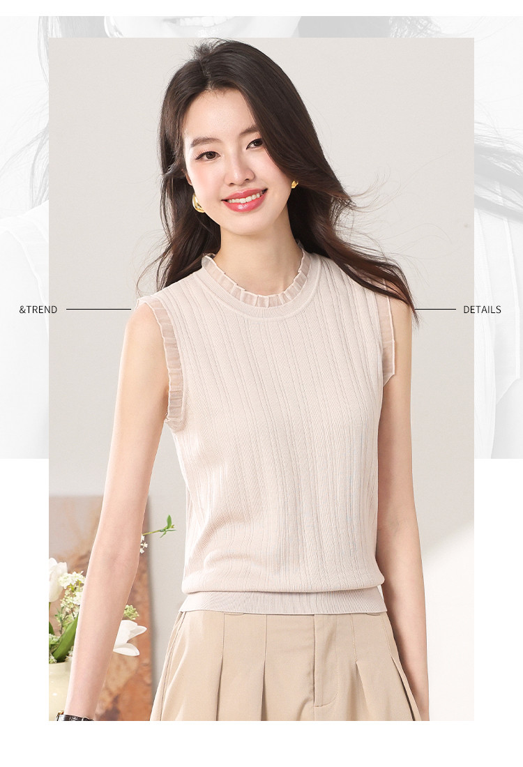 【含桑蚕丝】蕾丝边抽条简约无袖T恤春夏显瘦针织衫女背心马甲 656915