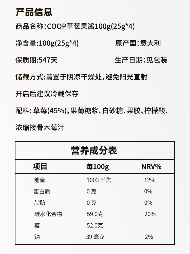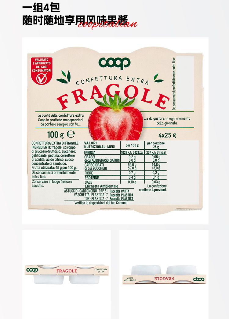 商品名称:coop库溥 意大利进口 草莓果酱4x25g