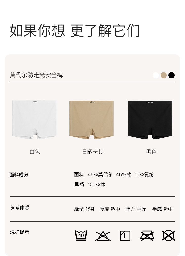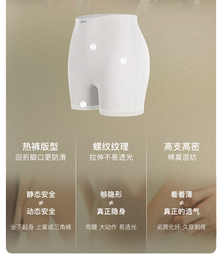 商品名称:【7A抗菌】25新款莫代尔无痕防走光安全裤平角舒适不卷边内裤 936832