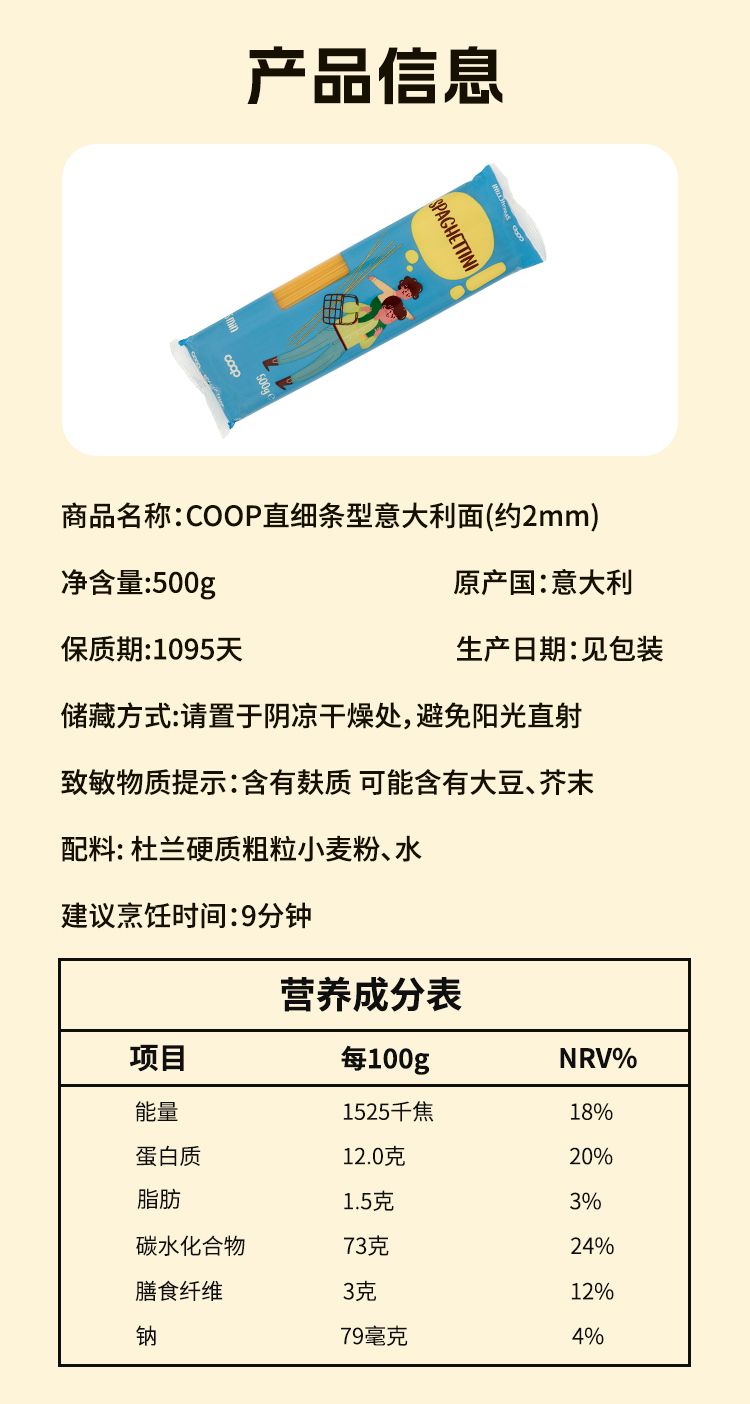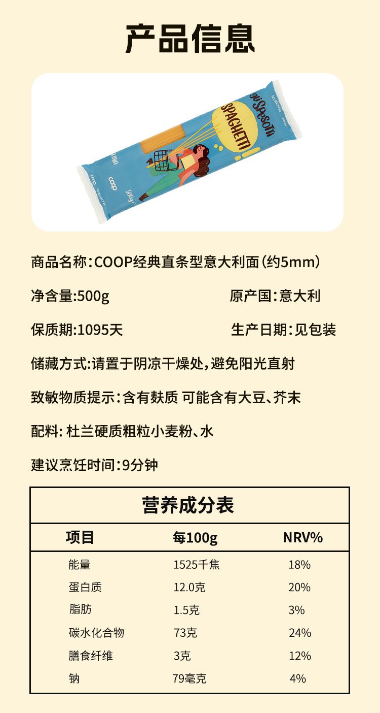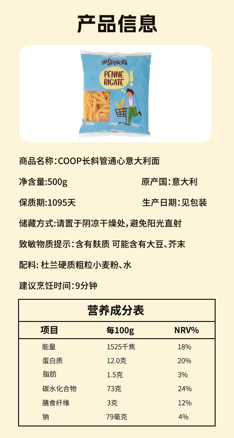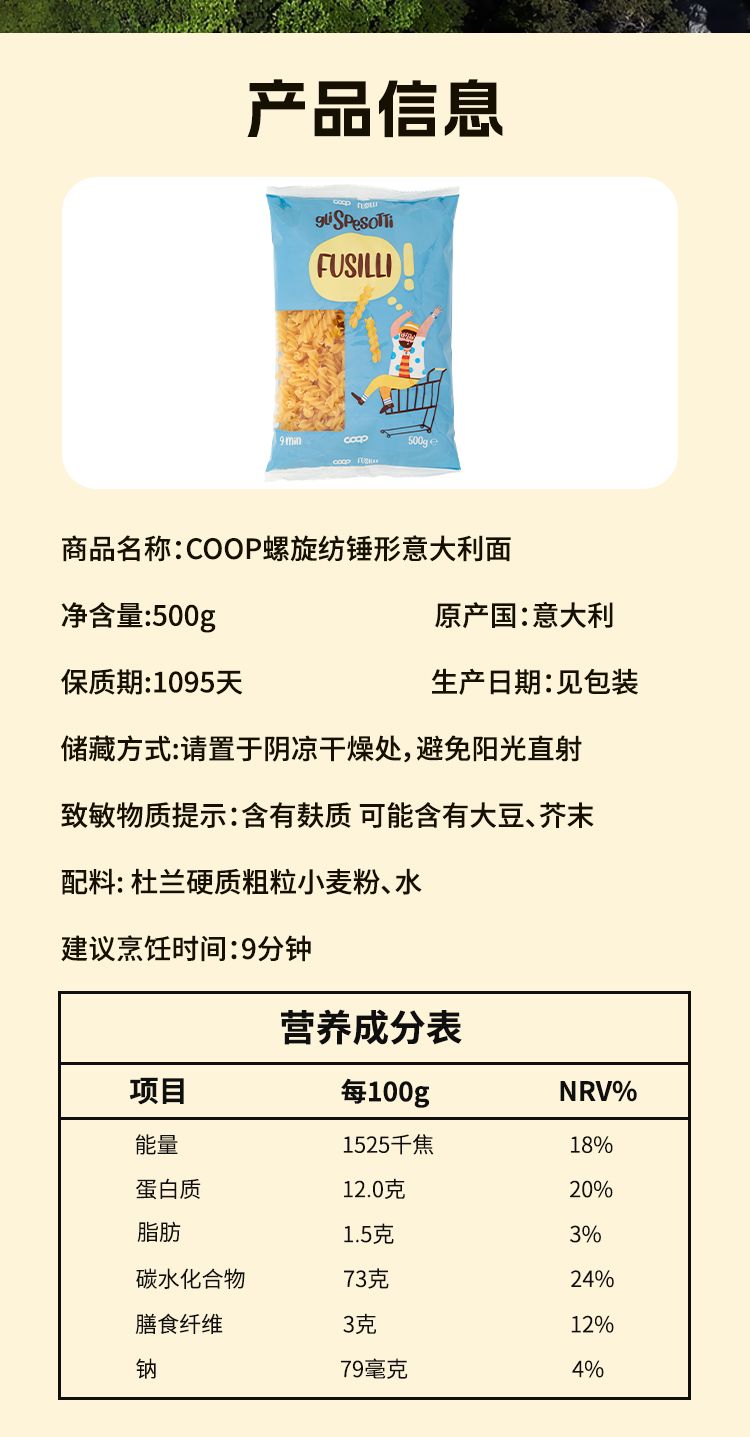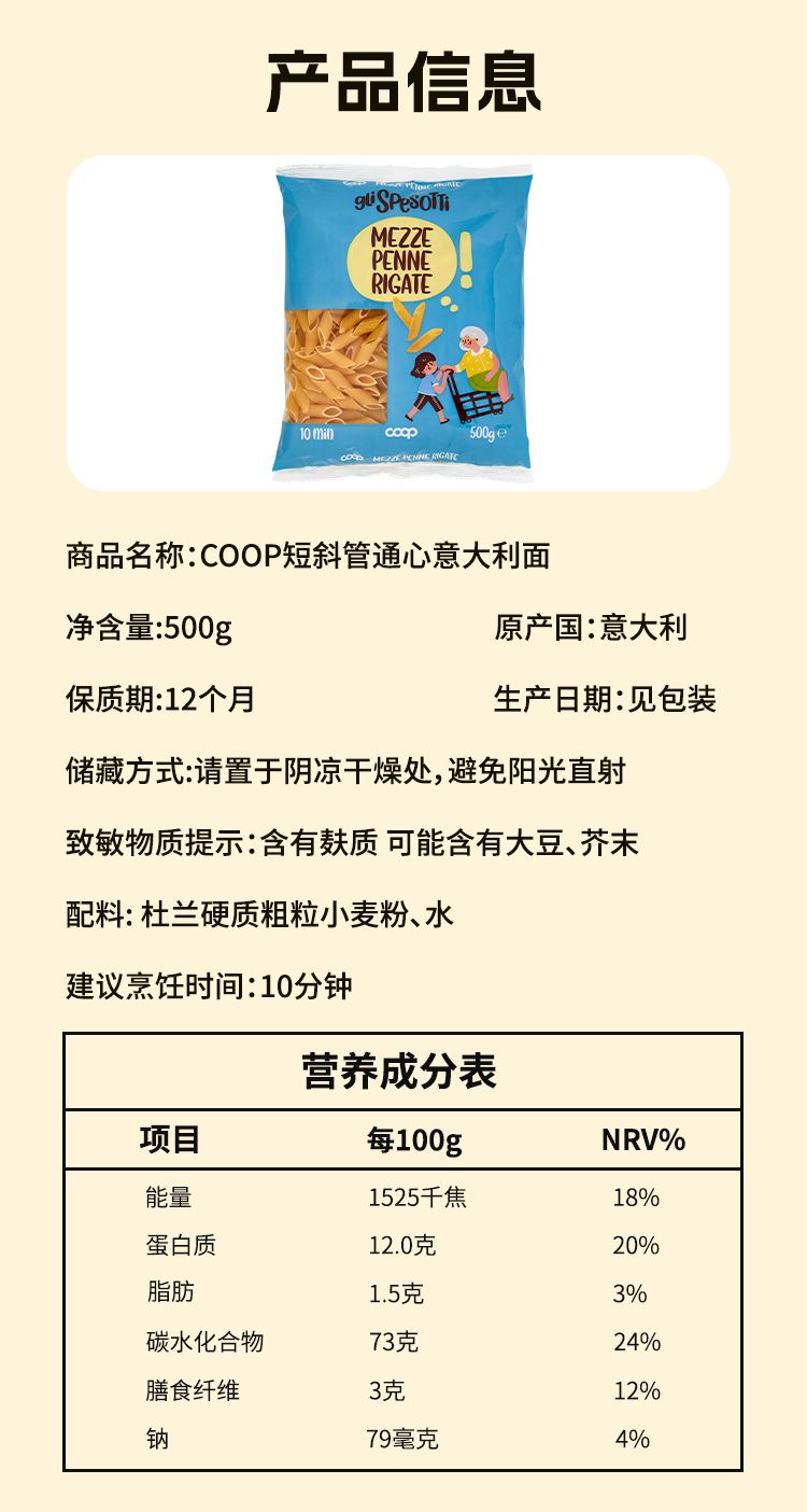 商品名称:COOP 意大利进口 Durum Wheat意大利面 500g