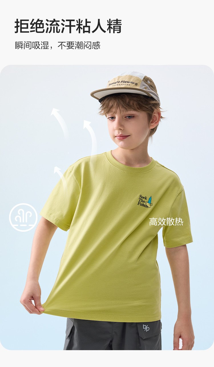 商品名称:吸湿速干纯棉儿童短袖T恤男童女童夏装薄款上衣2025新款童装 533125