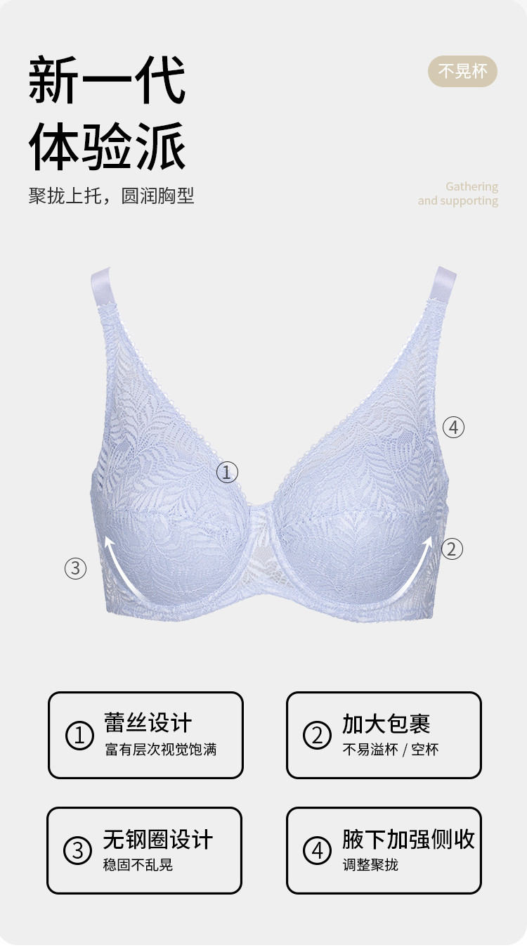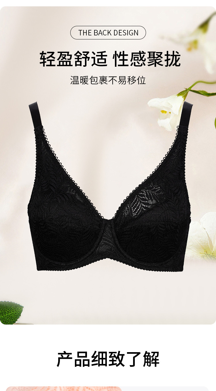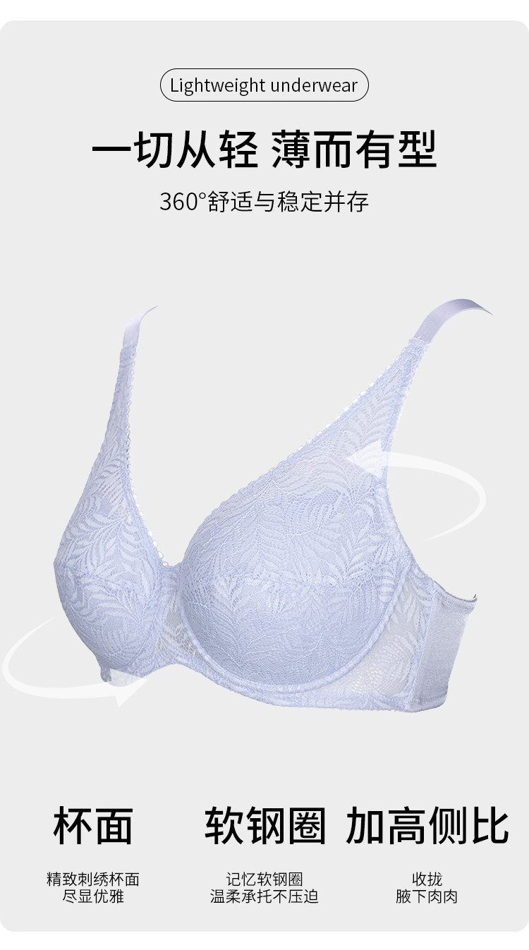 商品名称:【大胸显小】超薄Bra聚拢防下垂收副乳蕾丝内衣女士文胸胸罩 186635