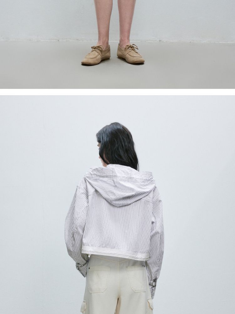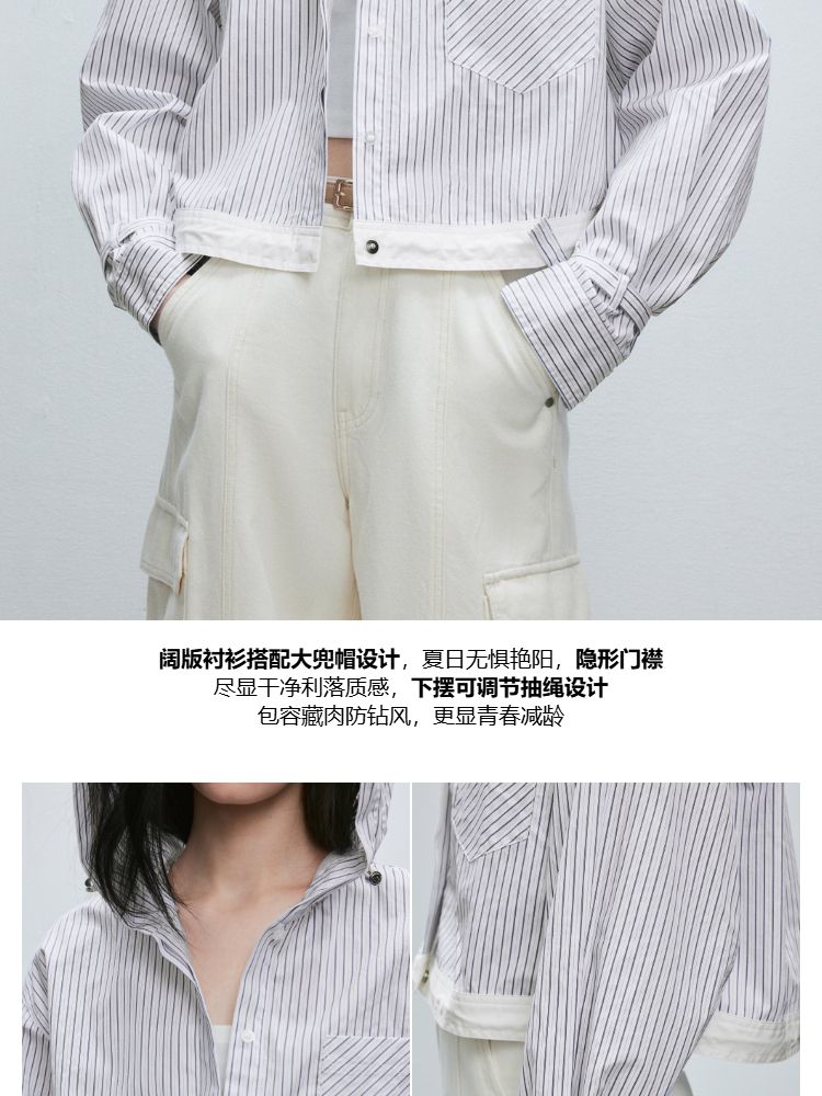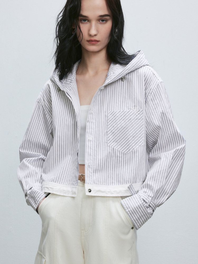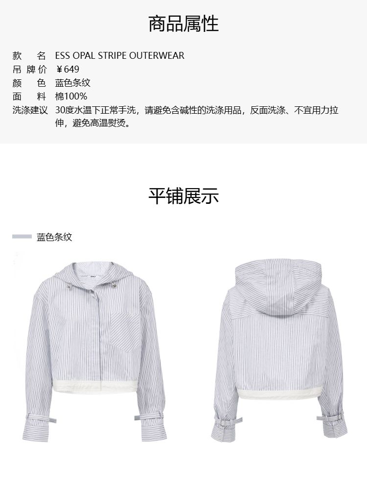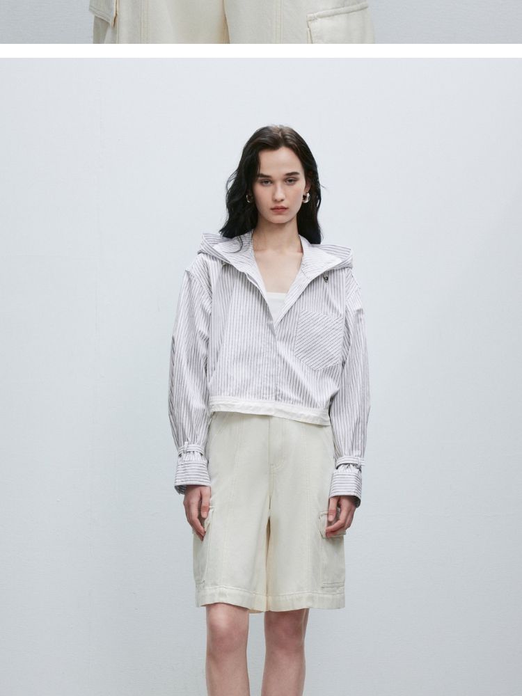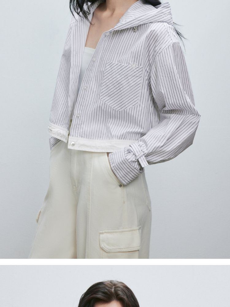 商品名称:【实用防钻风抽绳】2025春季纯棉撞色条纹宽松连帽短款外套女 457690