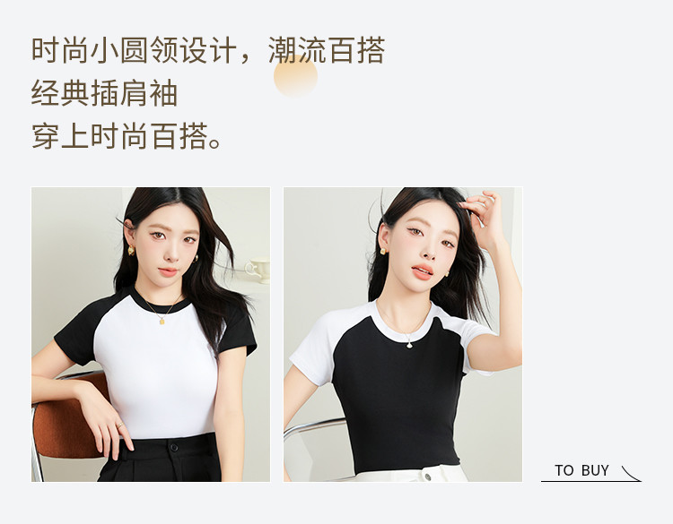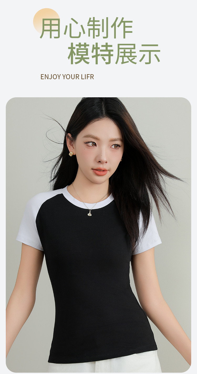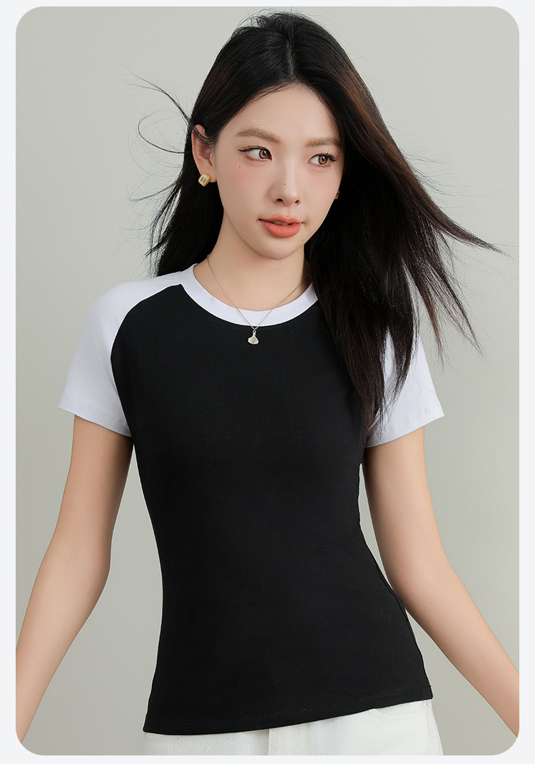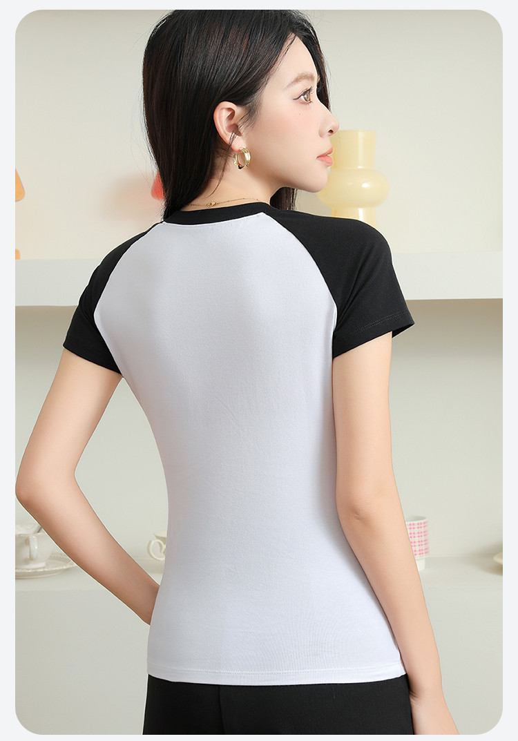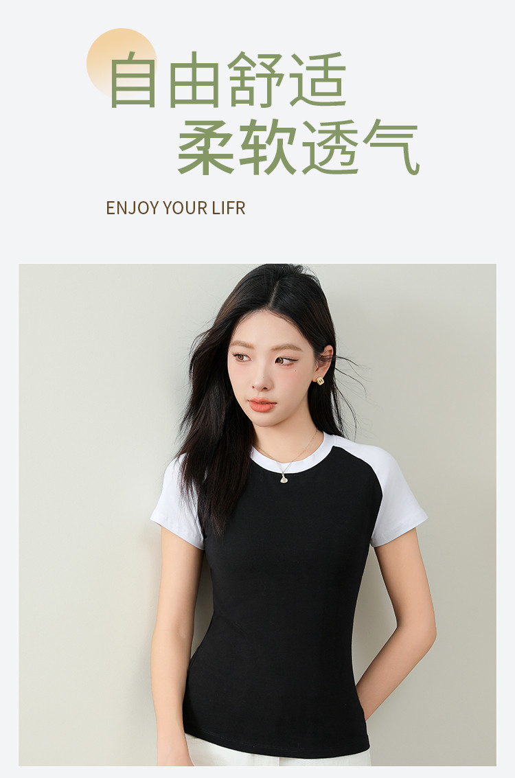 春夏女士打底衫女棉柔亲肤黑白撞色打底衫T恤女时尚圆领插肩短袖 655307