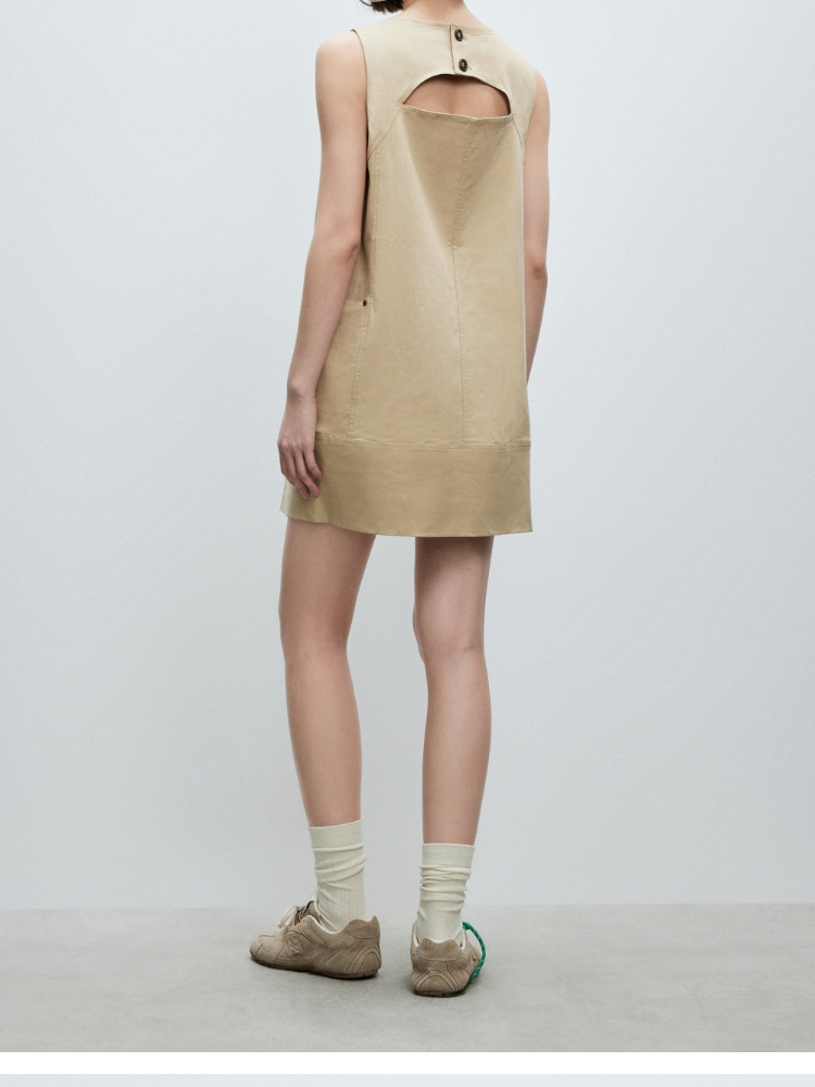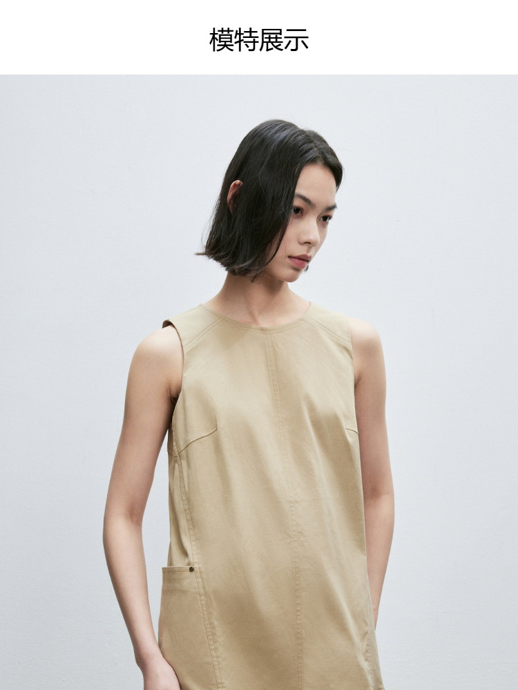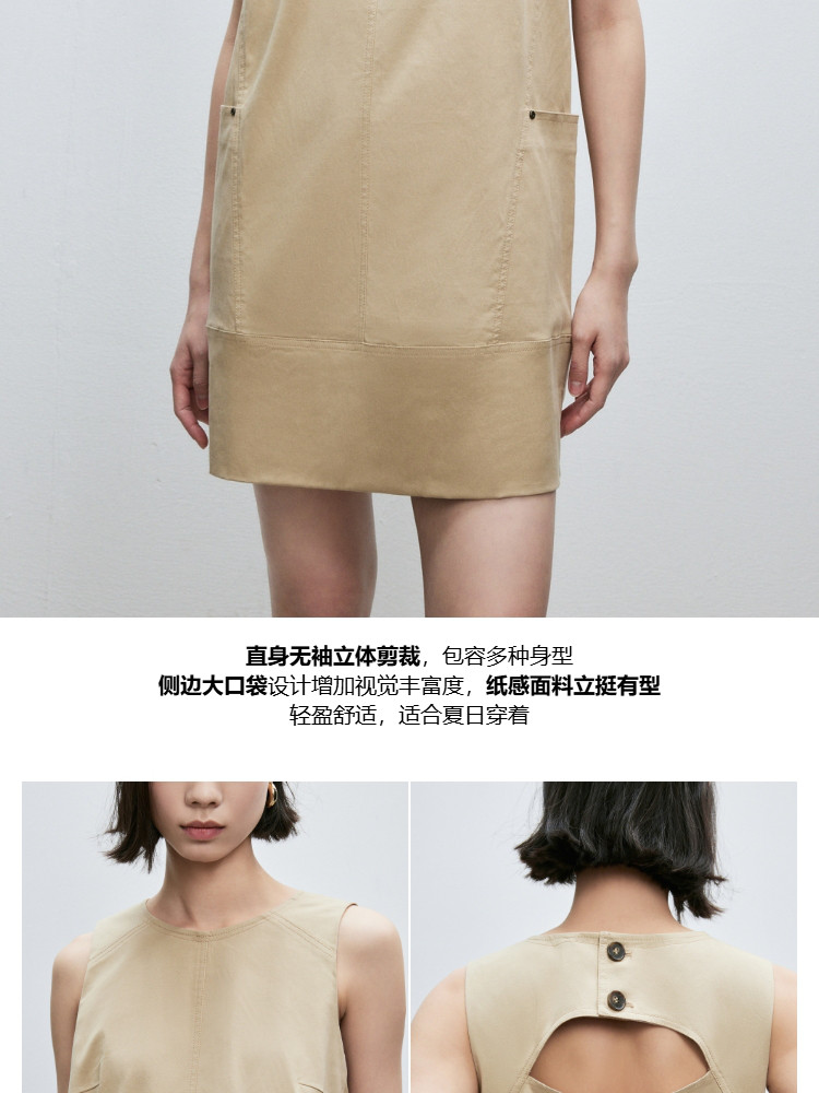 商品名称:【侧身实用大贴袋】2025春季法式无袖圆领短裙直筒连衣裙女 029530