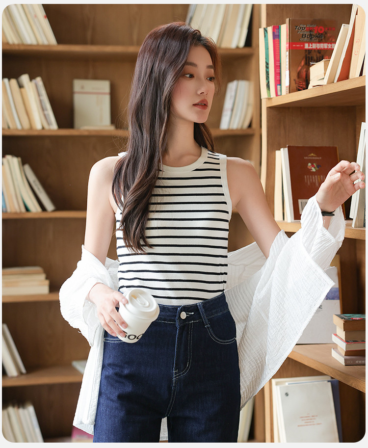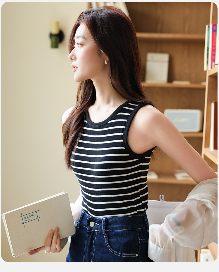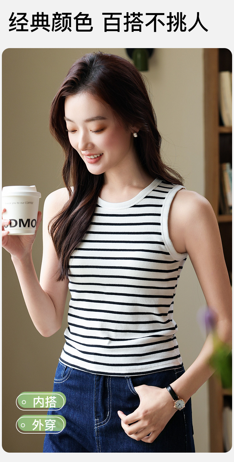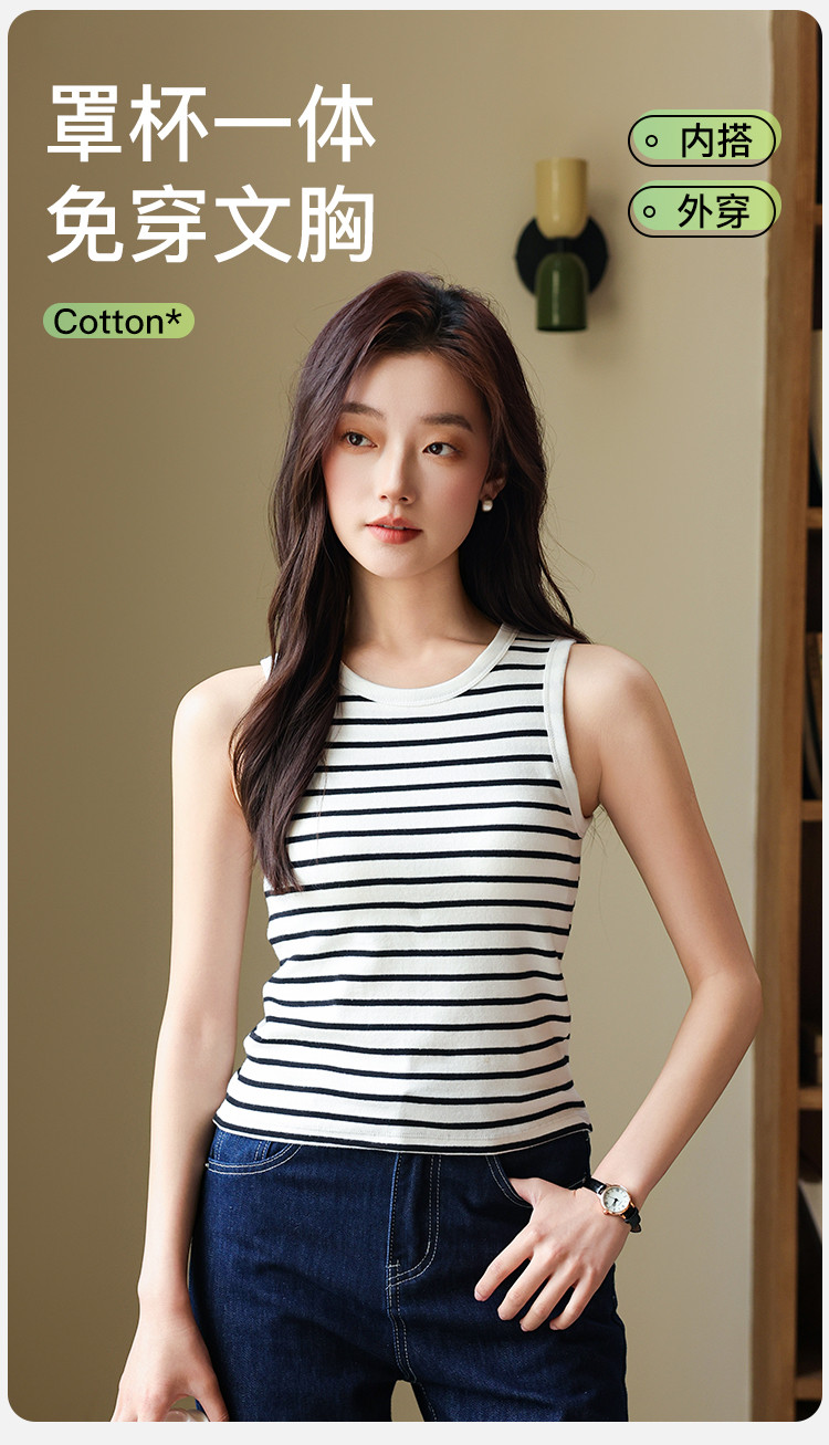 【自带胸垫 免穿文胸】女士内搭外穿春夏圆领条纹百搭打底背心女 504267
