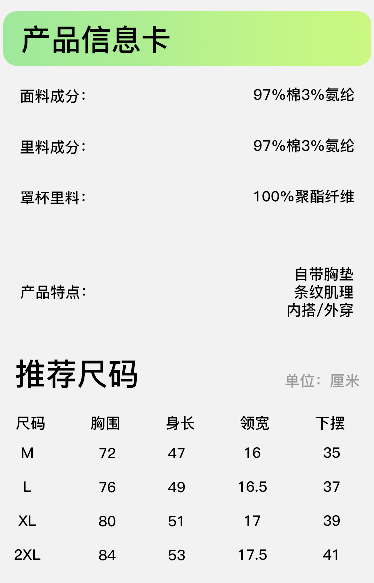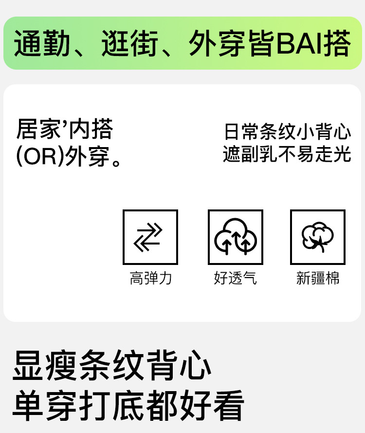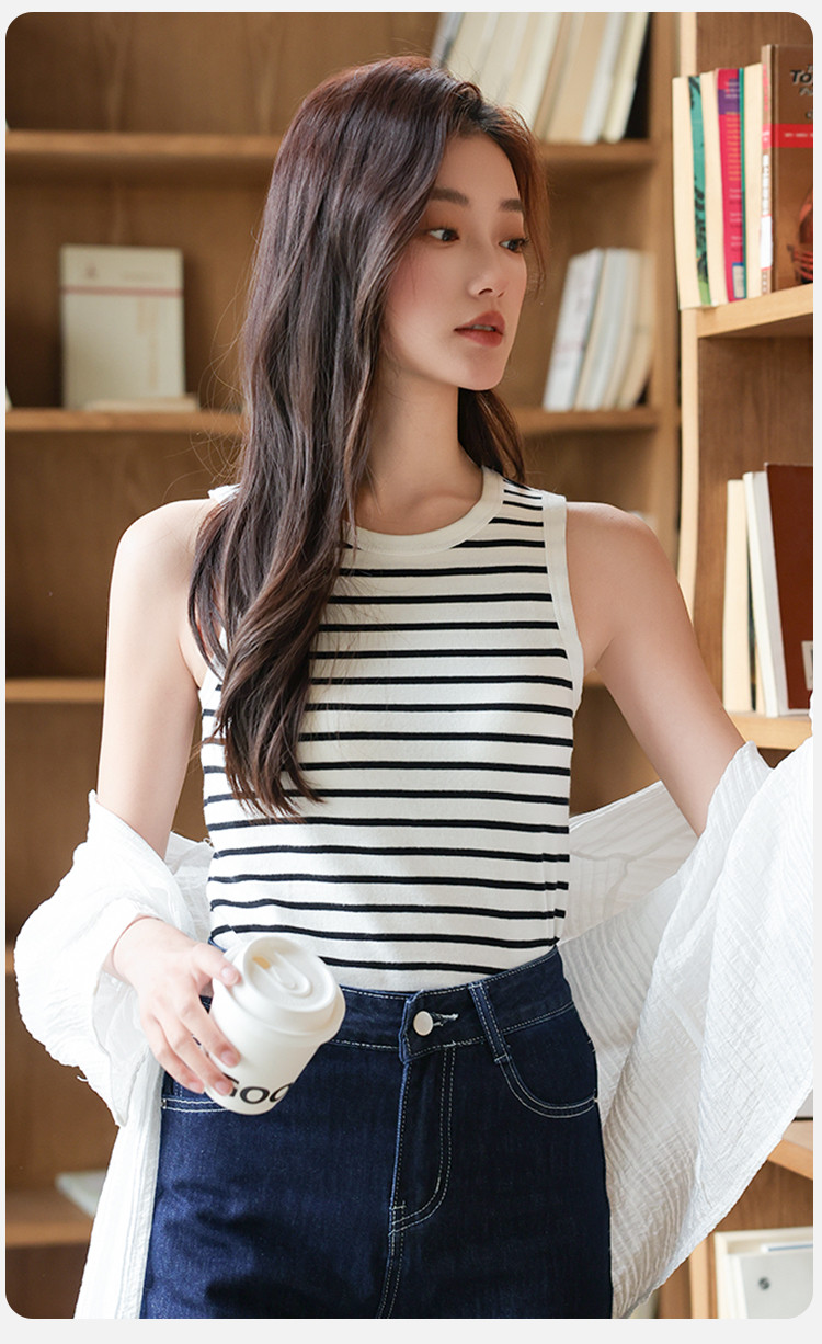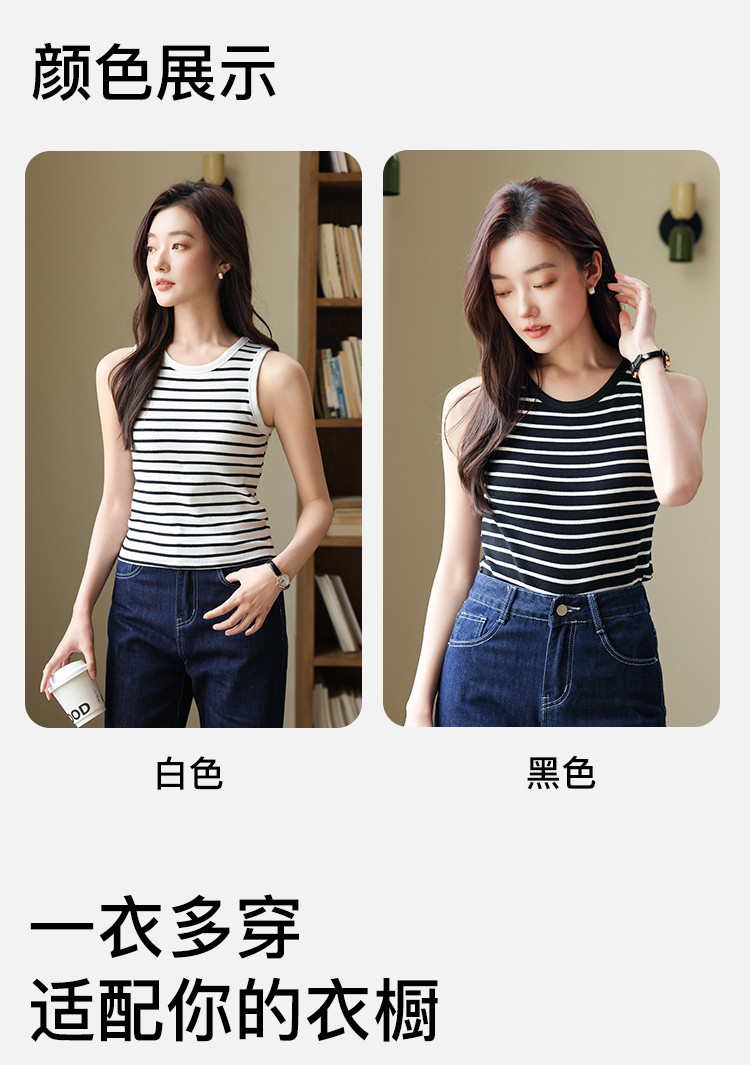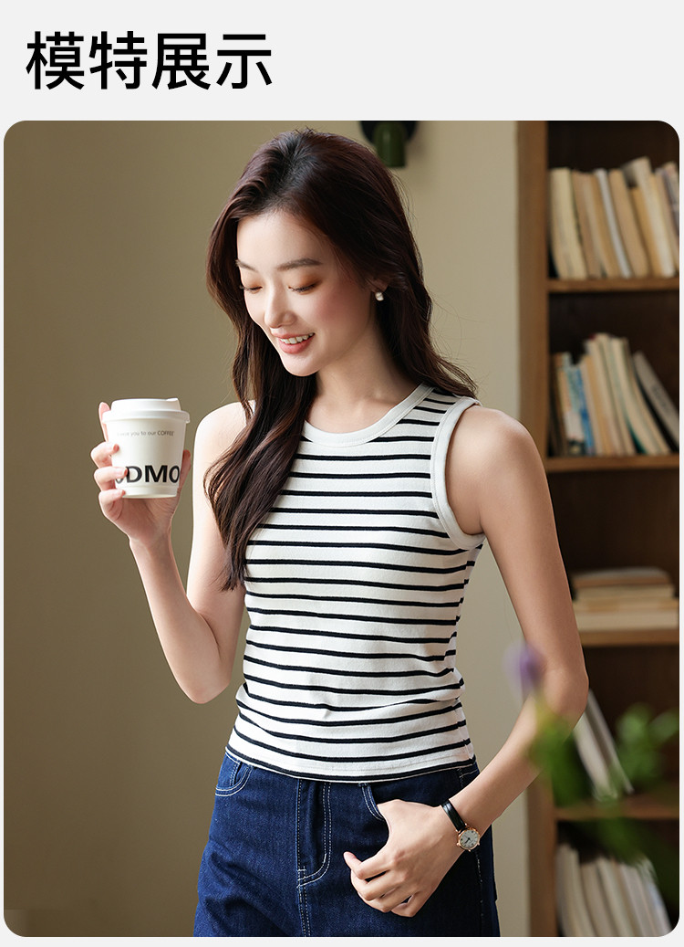 商品名称:【自带胸垫 免穿文胸】女士内搭外穿春夏圆领条纹百搭打底背心女 504267
