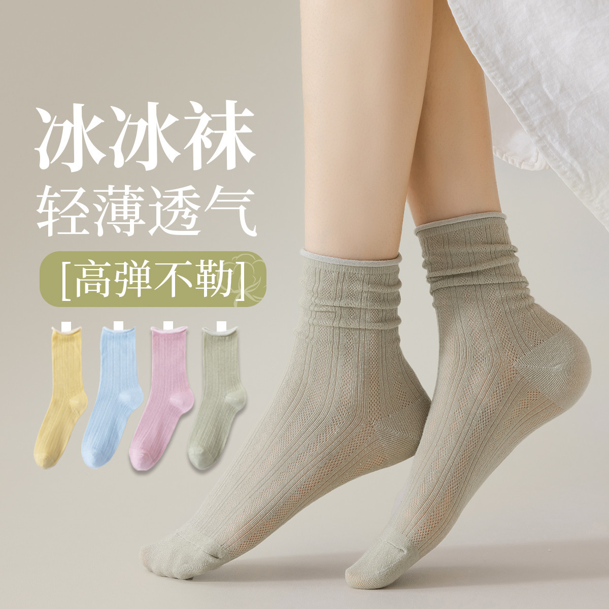 商品名称:4双装春秋薄款堆堆袜女士袜子女镂空透气网眼中筒纯色棉质袜子女 987083