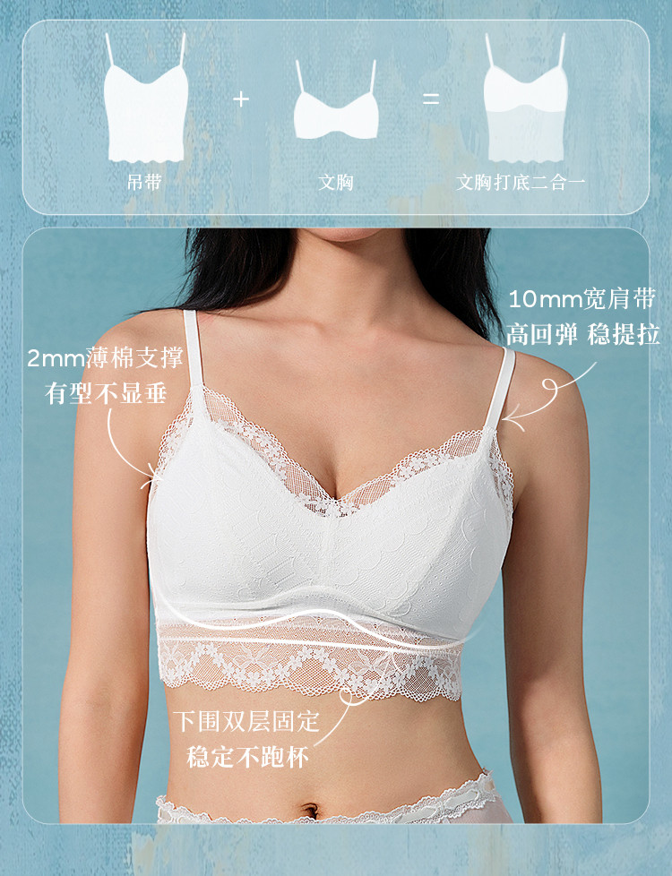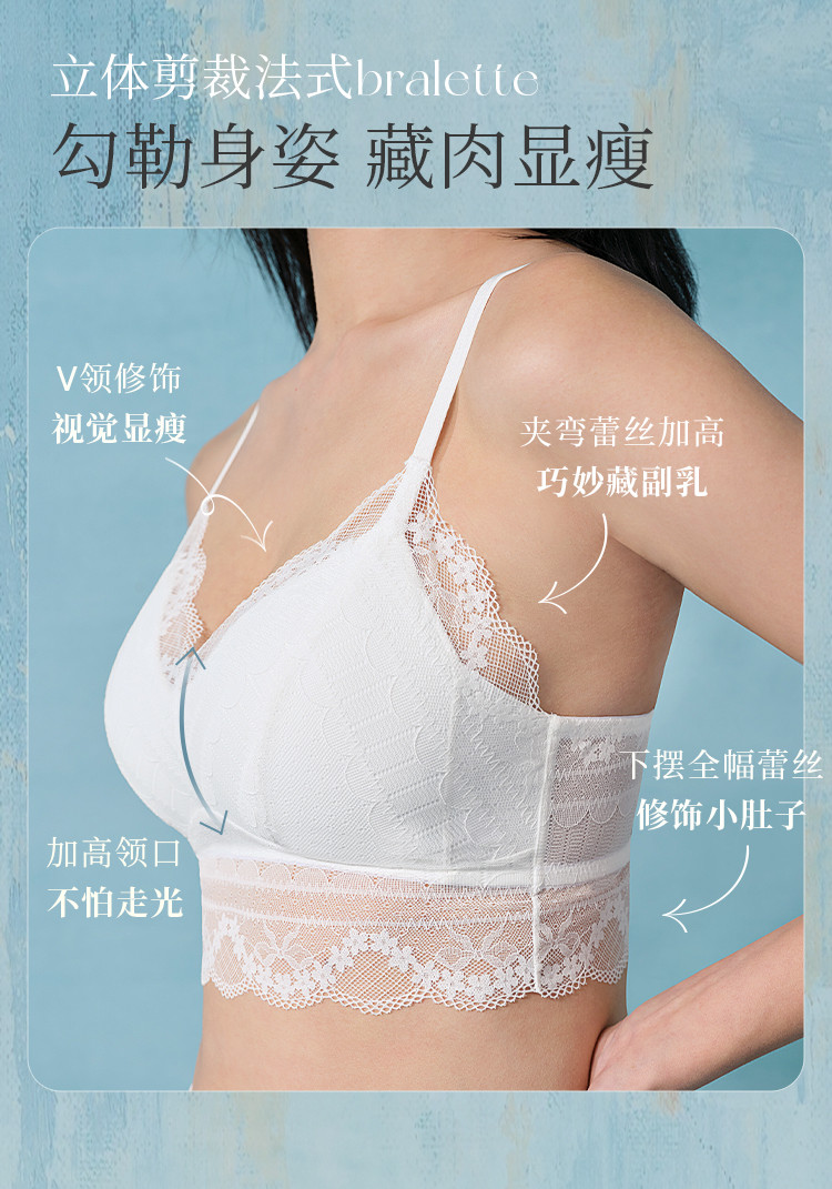商品名称:【可外穿文胸】风铃三角杯文胸法式蕾丝精致高级春夏内衣女 485646