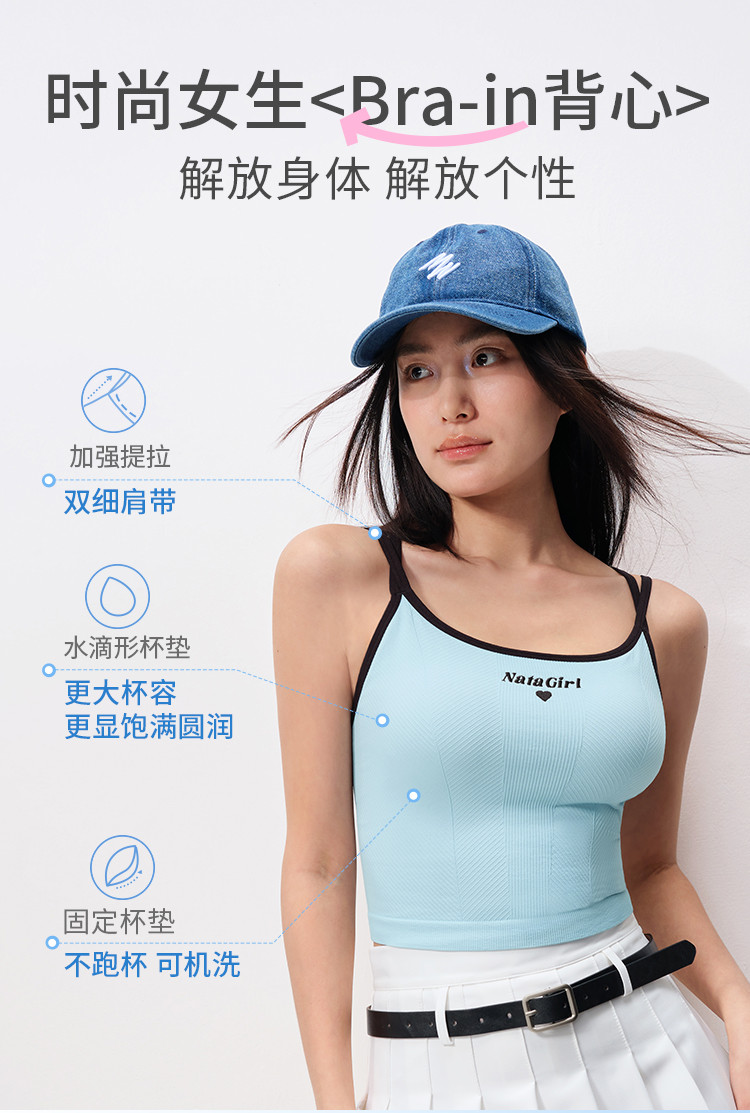 商品名称:【可外穿背心】美背沙漏衣双肩带撞色春夏背心女青春线奶糖女孩 633294