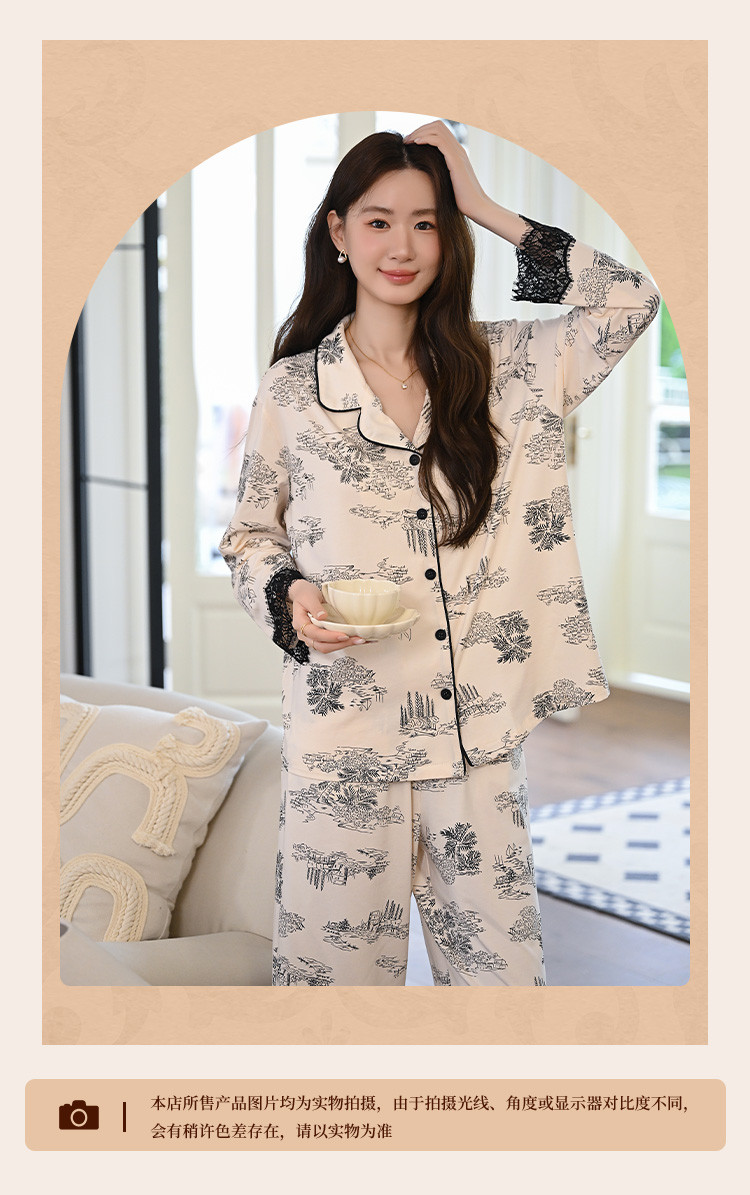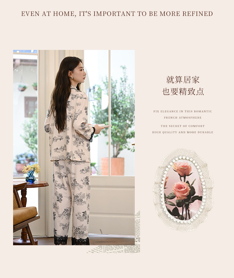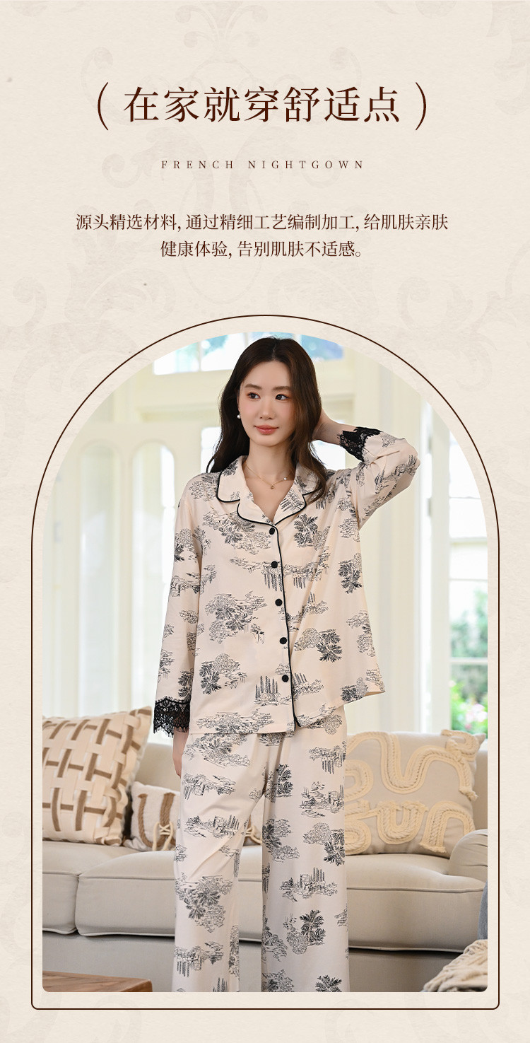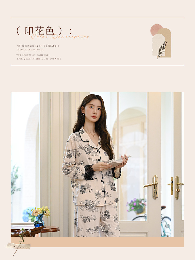商品名称:【法式轻奢】高级感印花睡衣女士春夏款棉质长袖家居服套装可外穿 805003