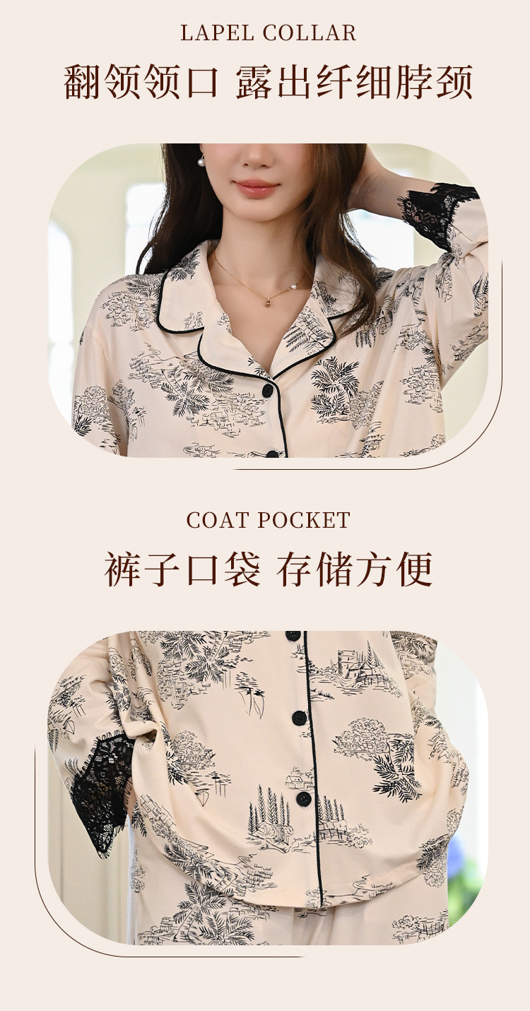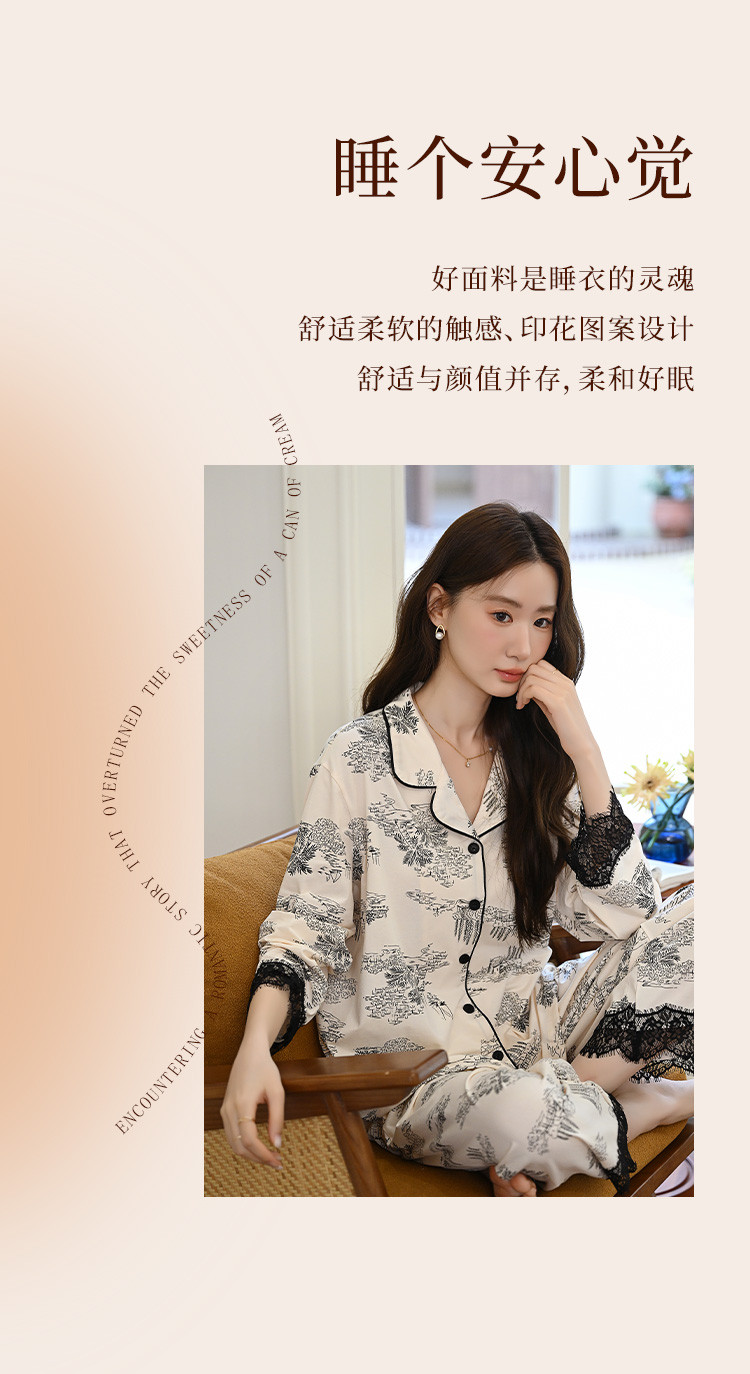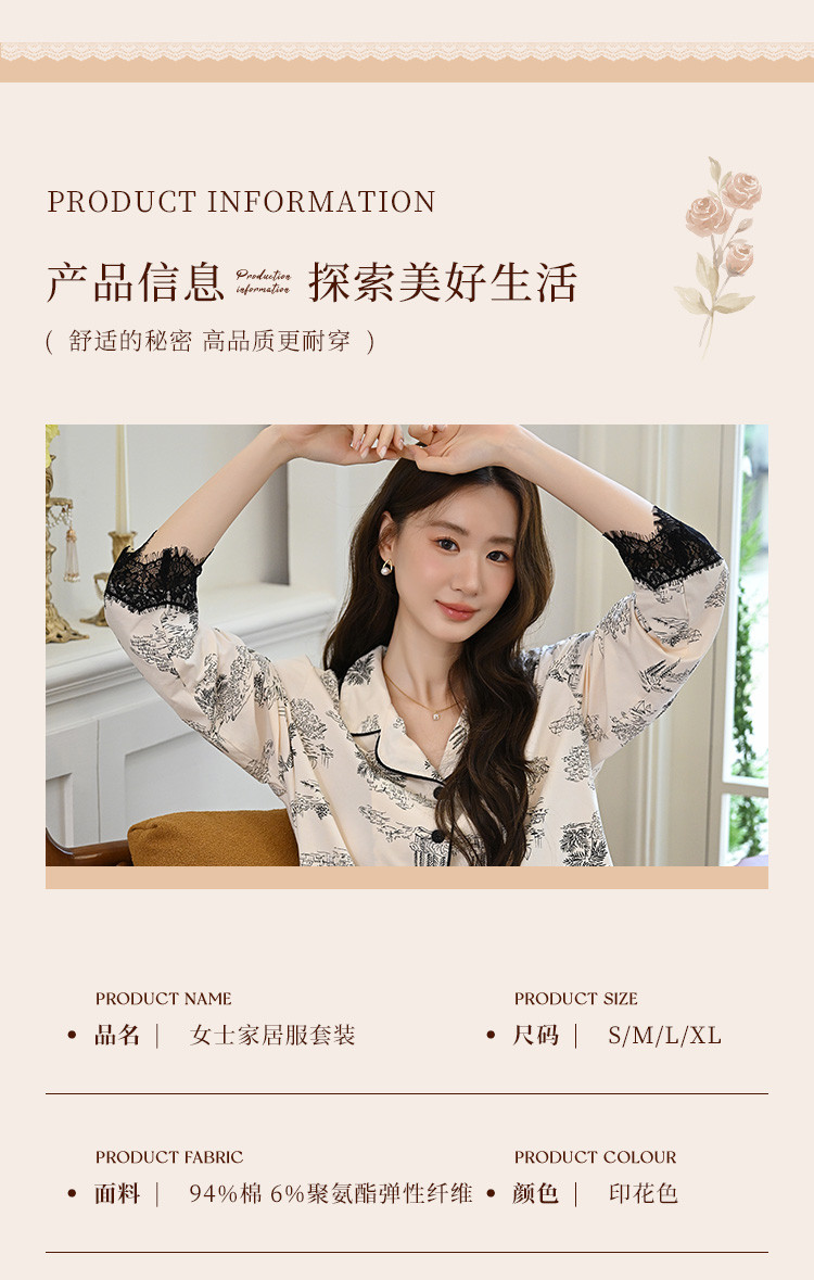 商品名称:【法式轻奢】高级感印花睡衣女士春夏款棉质长袖家居服套装可外穿 805003