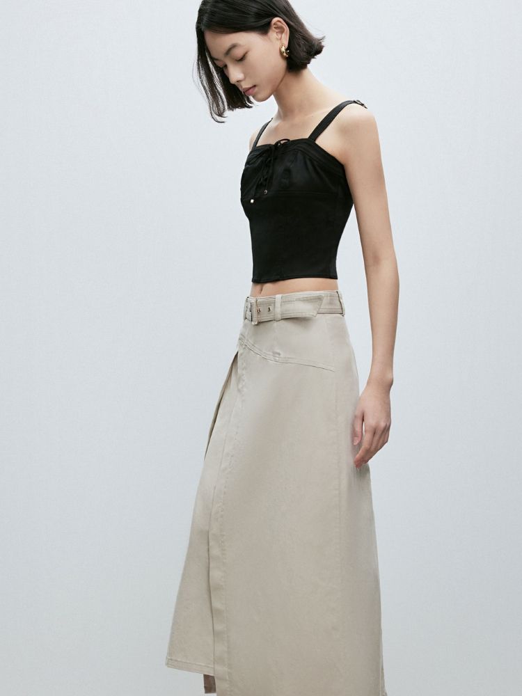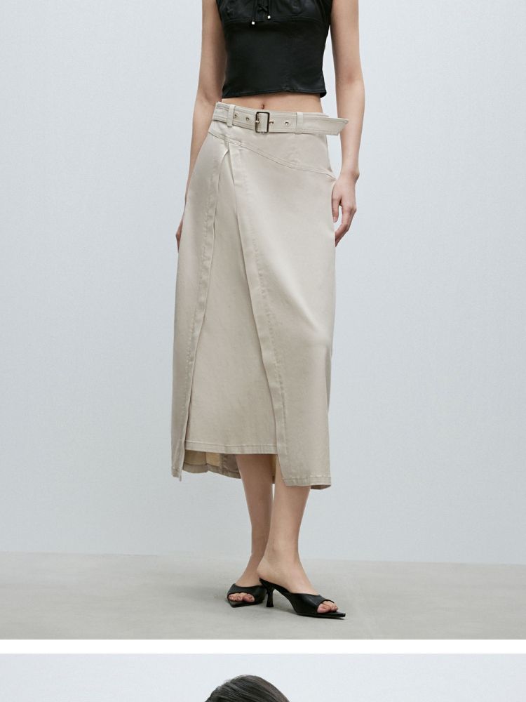 商品名称:【拼接开衩】25夏季含莱赛尔设计感百搭纯色开衩中长裙半身裙女 131930