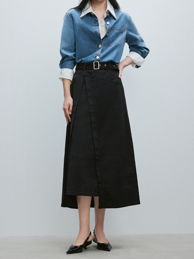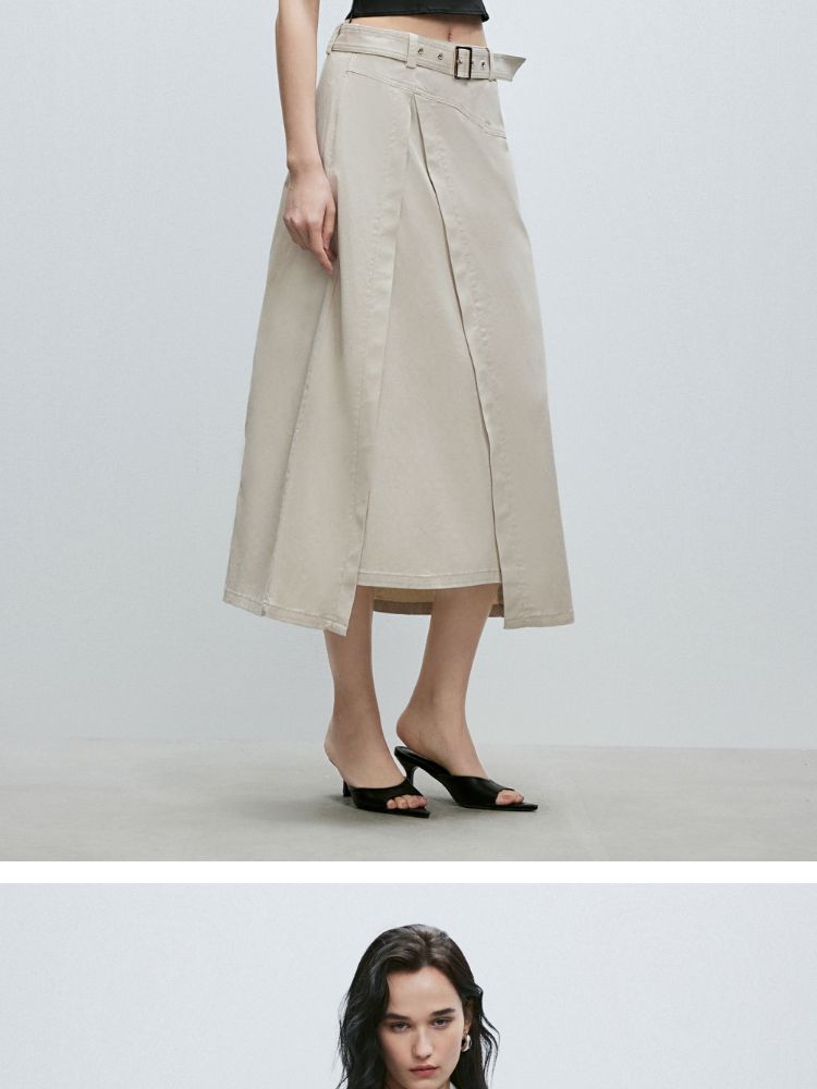 【拼接开衩】25夏季含莱赛尔设计感百搭纯色开衩中长裙半身裙女 131930