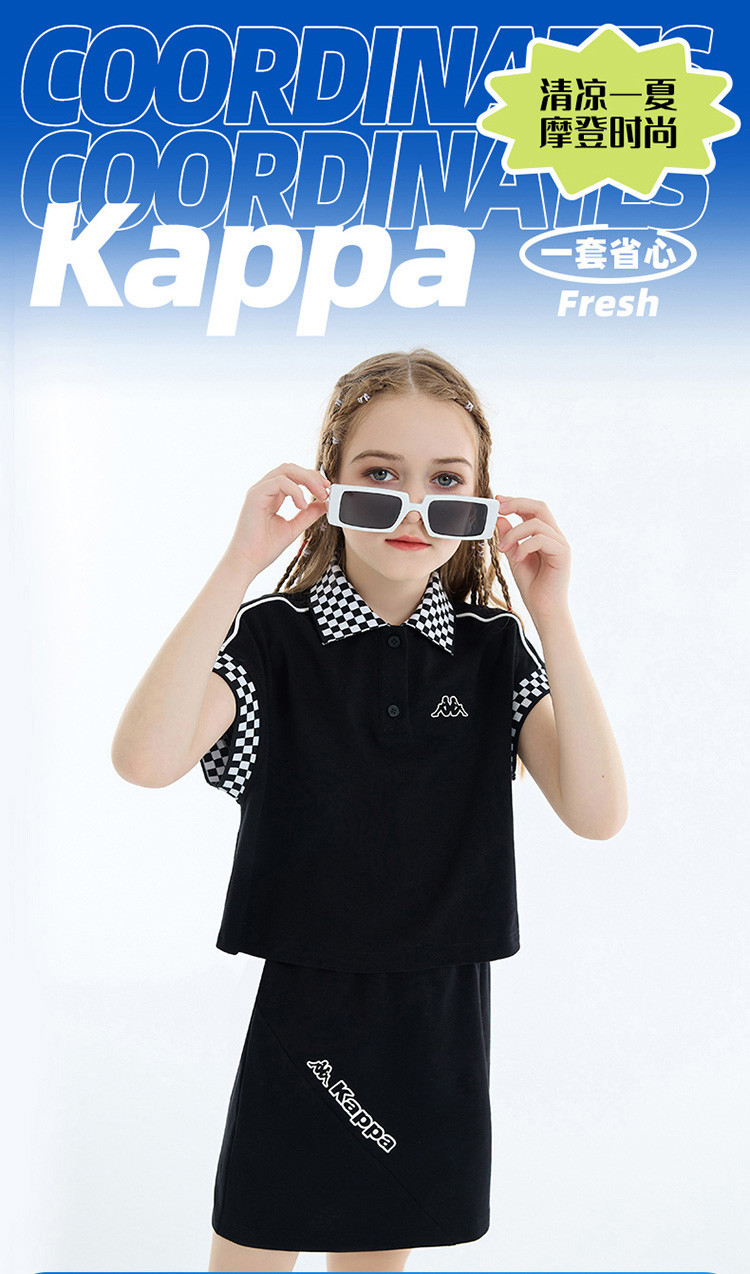 商品名称:kappa kids 卡帕2024夏季新款童装女孩短裤短袖套装纯色字母印花女童短裙夏装衣服